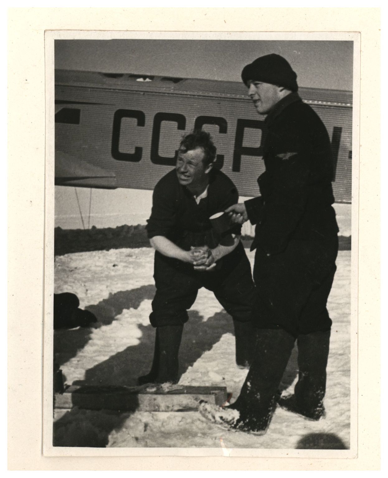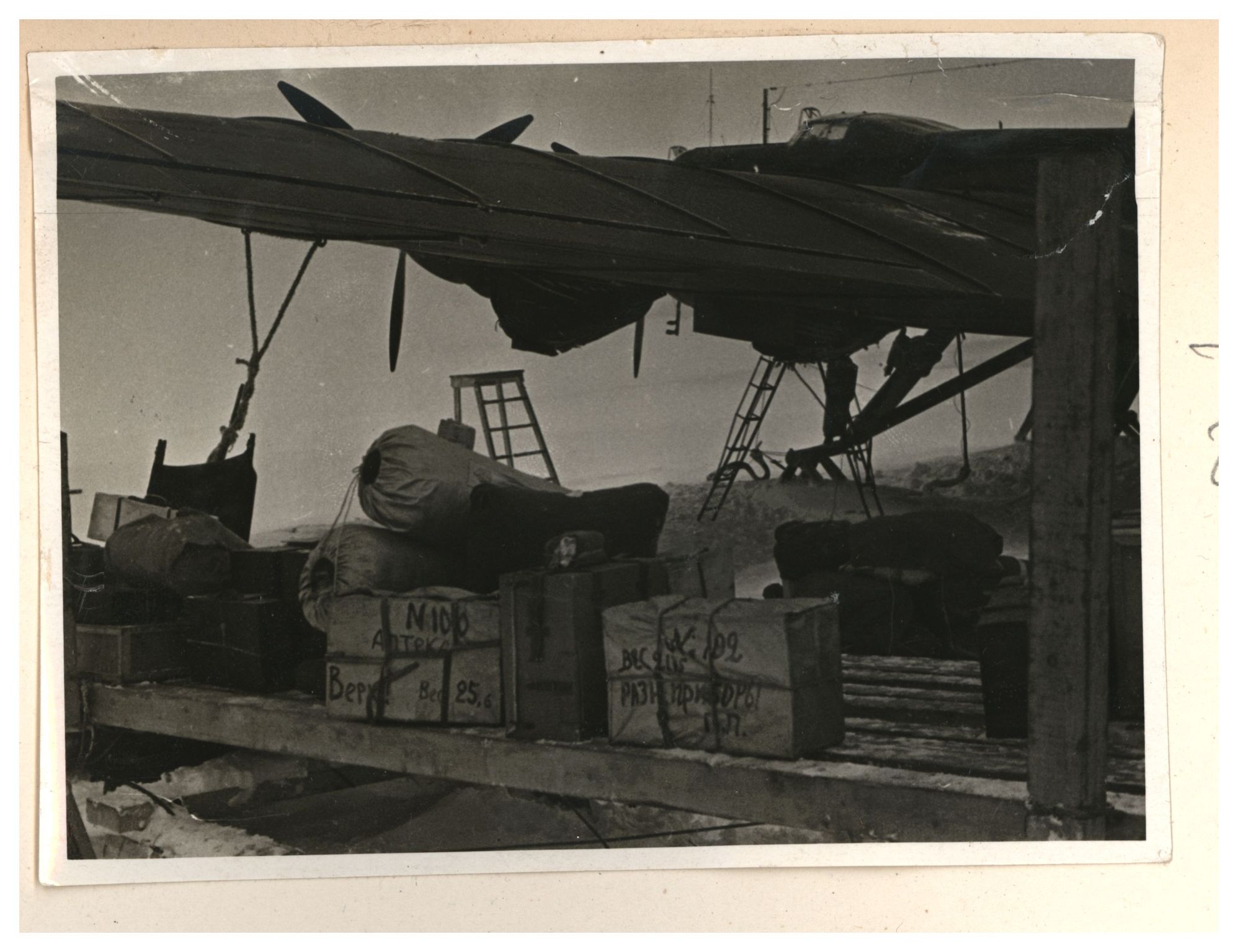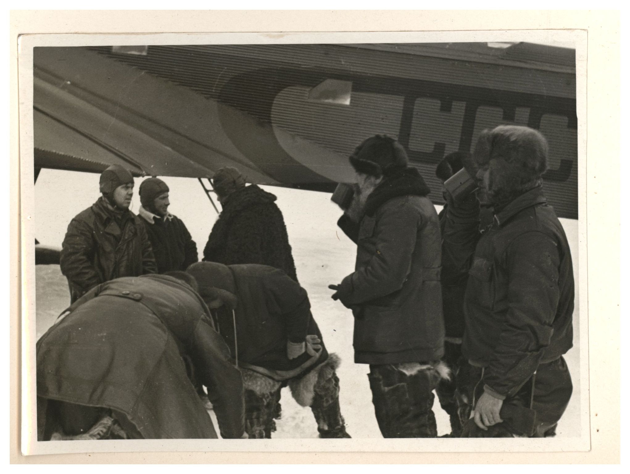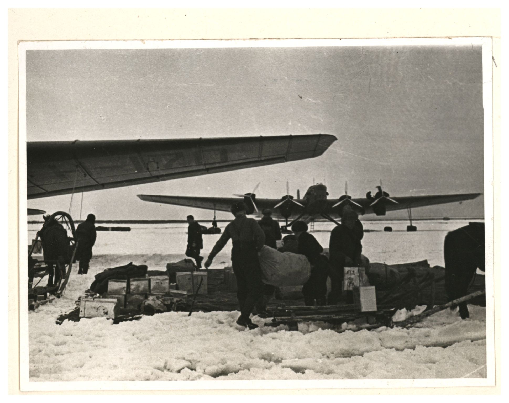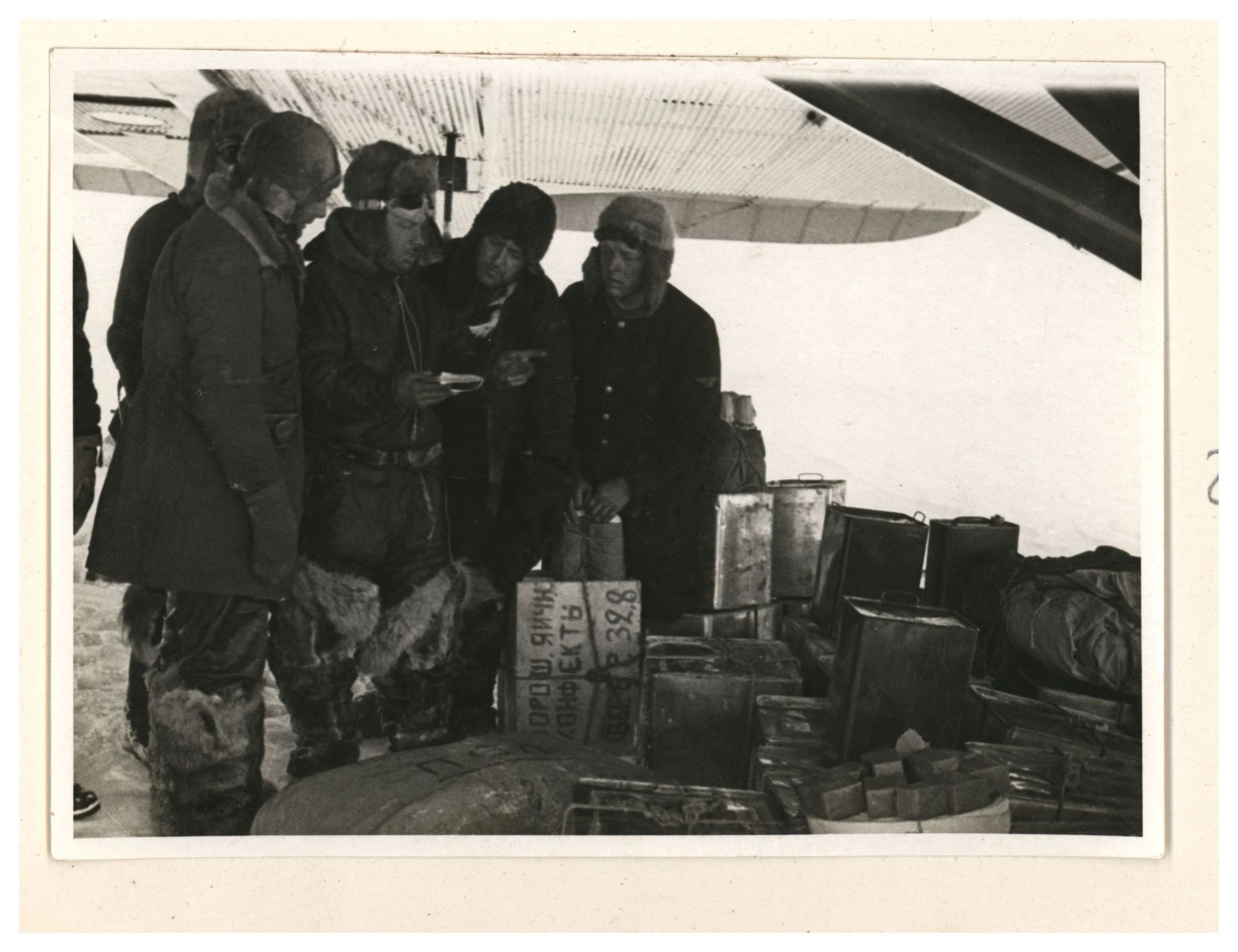 Э.Т.Кренкель, О.Ю.Шмитд. Разгрузка самолета