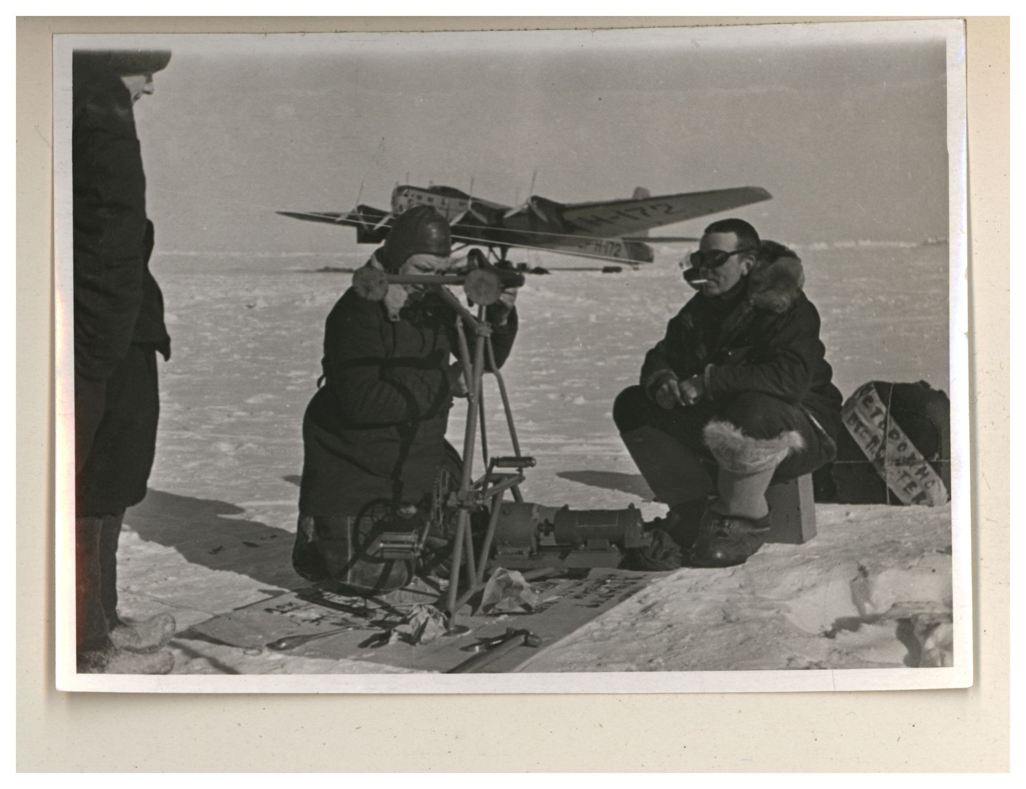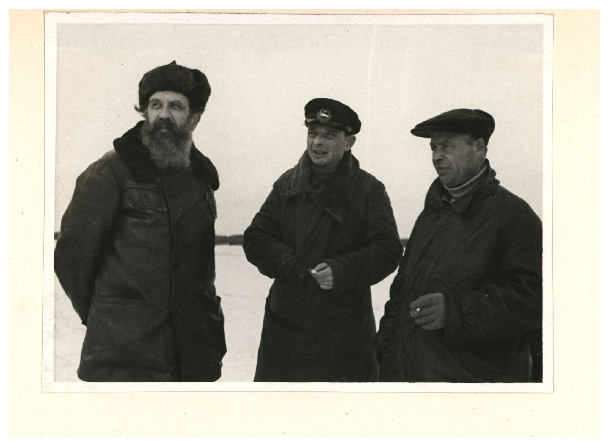 Руководитель группы И. Д. Папанин, метеоролог и геофизик Е. К.Фёдоров