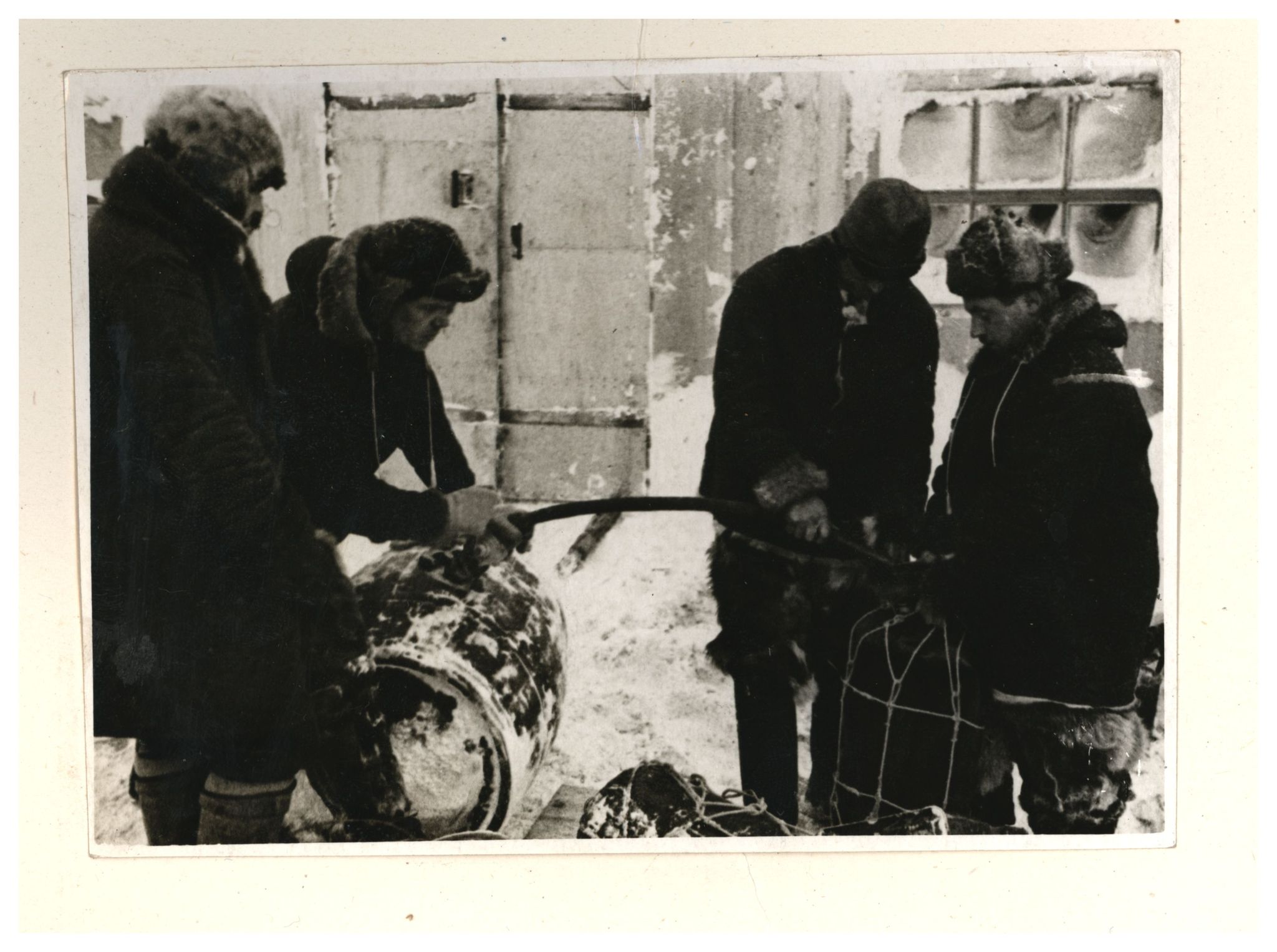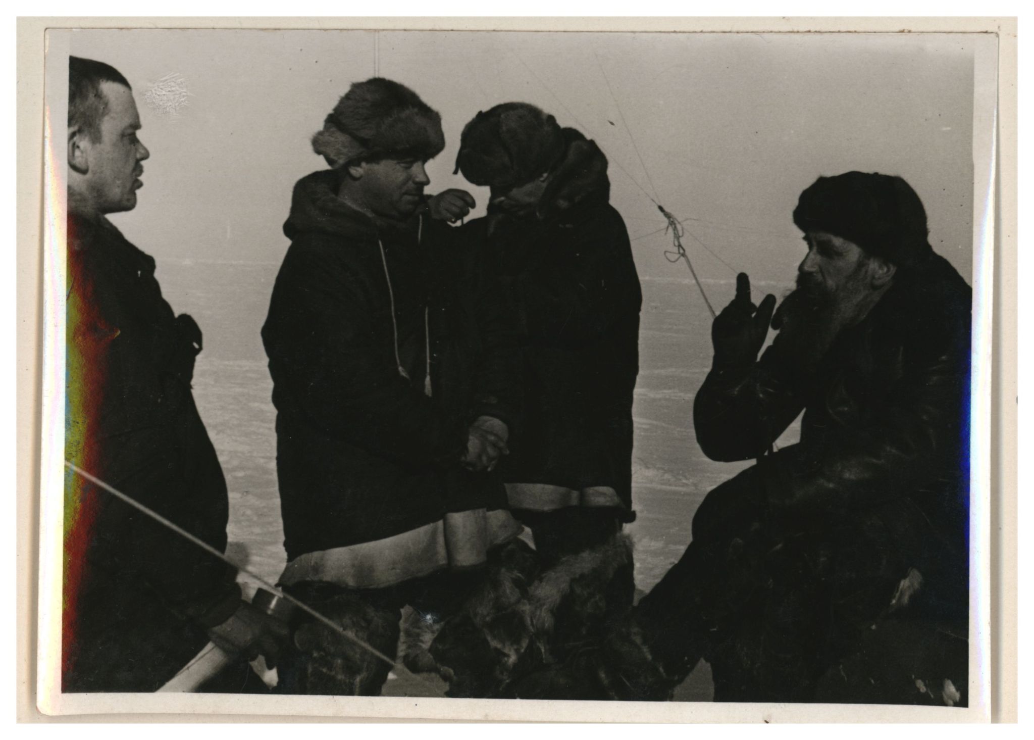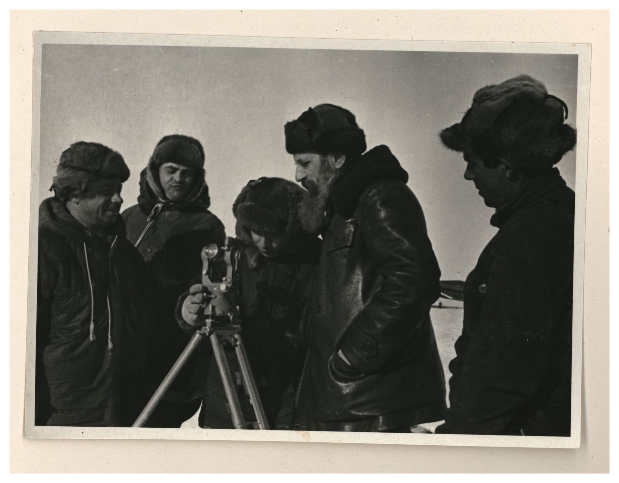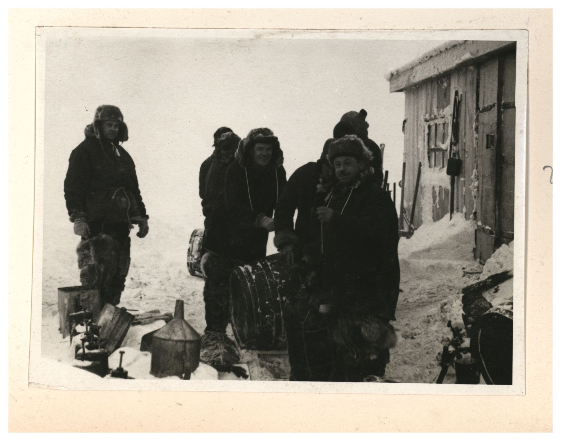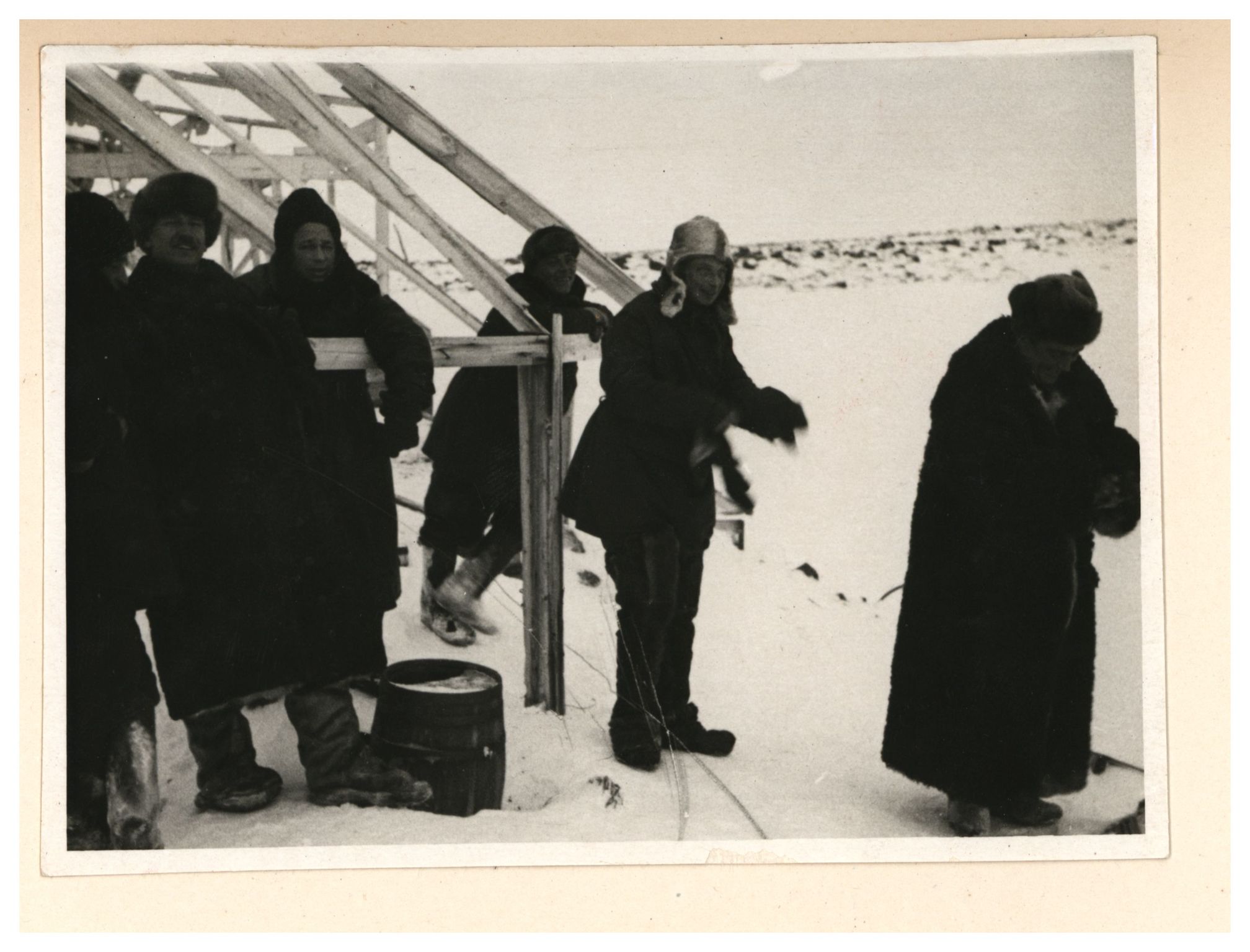 И.Д.Папанин, О.Ю.Шмидт, П.П.Ширшов налаживают гидрологическую лебедку