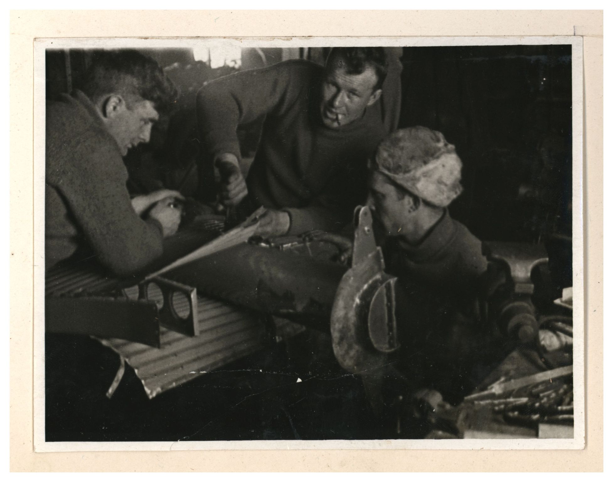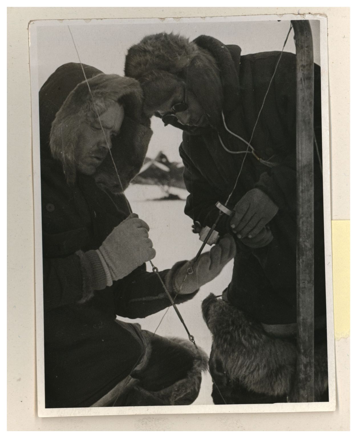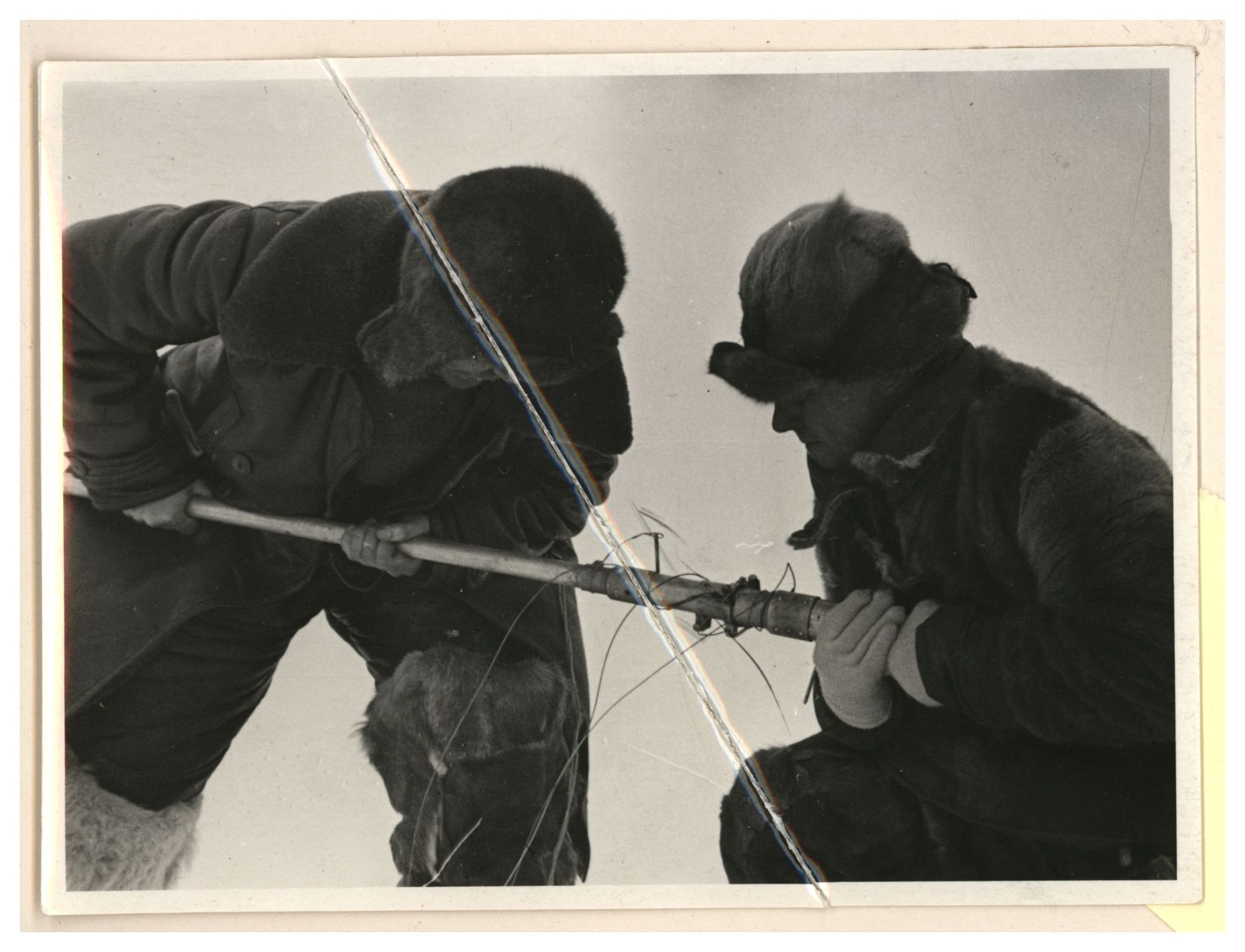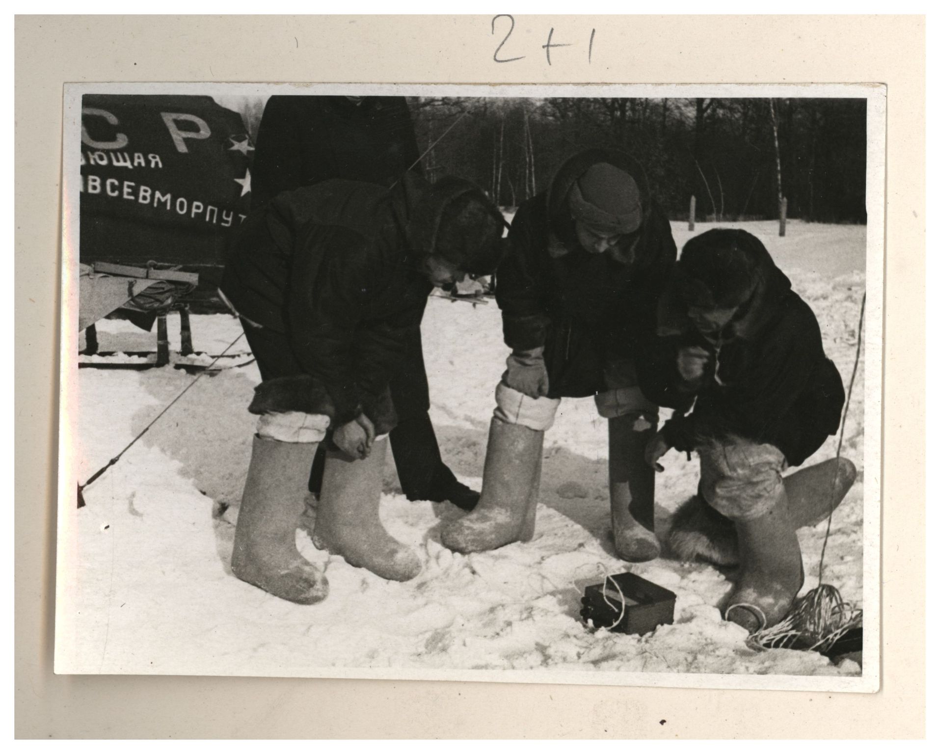 И.Д.Папанин, О.Ю.Шмидт, П.П.Ширшов налаживают гидрологическую лебедку