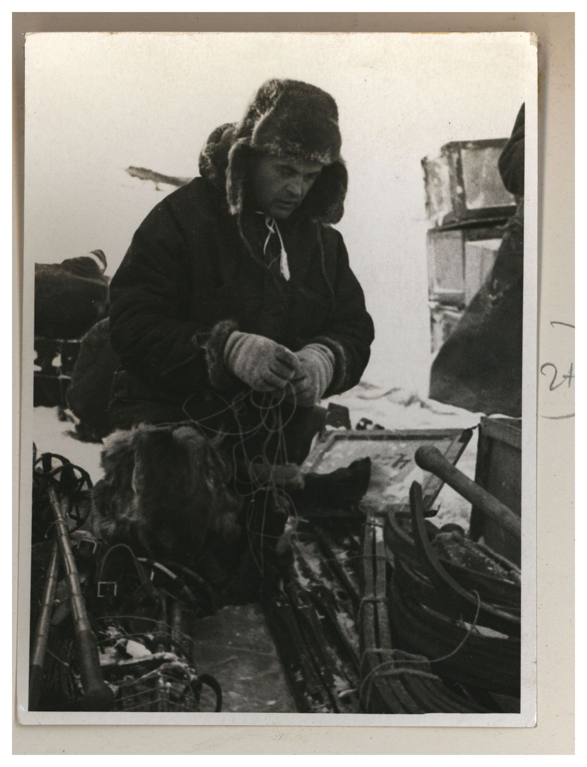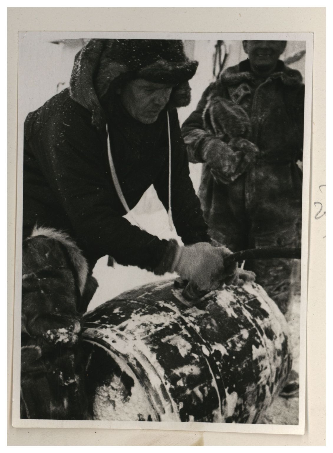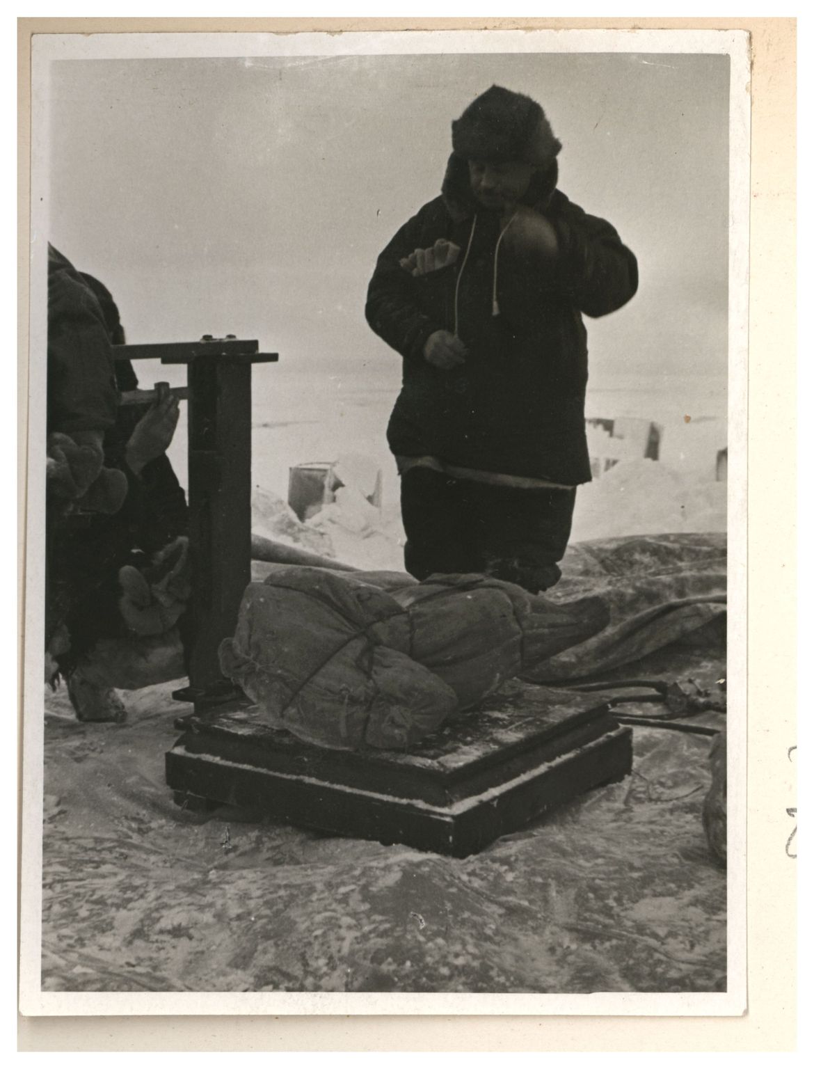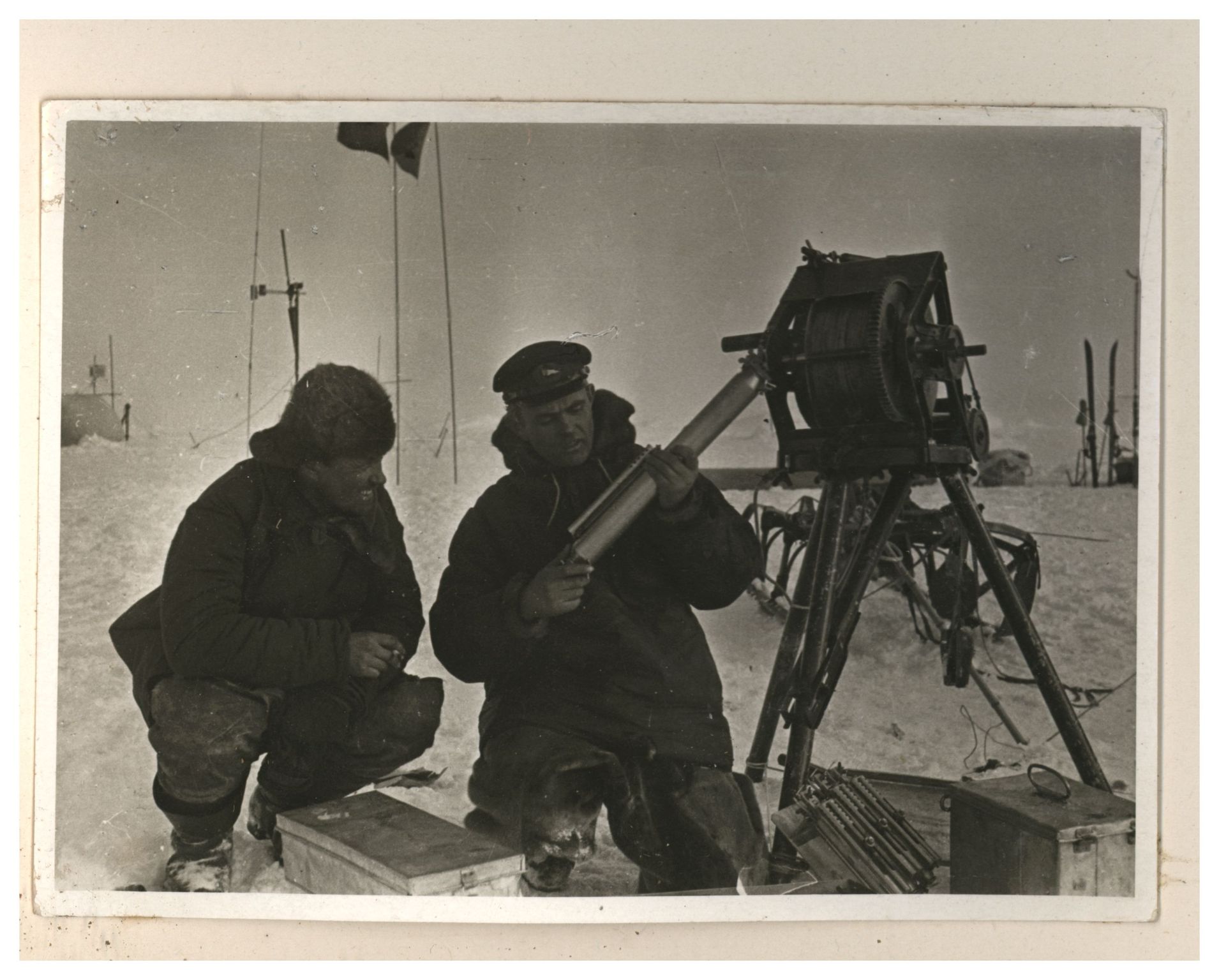 П.П.Ширшов налаживает гидрологическую лебедку