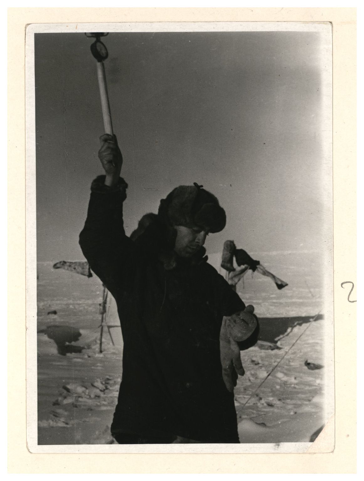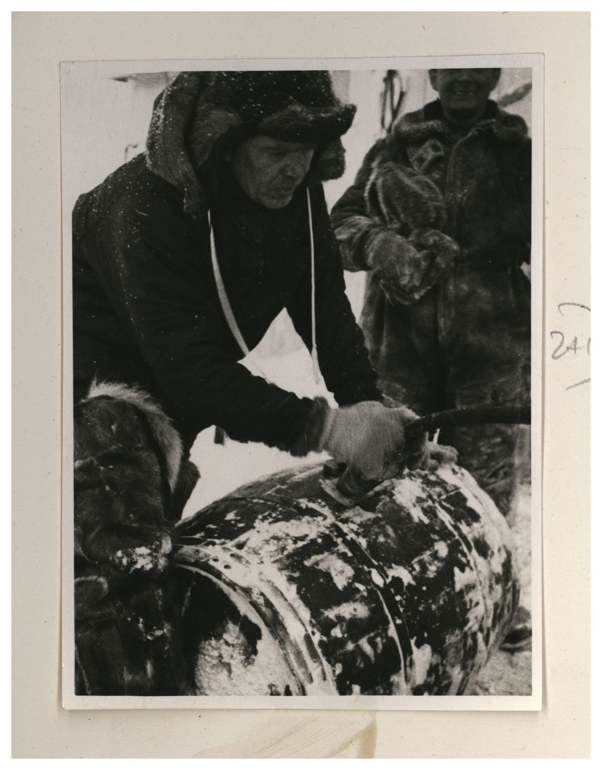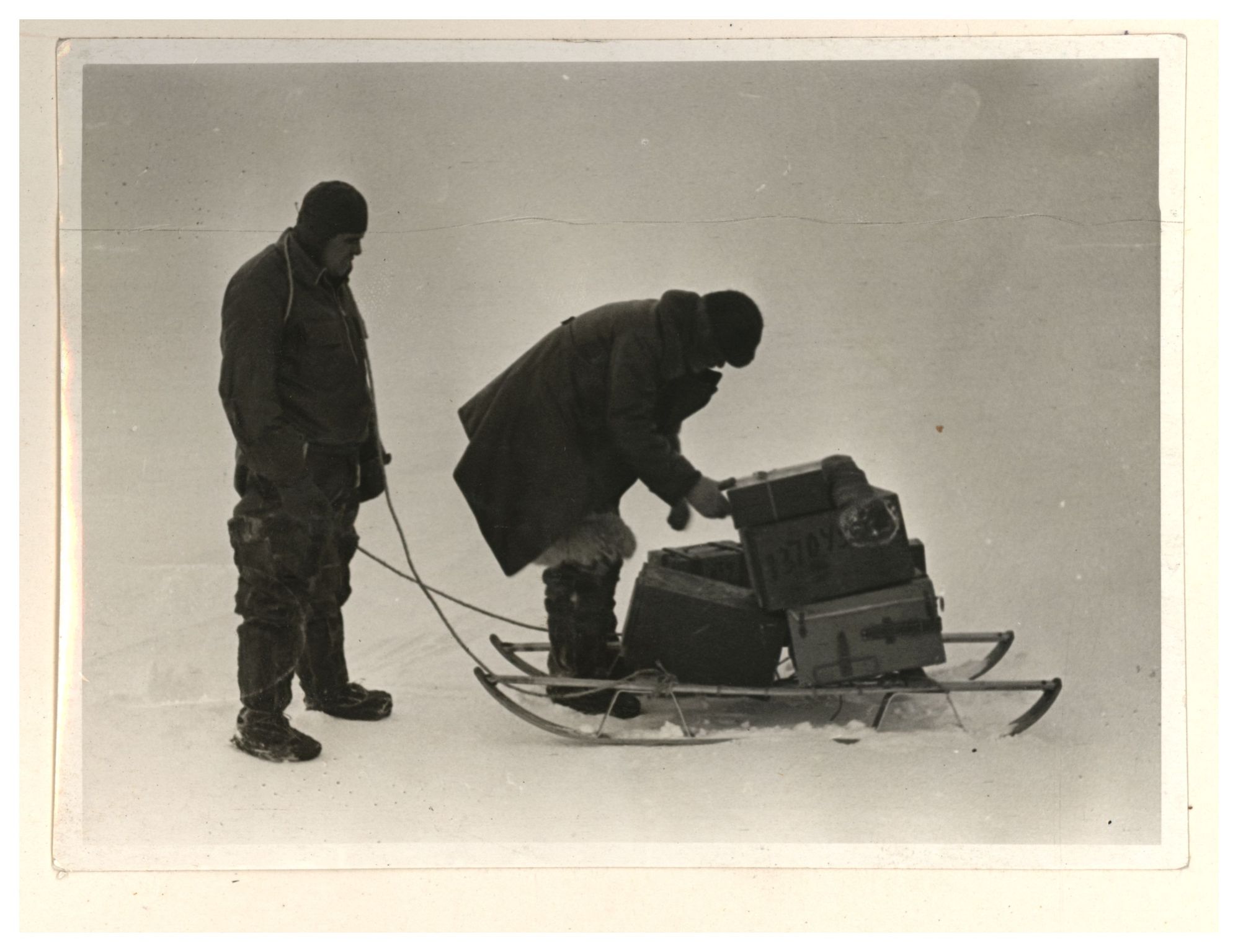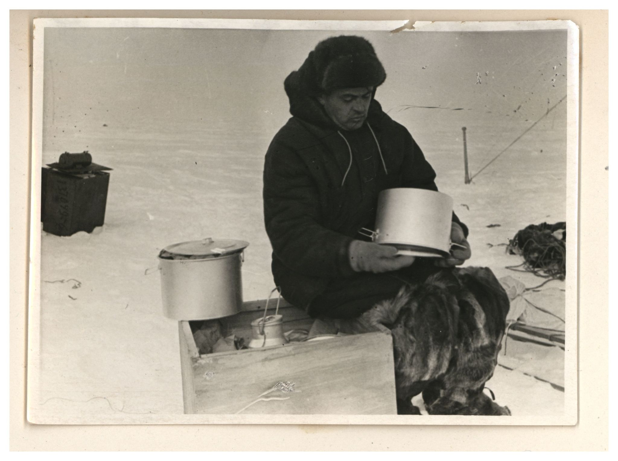 П.П.Ширшов налаживает гидрологическую лебедку