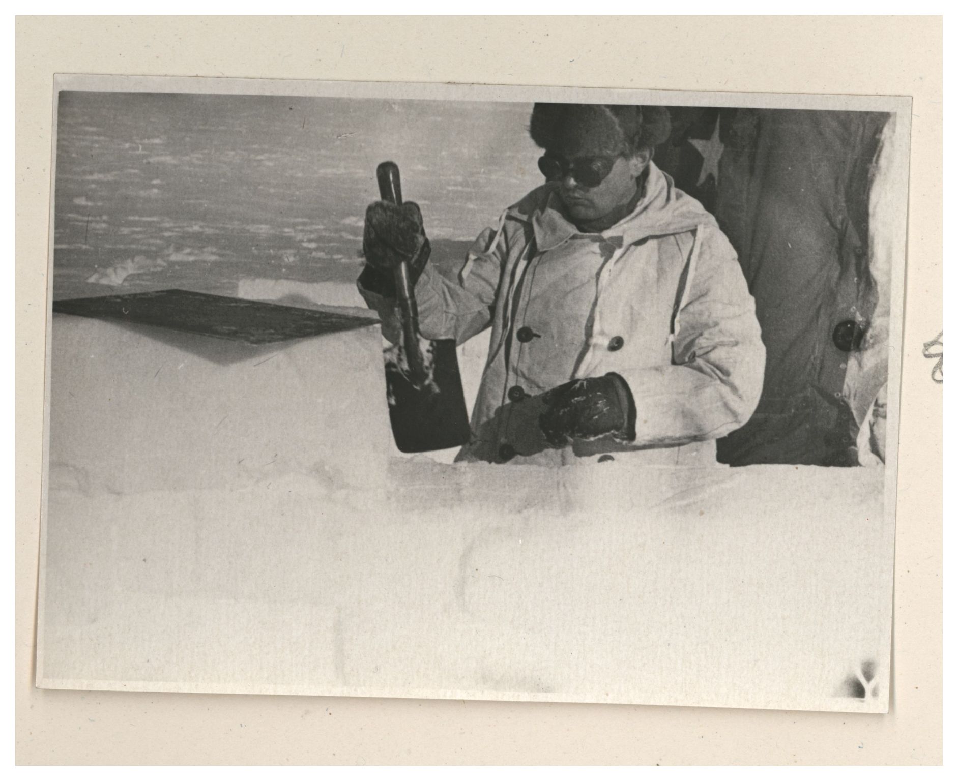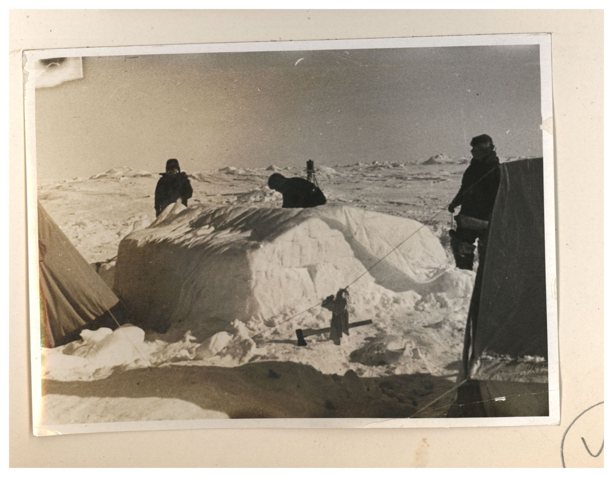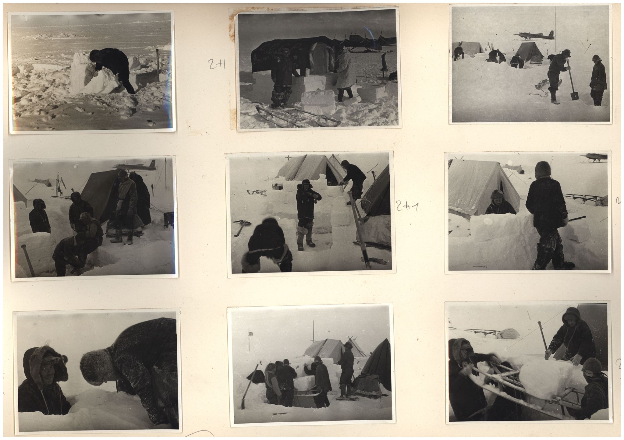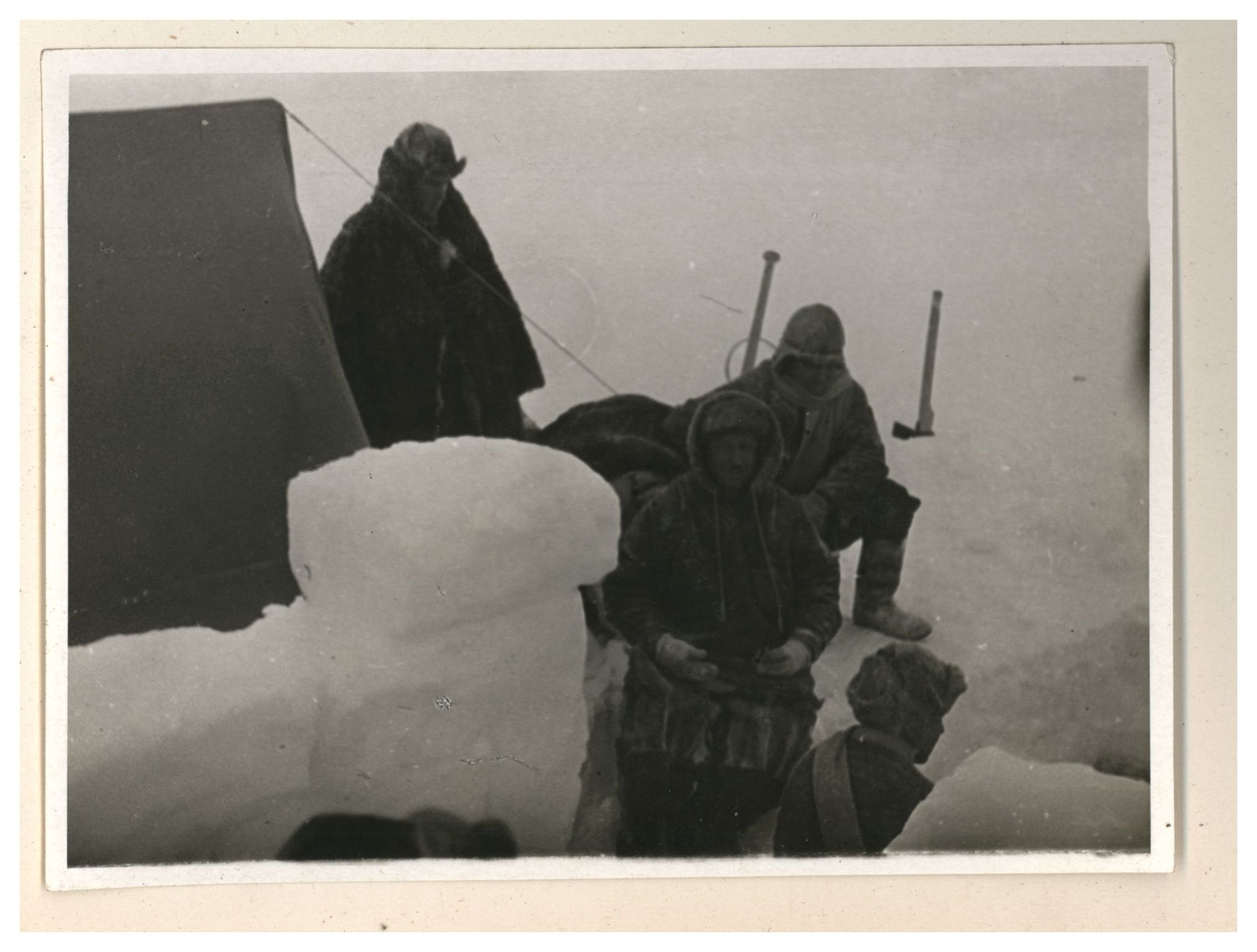 И.Д.Папанин. Строительство заградительной стены вокруг палатки