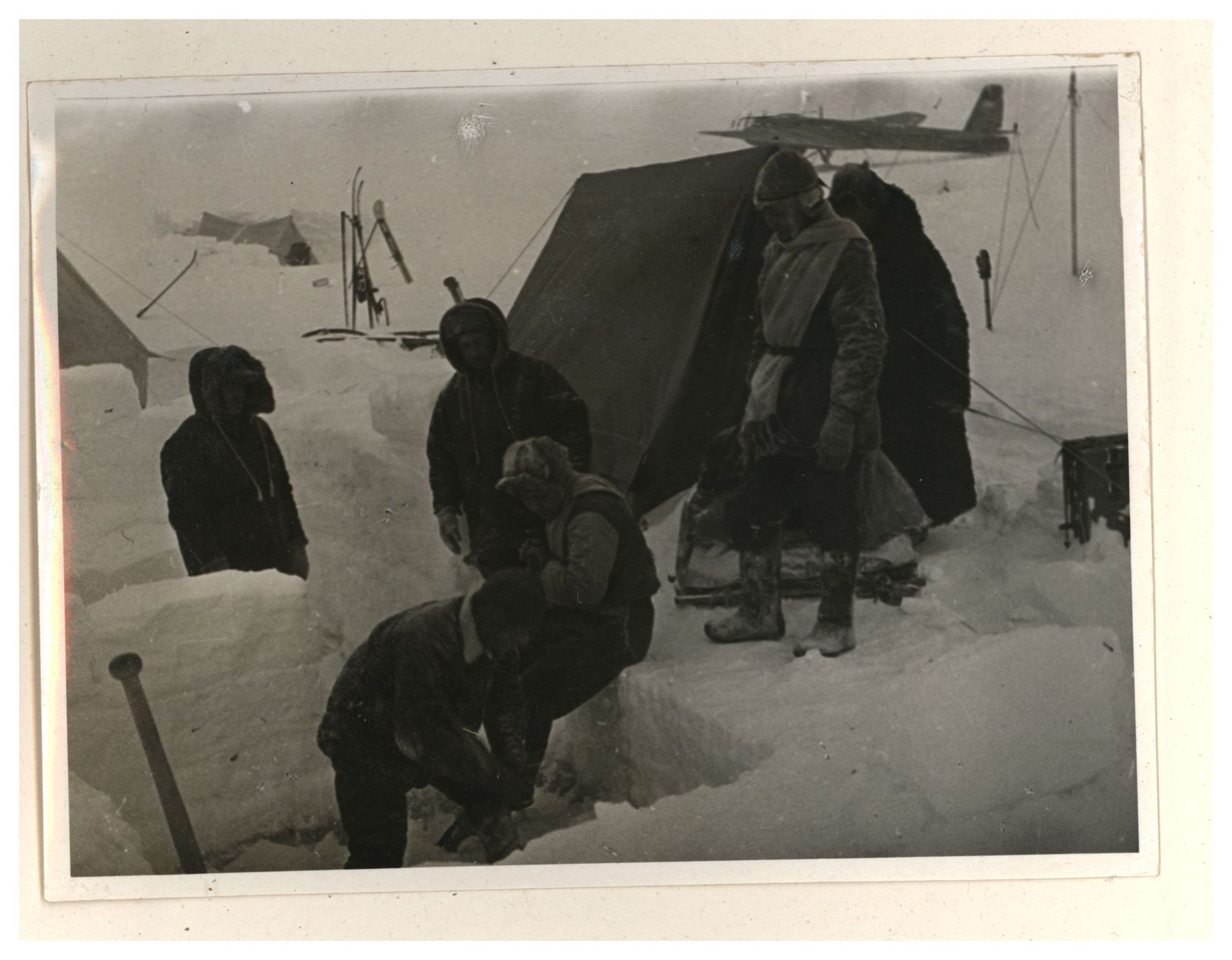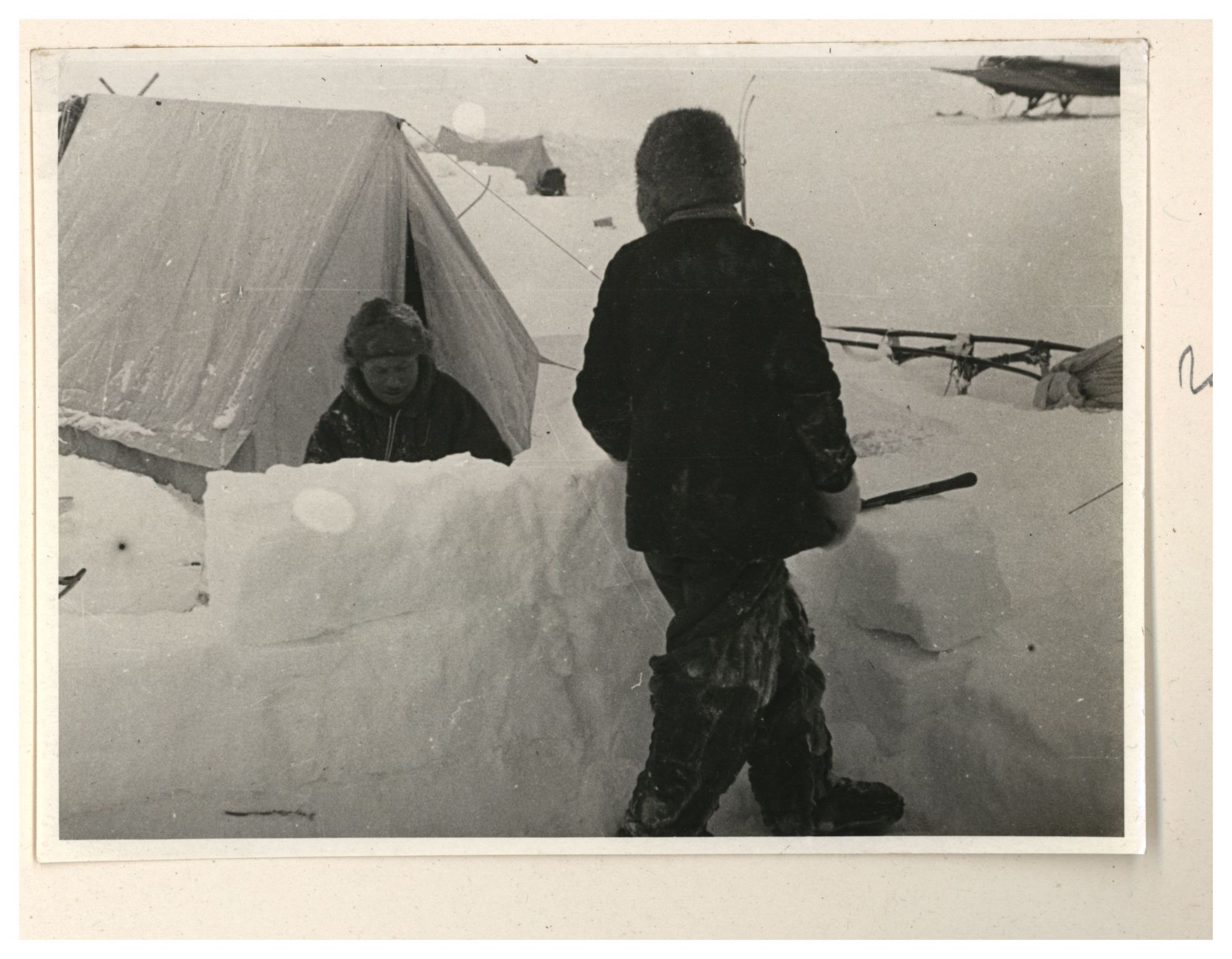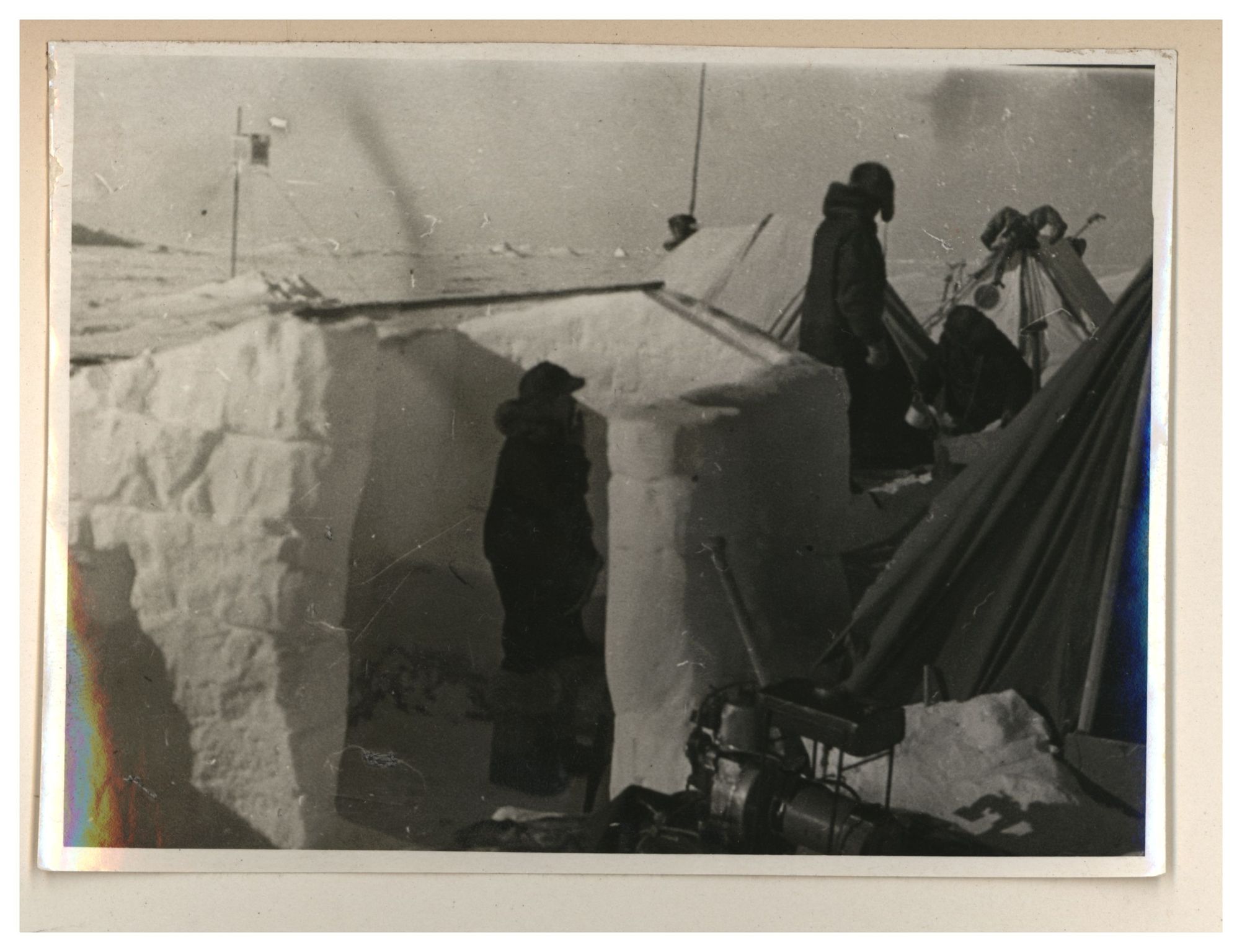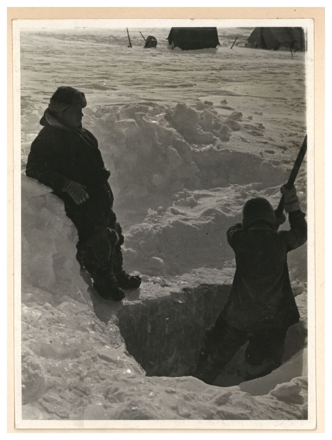 И.Д.Папанин. Строительство заградительной стены вокруг палатки