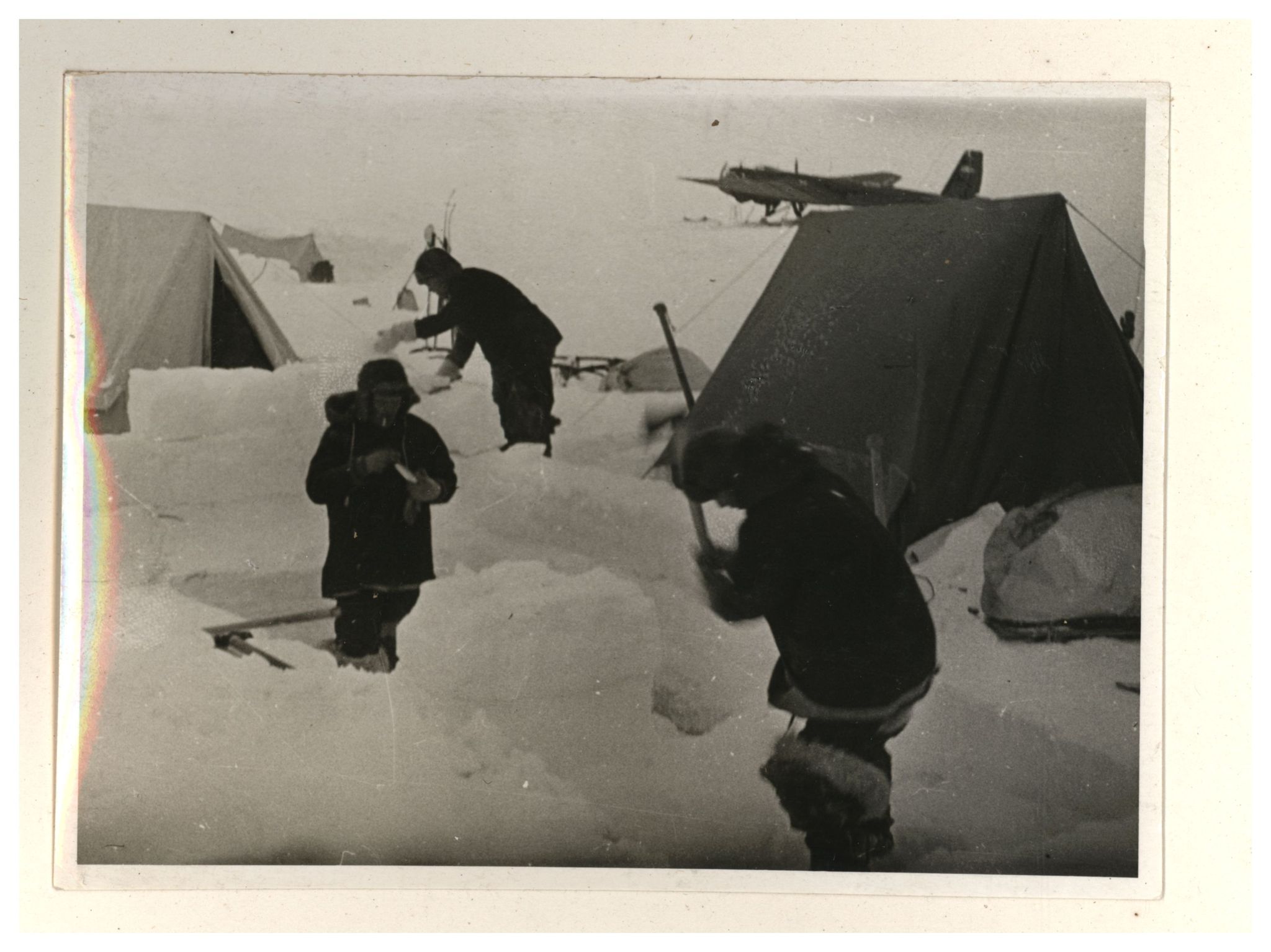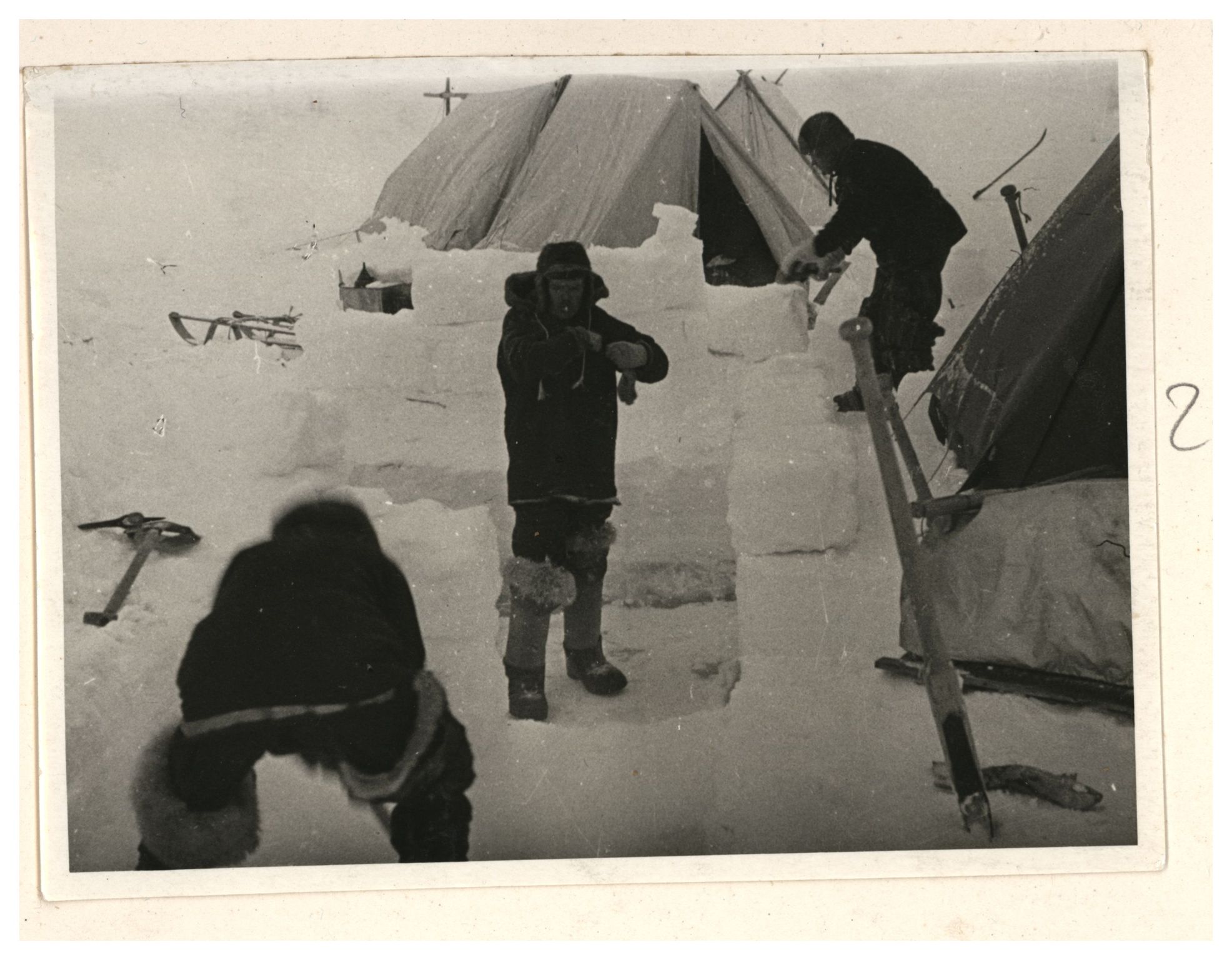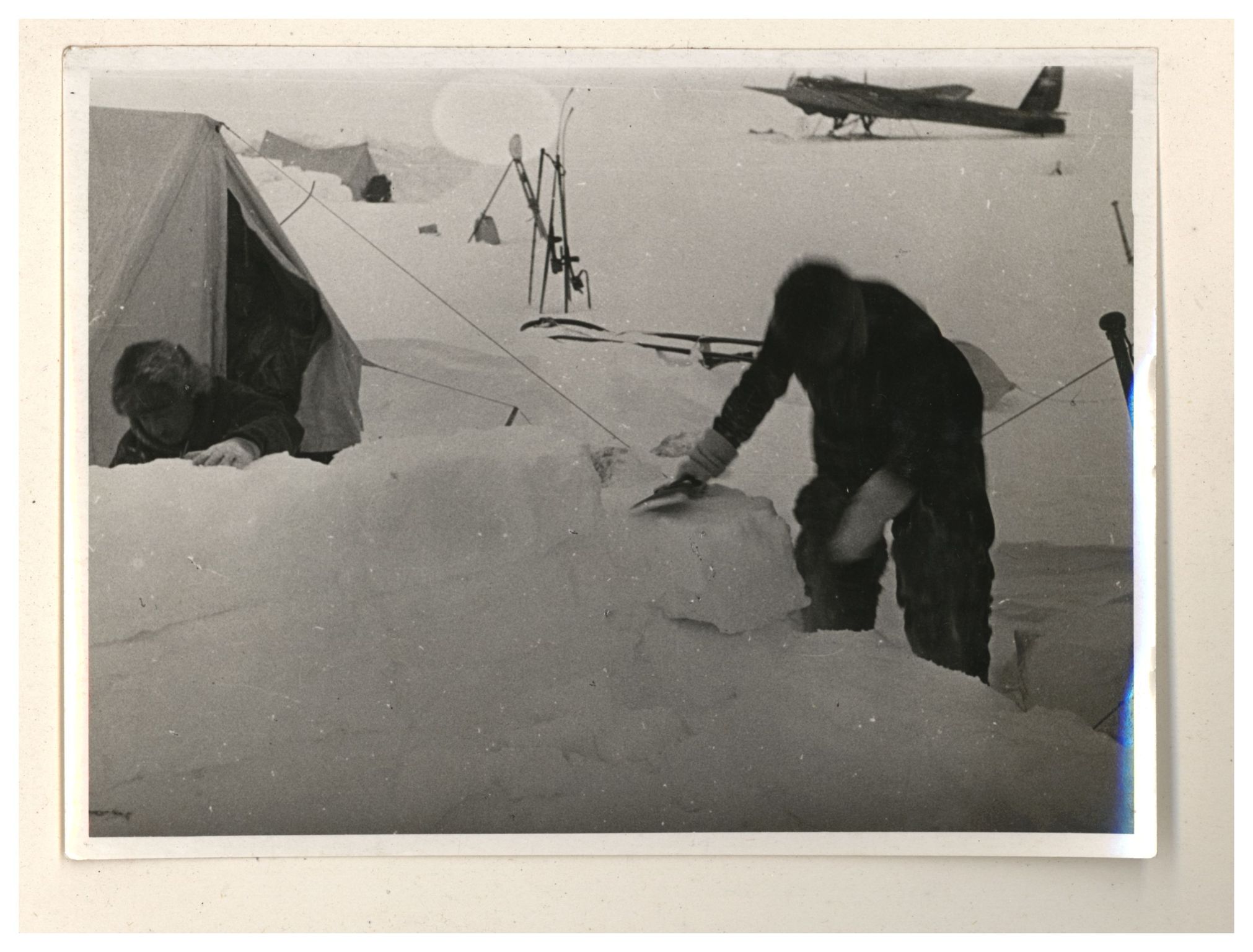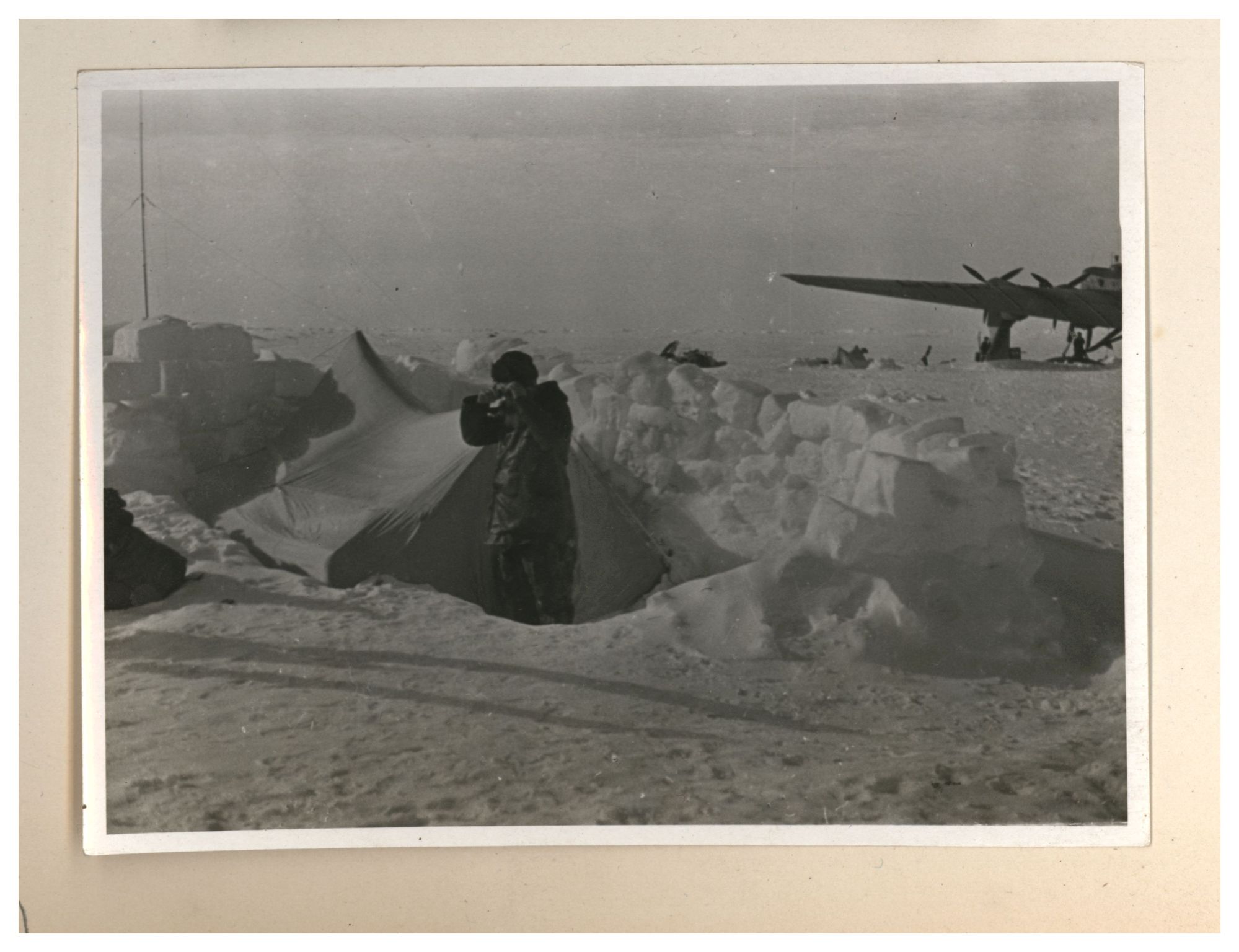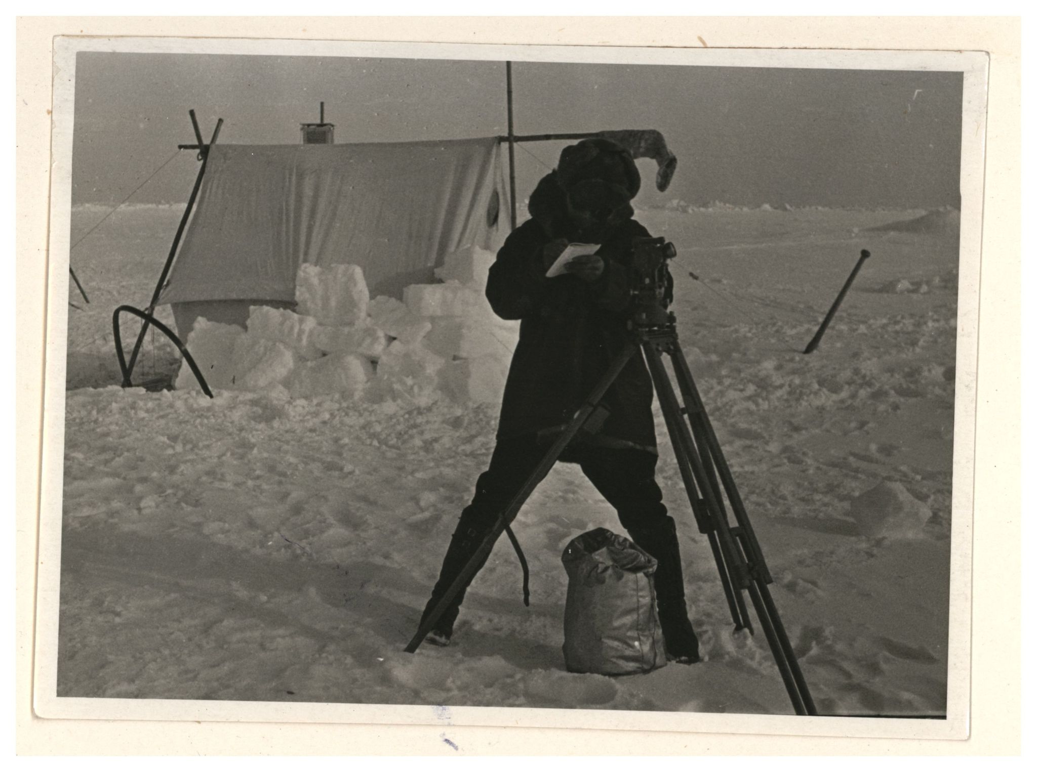 И.Д.Папанин. Строительство заградительной стены вокруг палатки