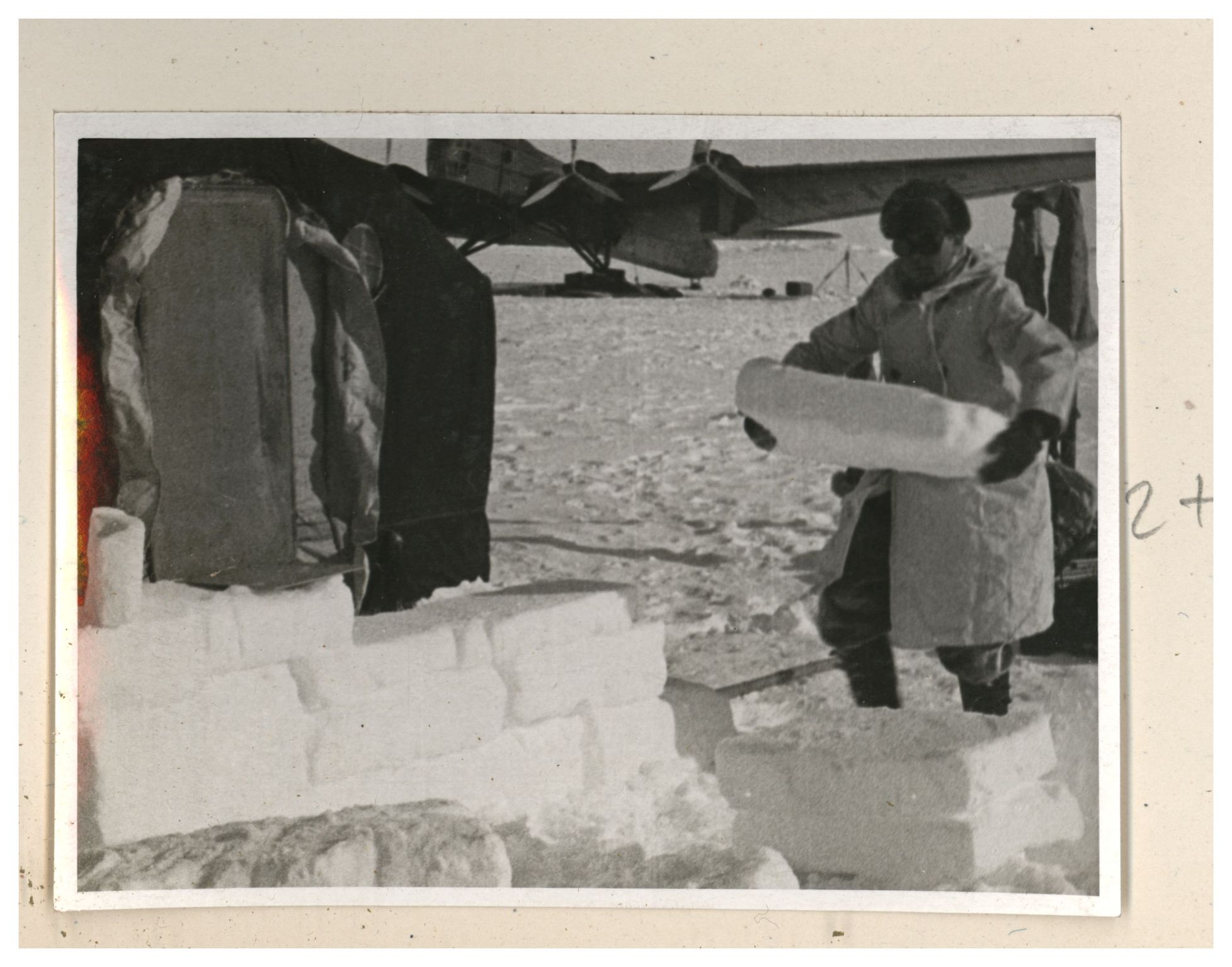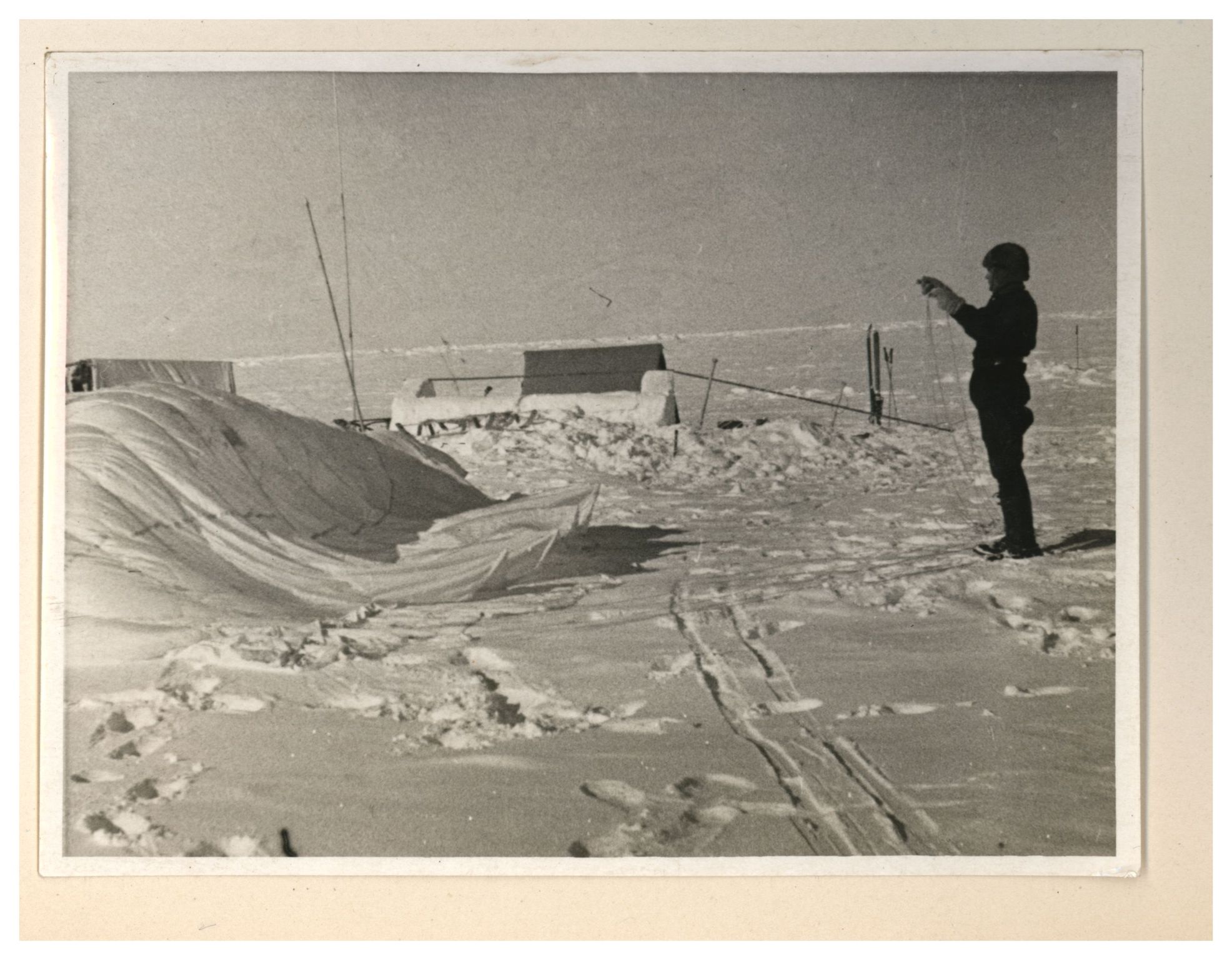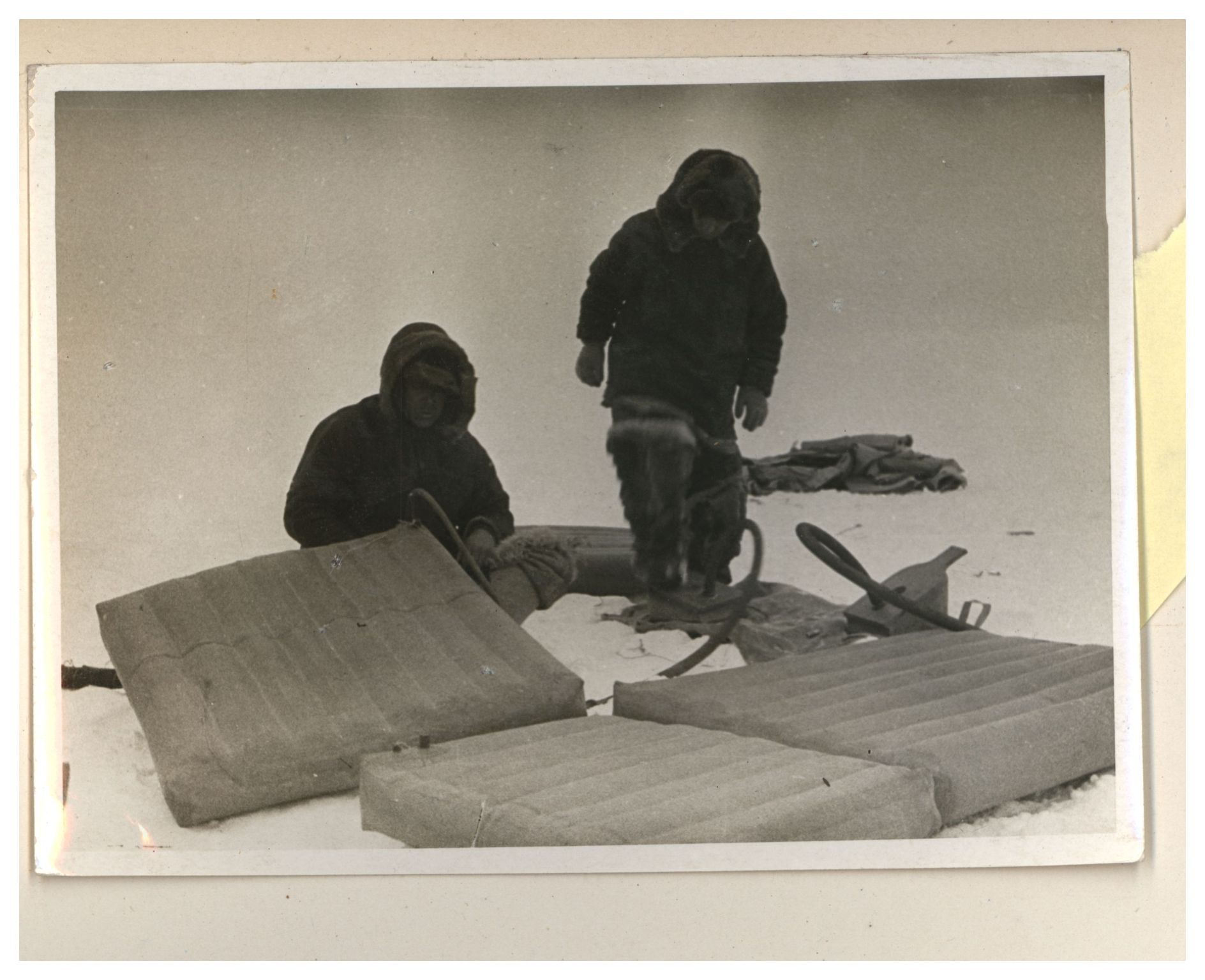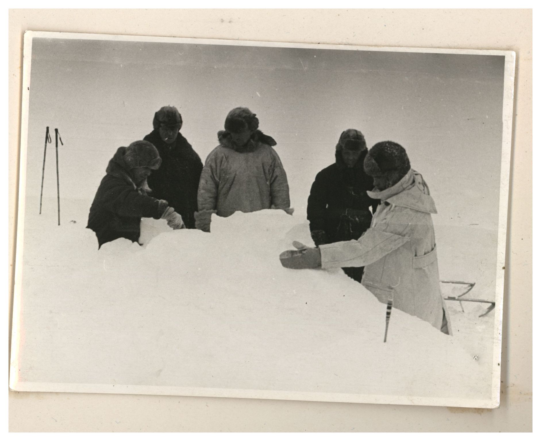 И.Д.Папанин. Строительство заградительной стены вокруг палатки