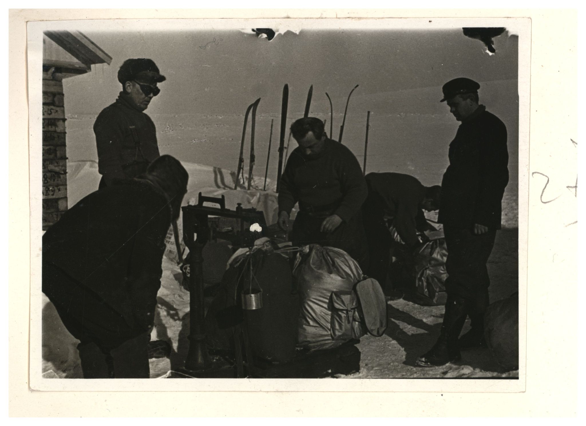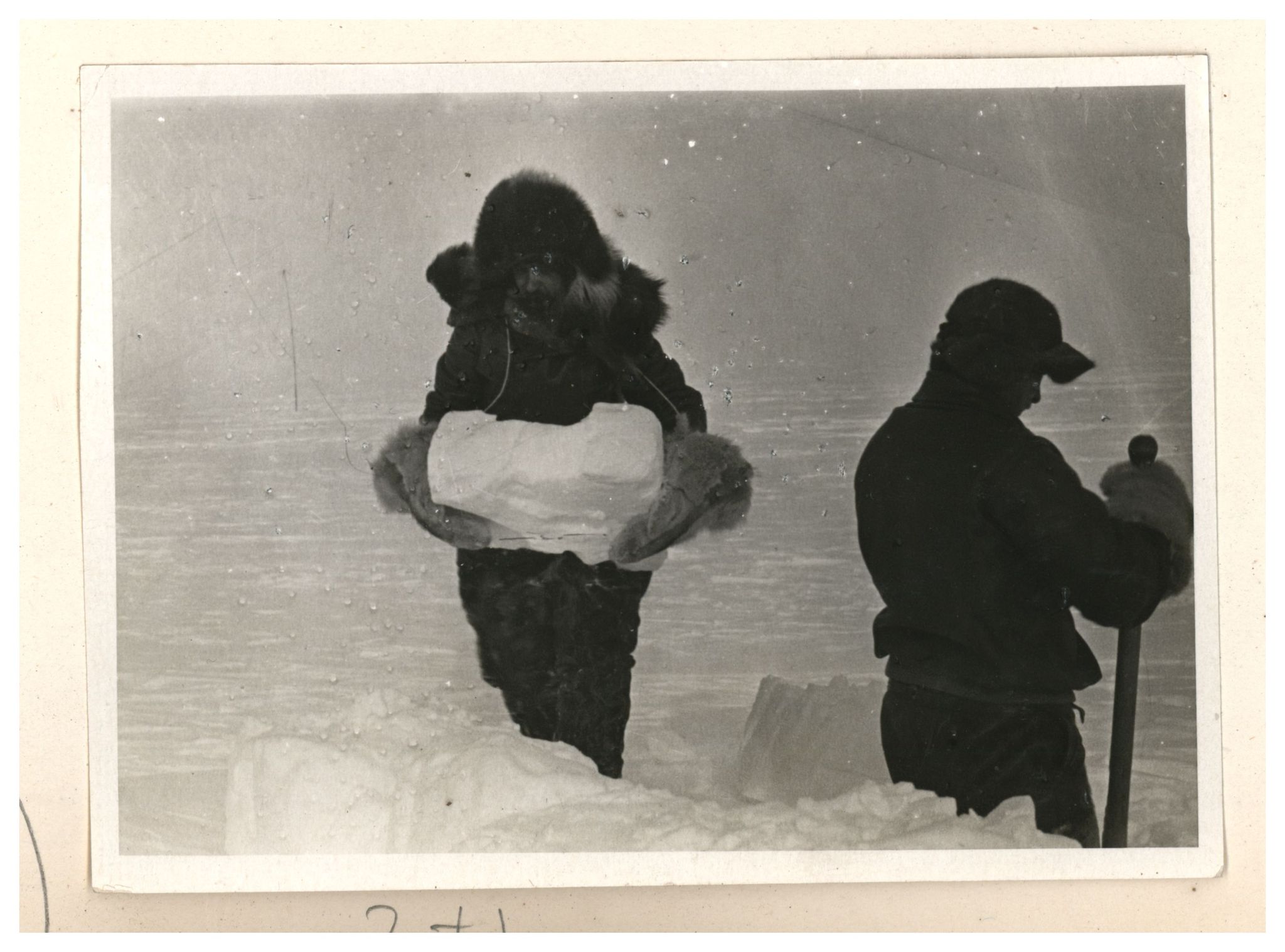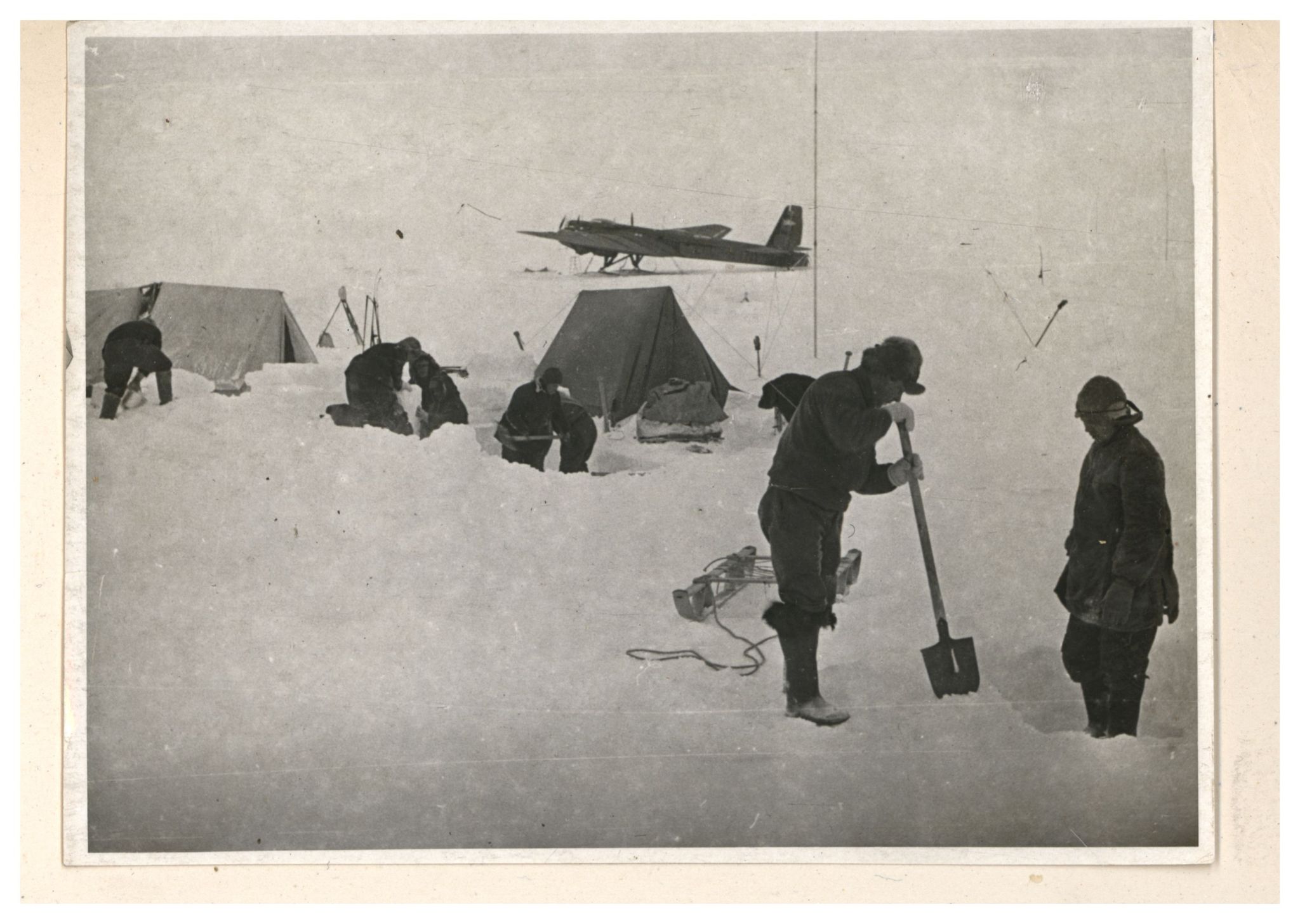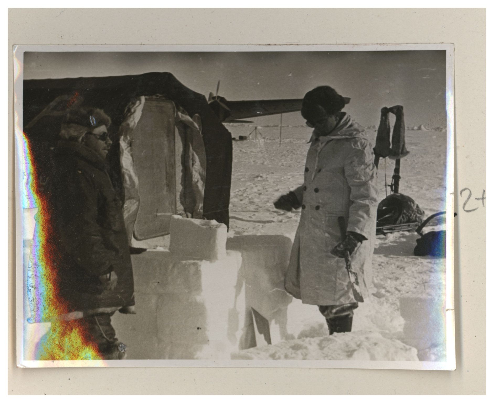 И.Д.Папанин. Строительство заградительной стены вокруг палатки