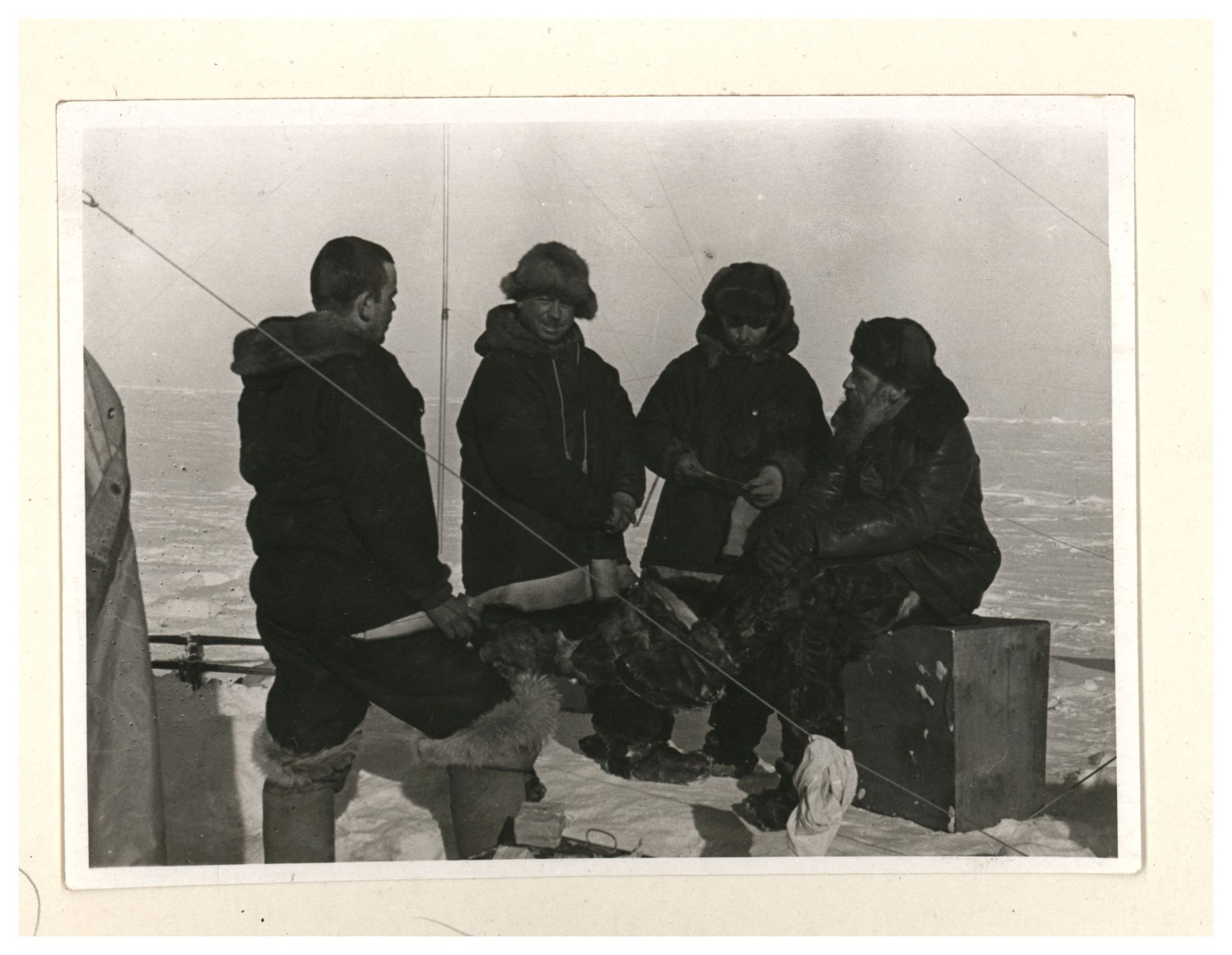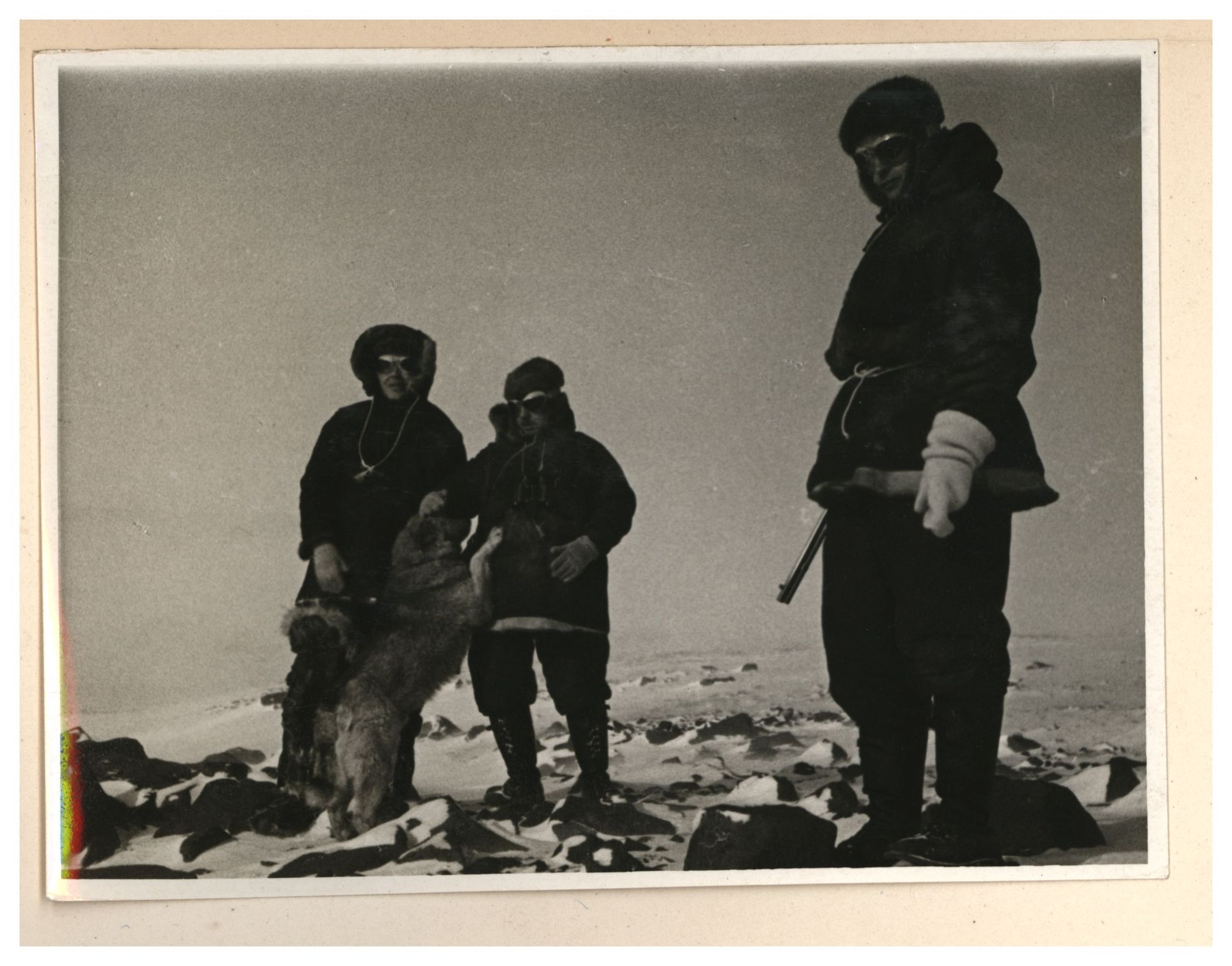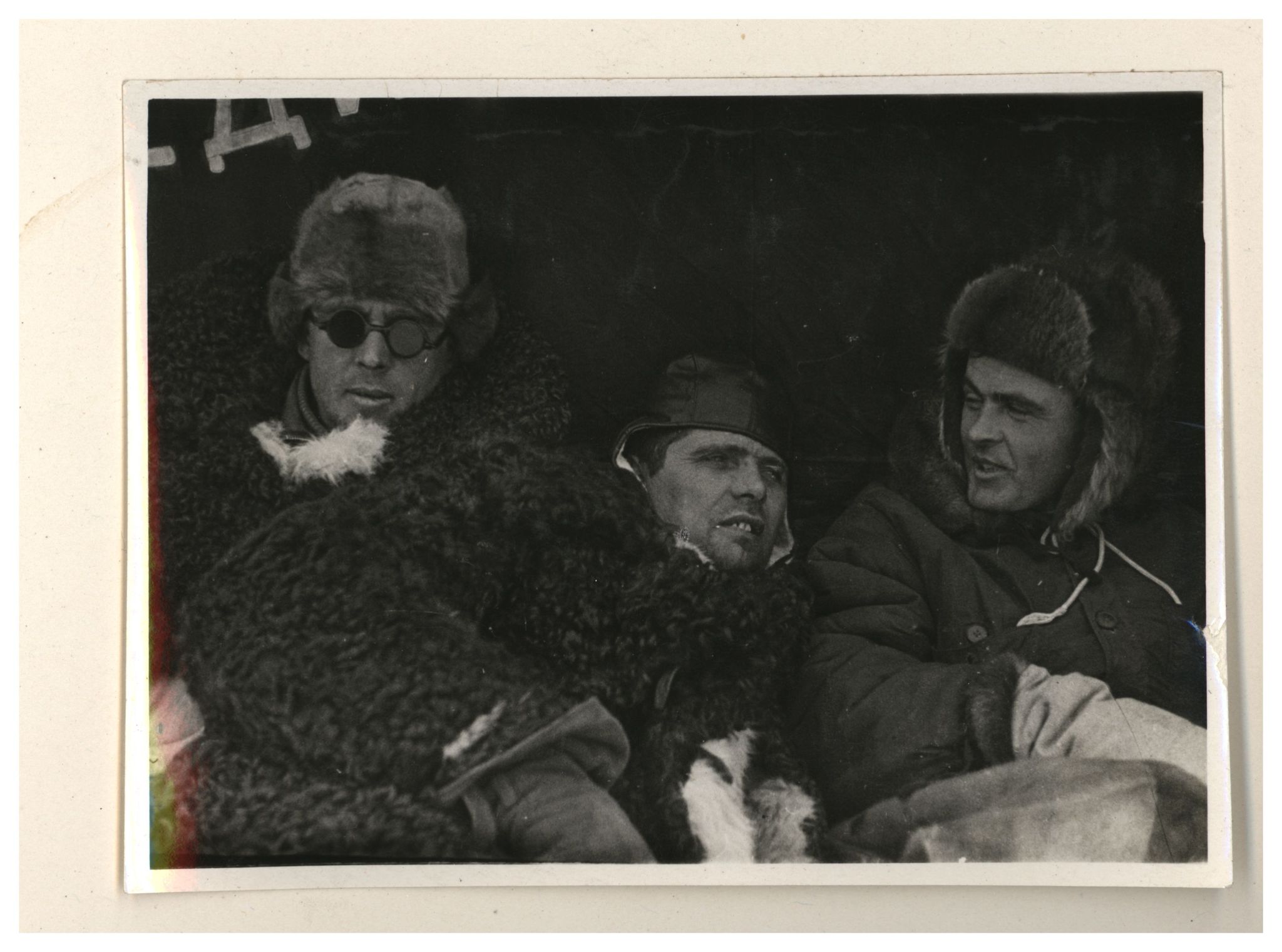 Э.Т.Кренкель, И.Д.Папанин, П.П.Ширшов и пес Веселый