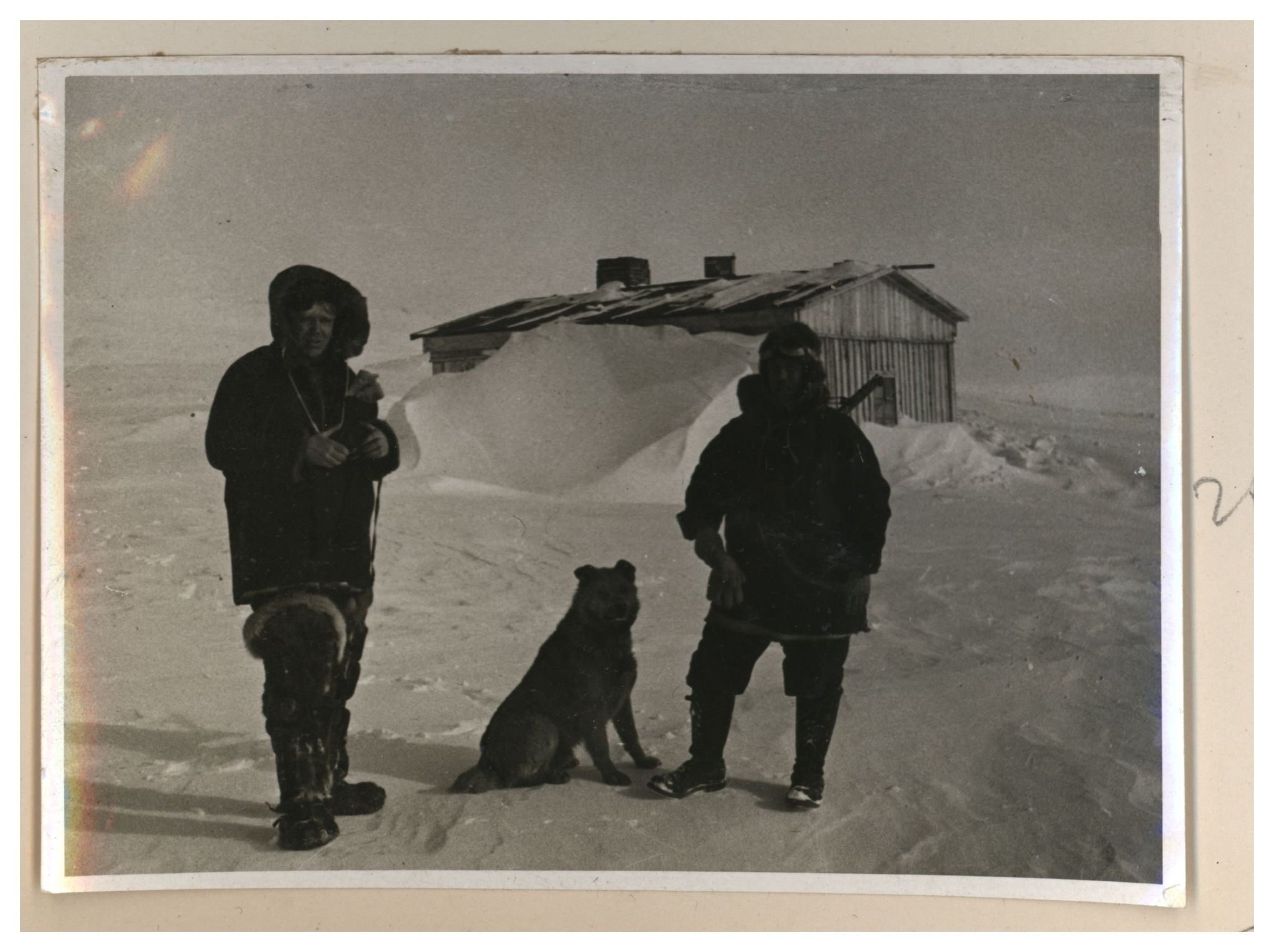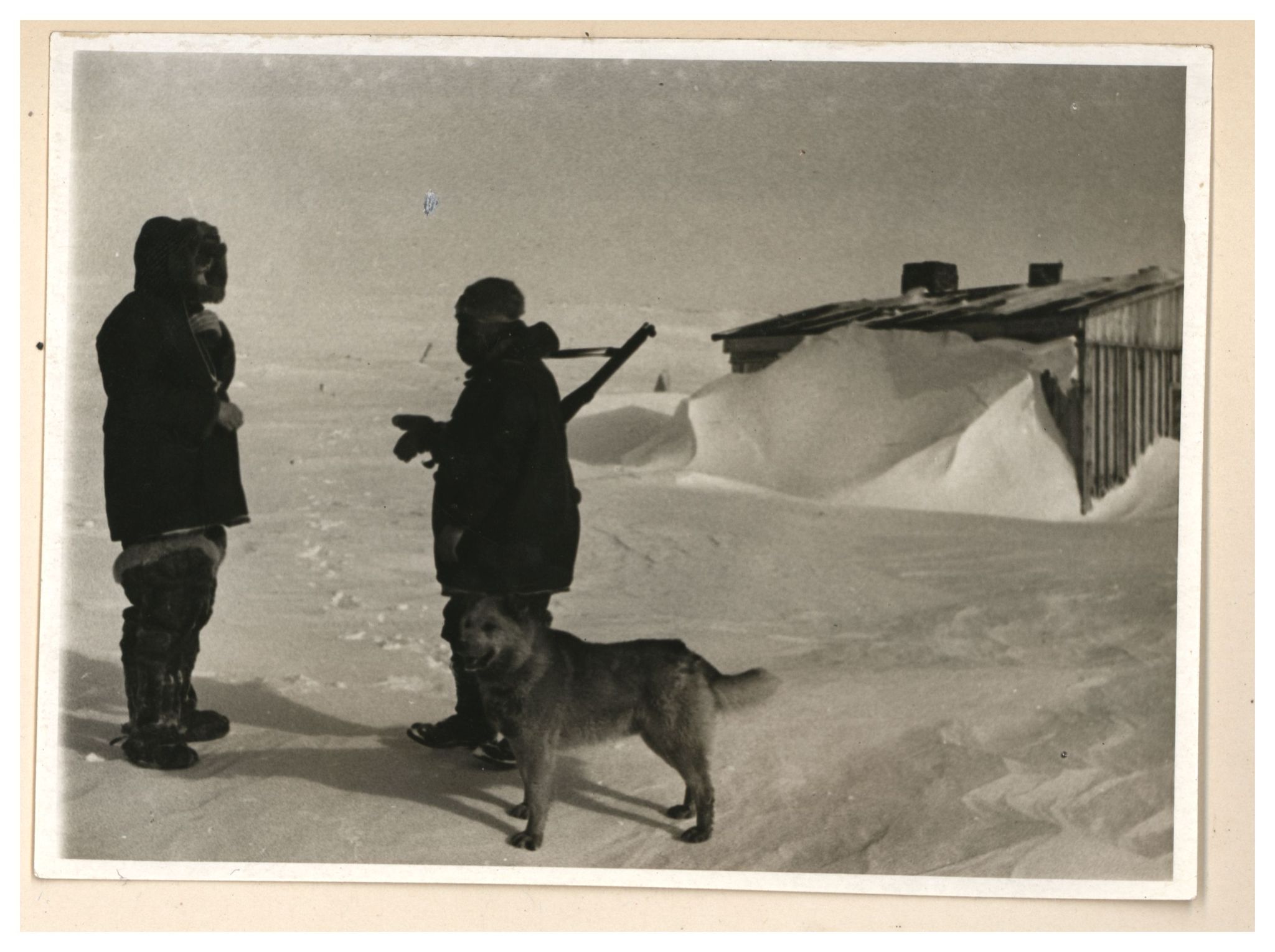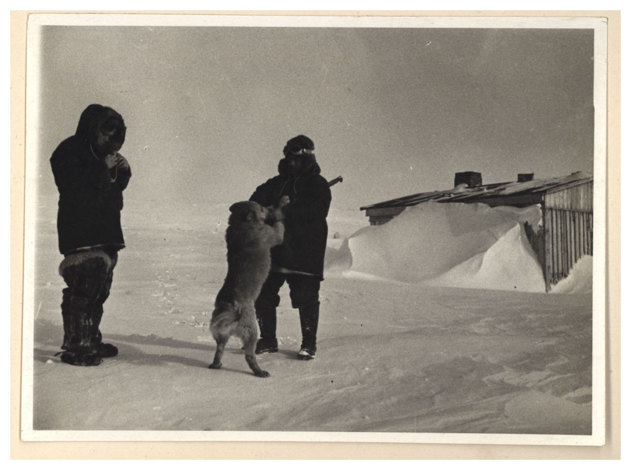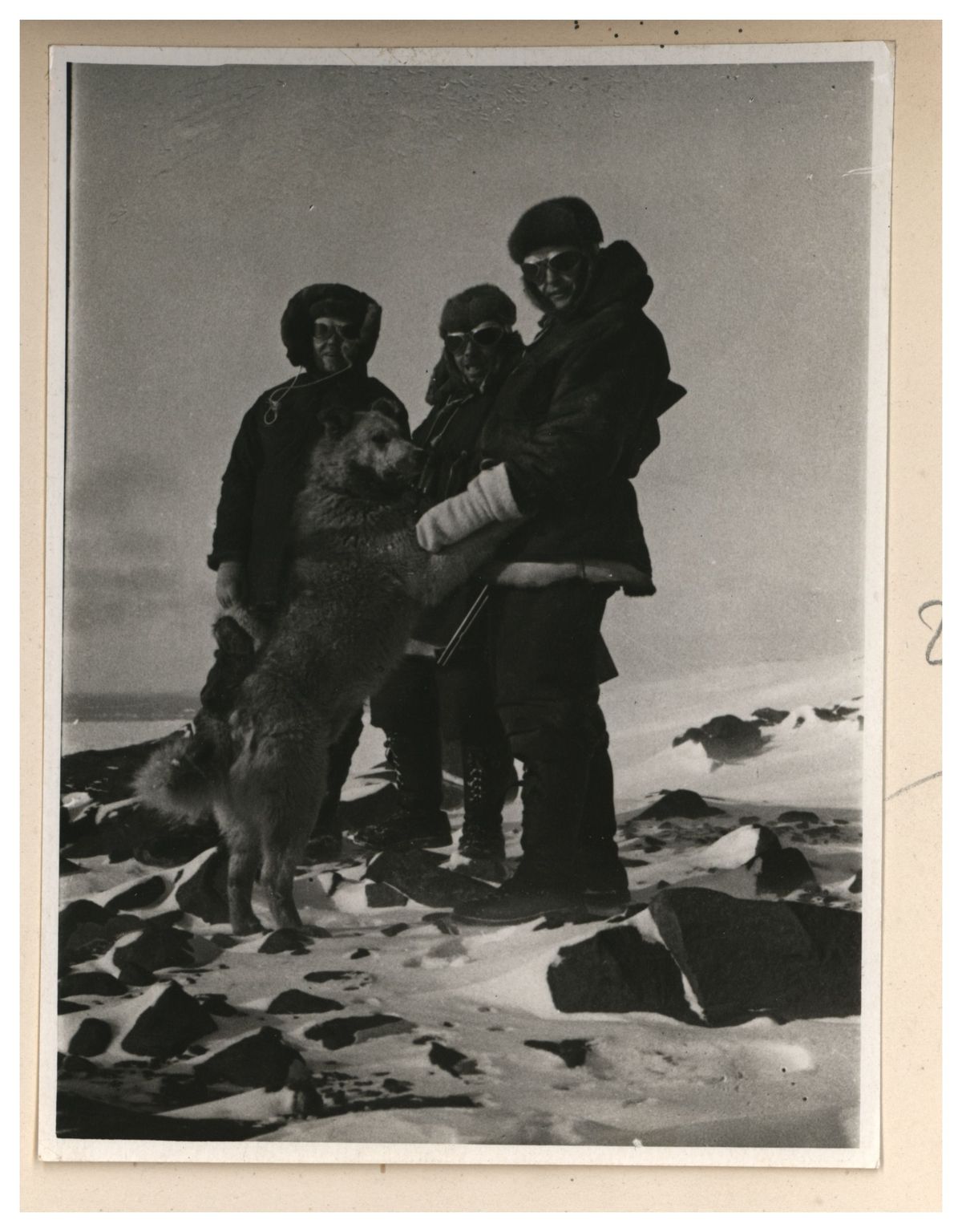 Э.Т.Кренкель, И.Д.Папанин, П.П.Ширшов и пес Веселый