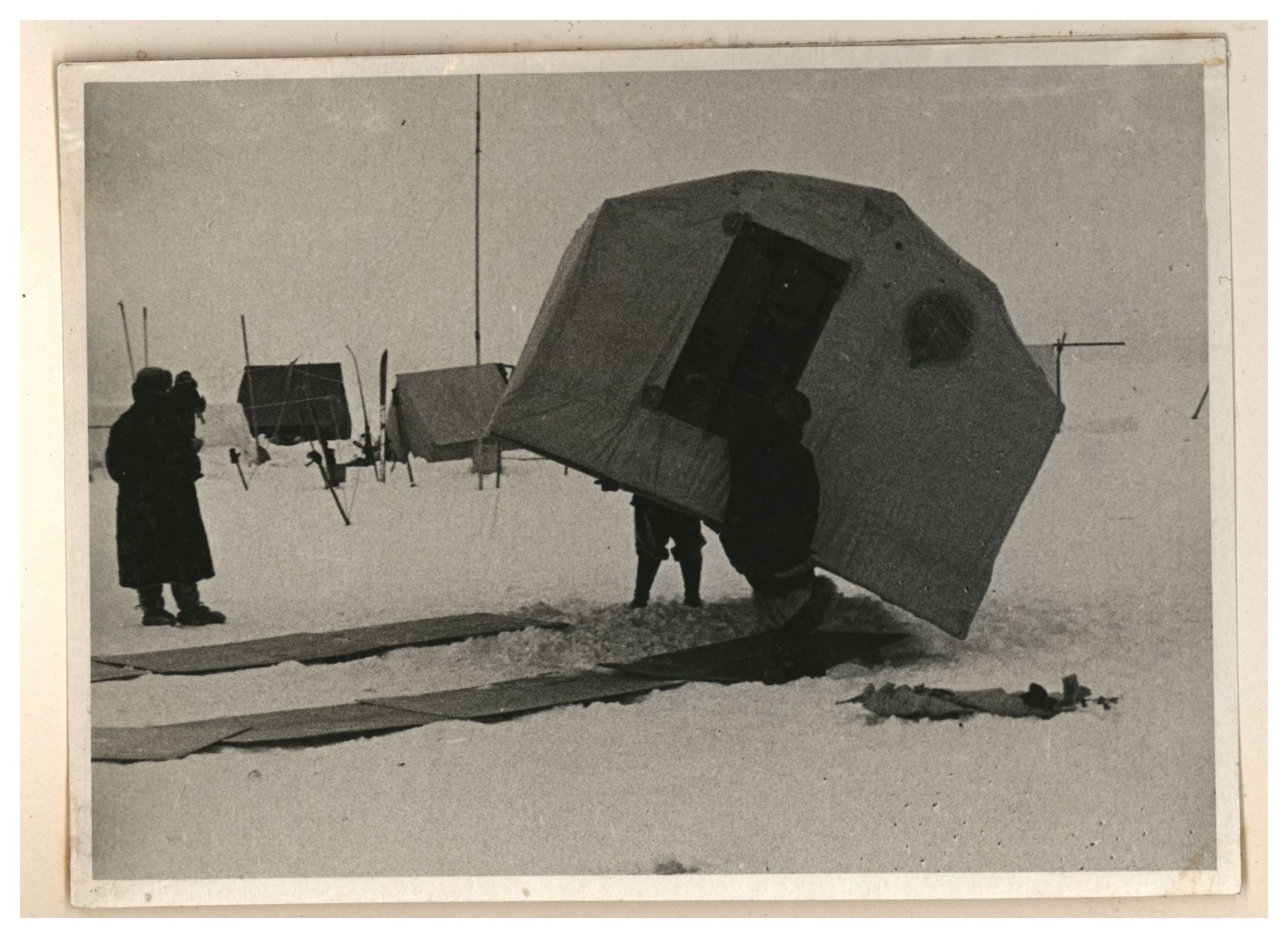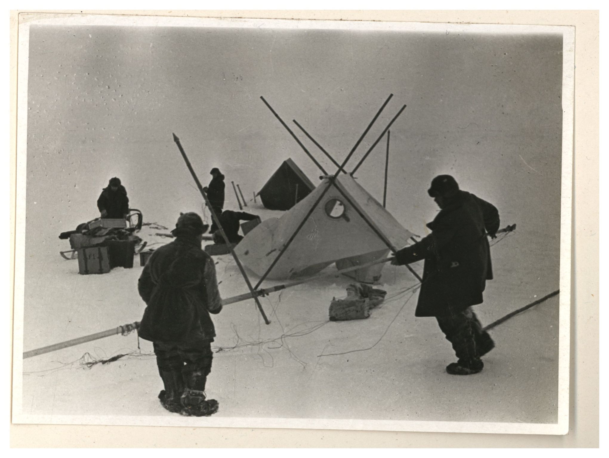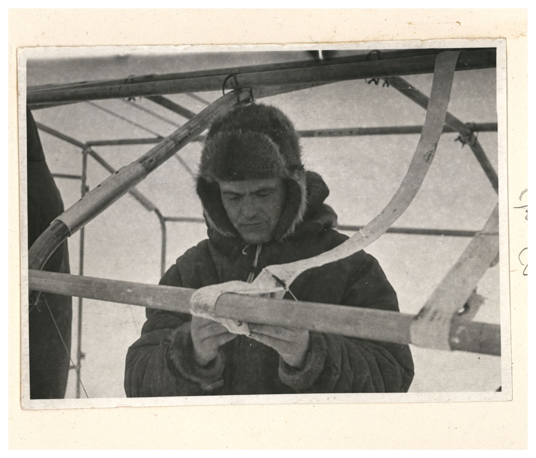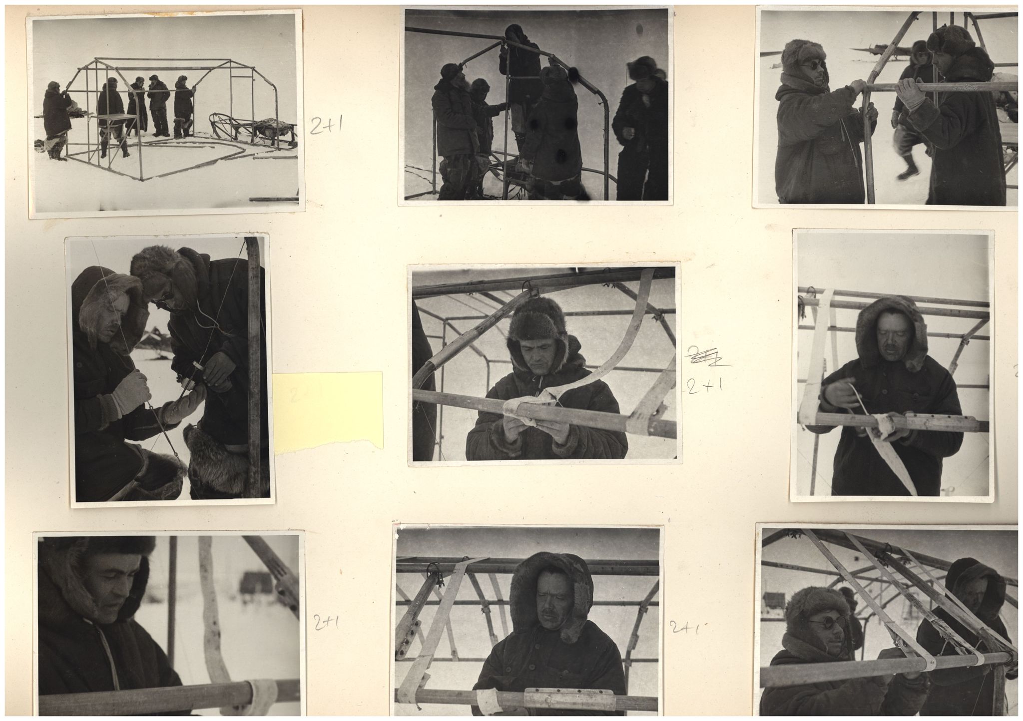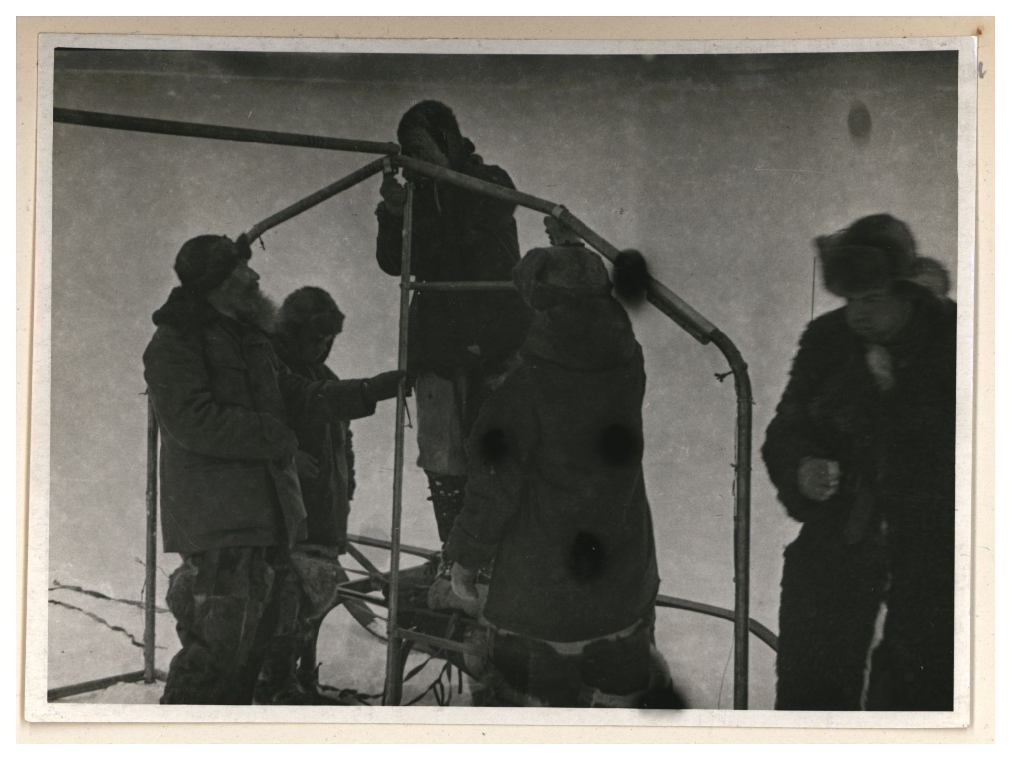 И.Д.Папанин. Сборка алюминиевого каркаса жилой палатки
