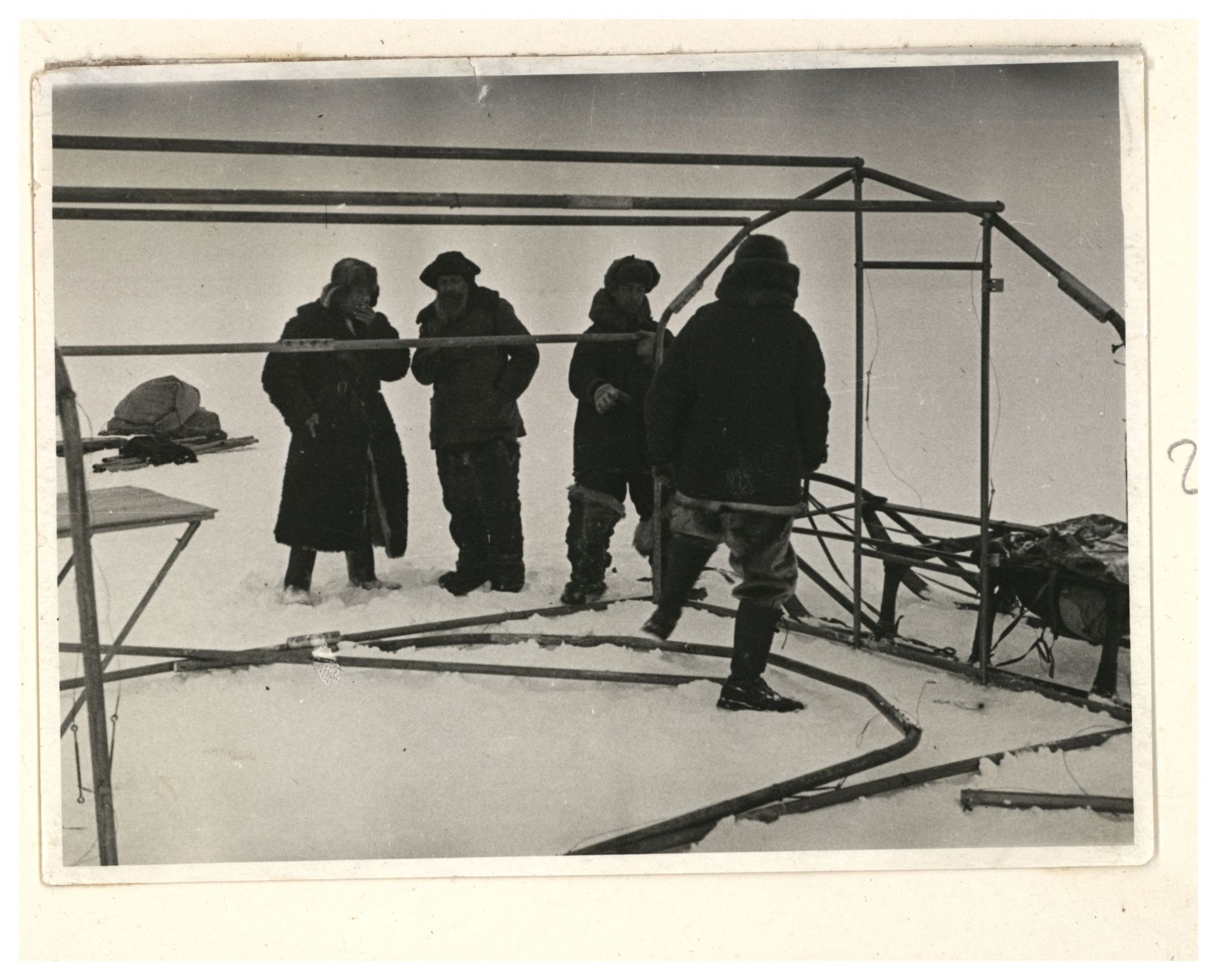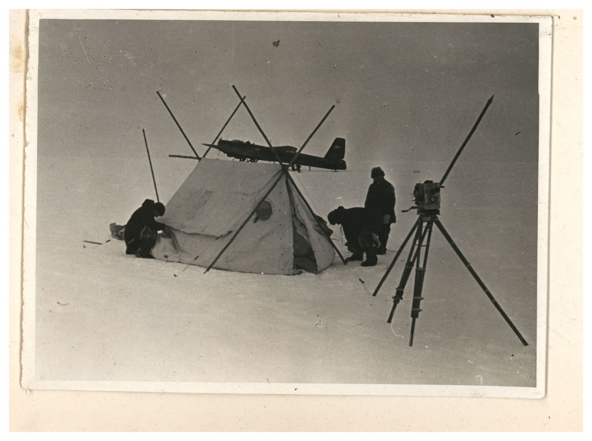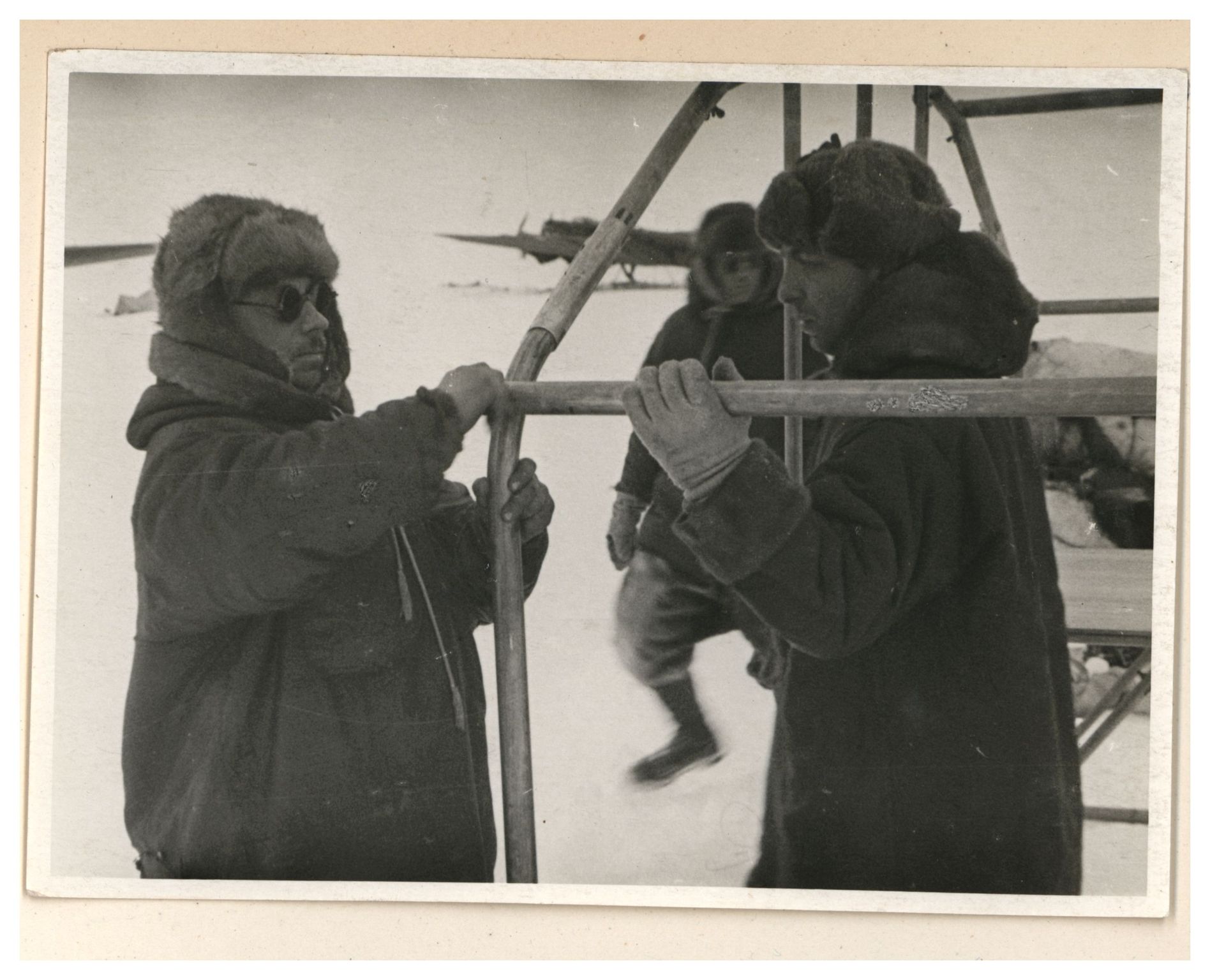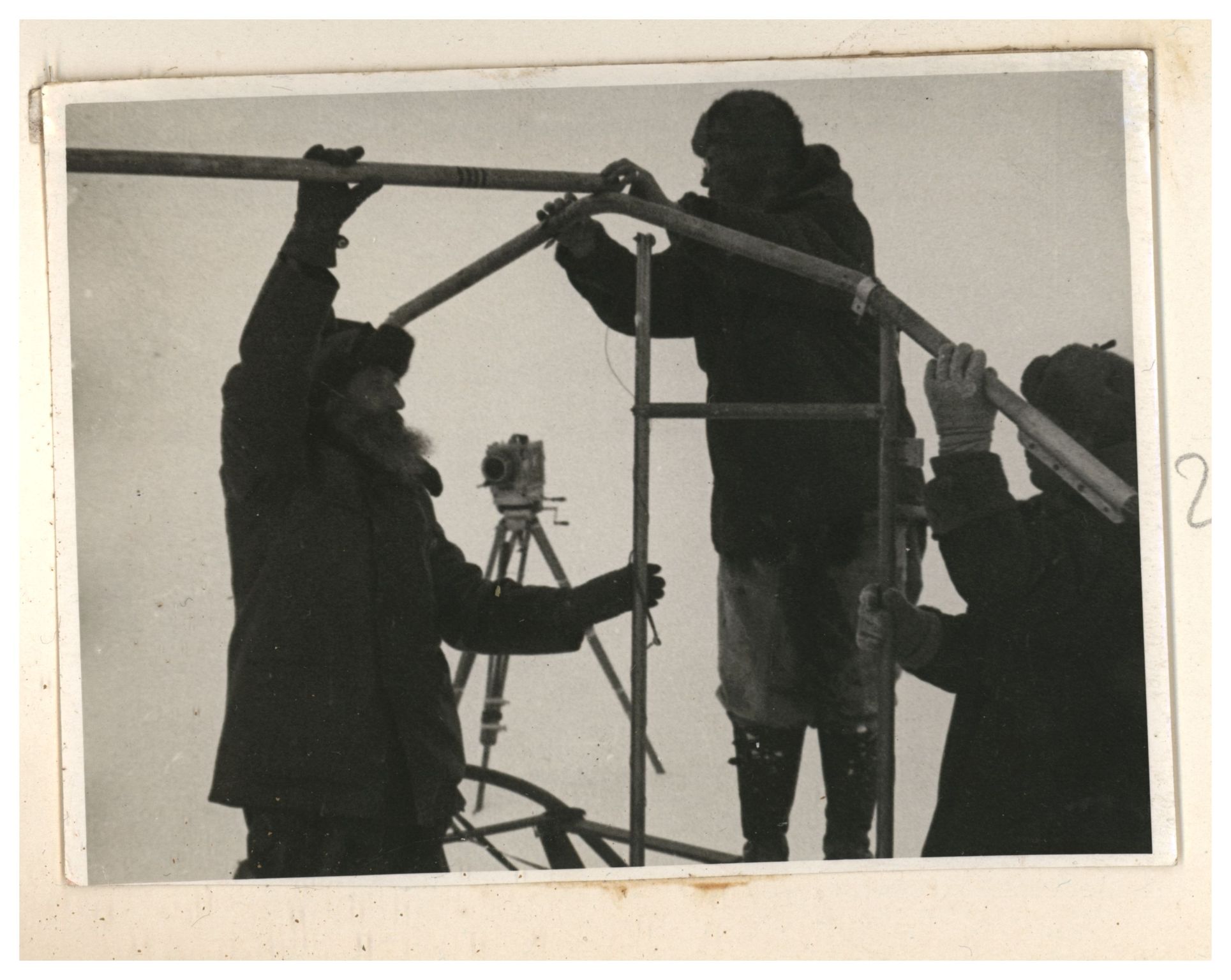 И.Д.Папанин. Сборка алюминиевого каркаса жилой палатки