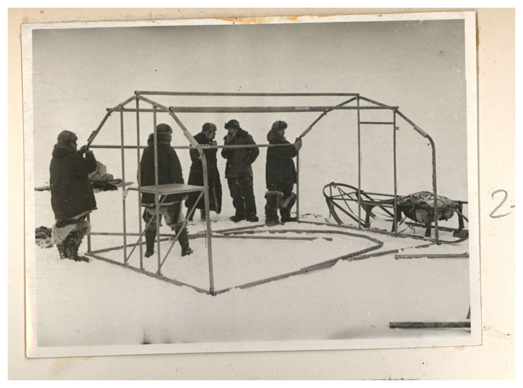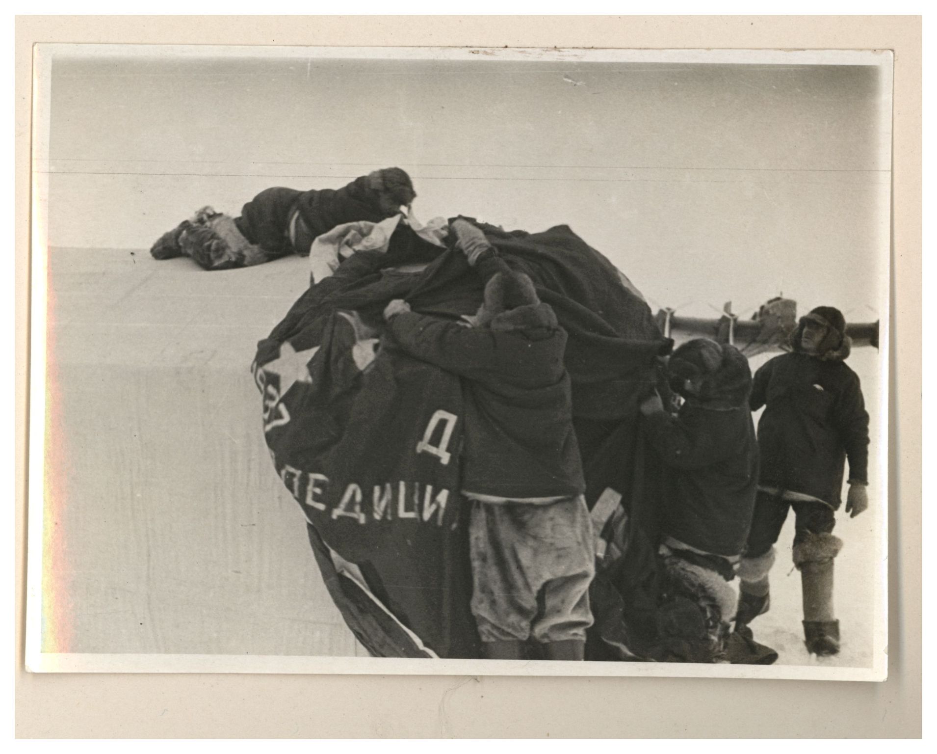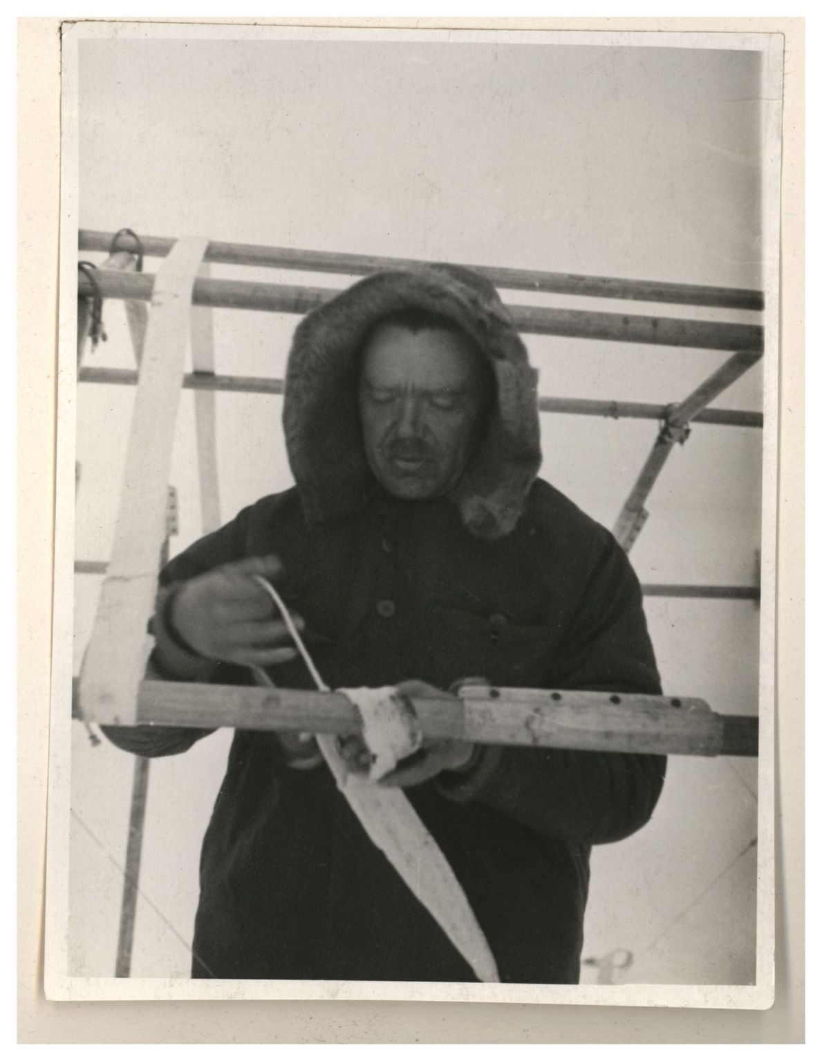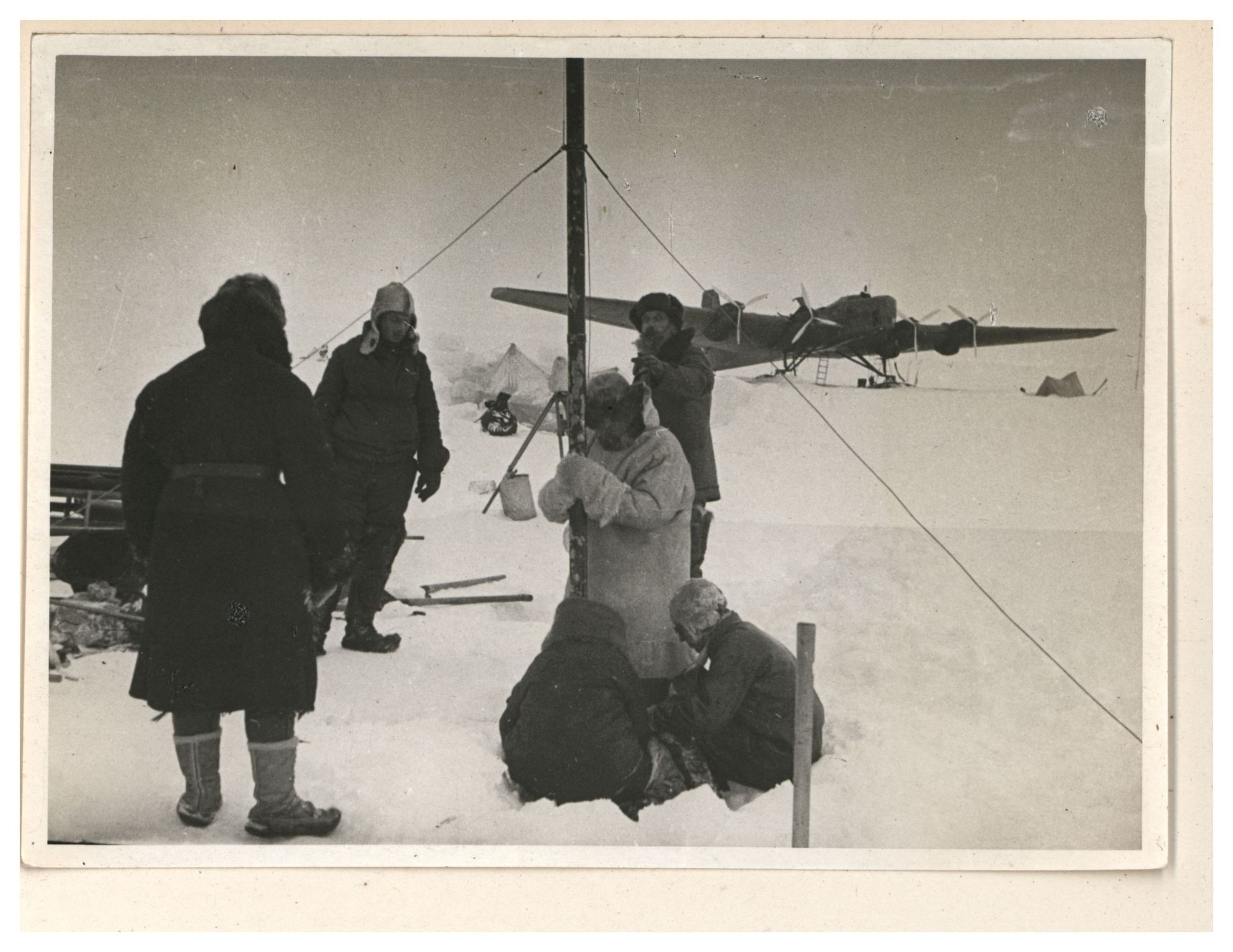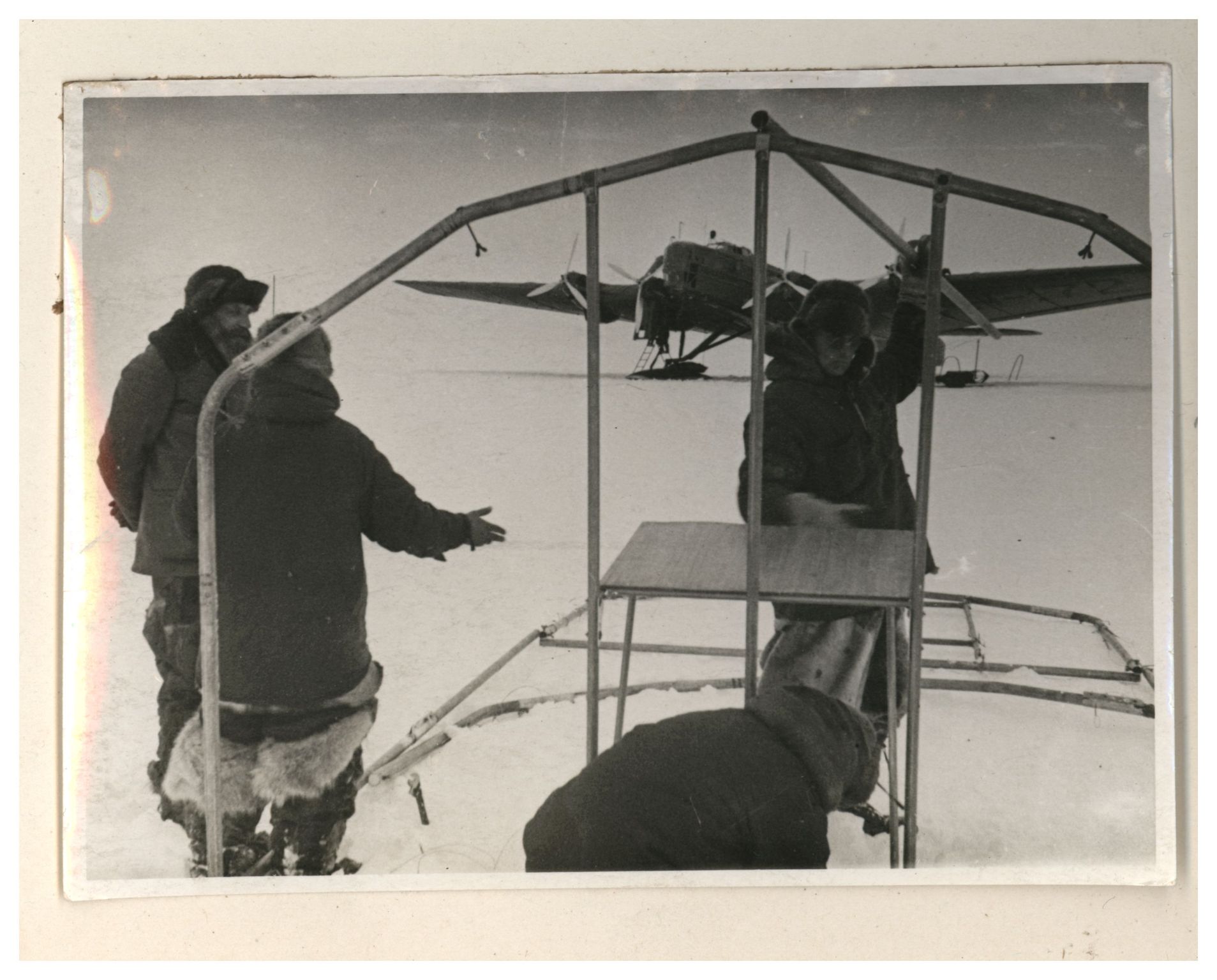 И.Д.Папанин. Сборка алюминиевого каркаса жилой палатки