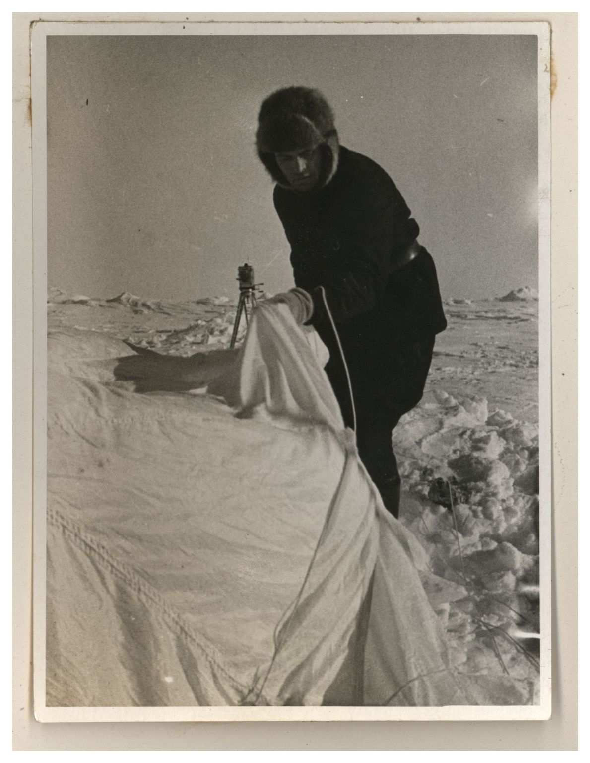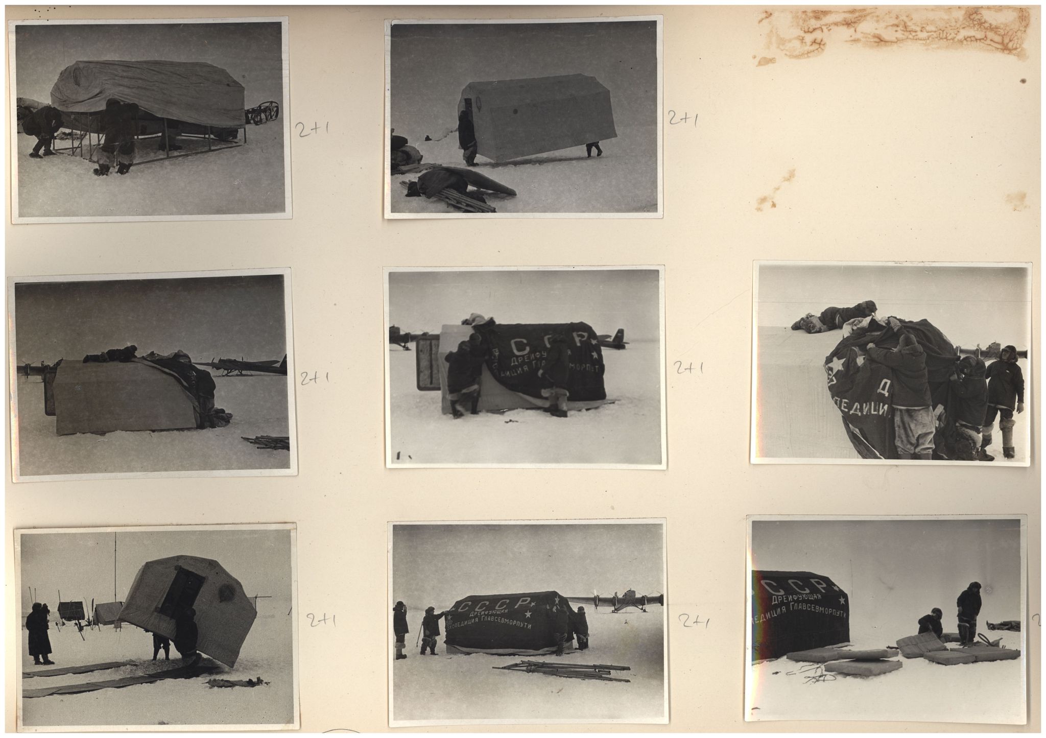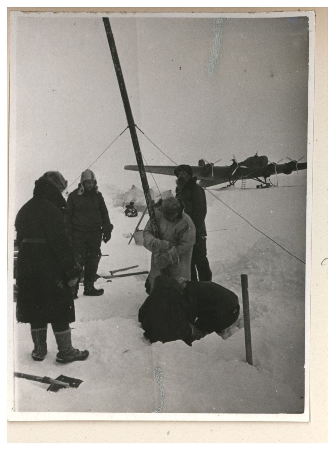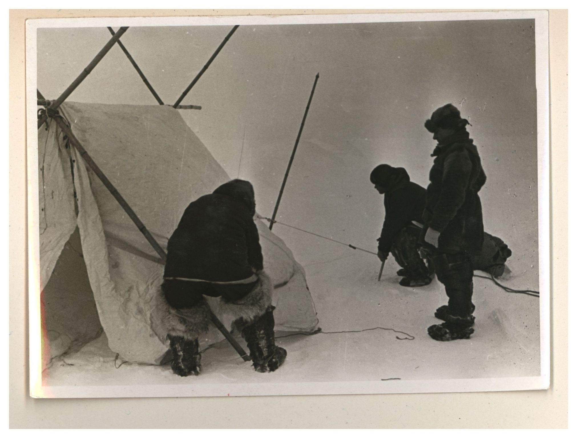 И.Д.Папанин. Сборка алюминиевого каркаса жилой палатки