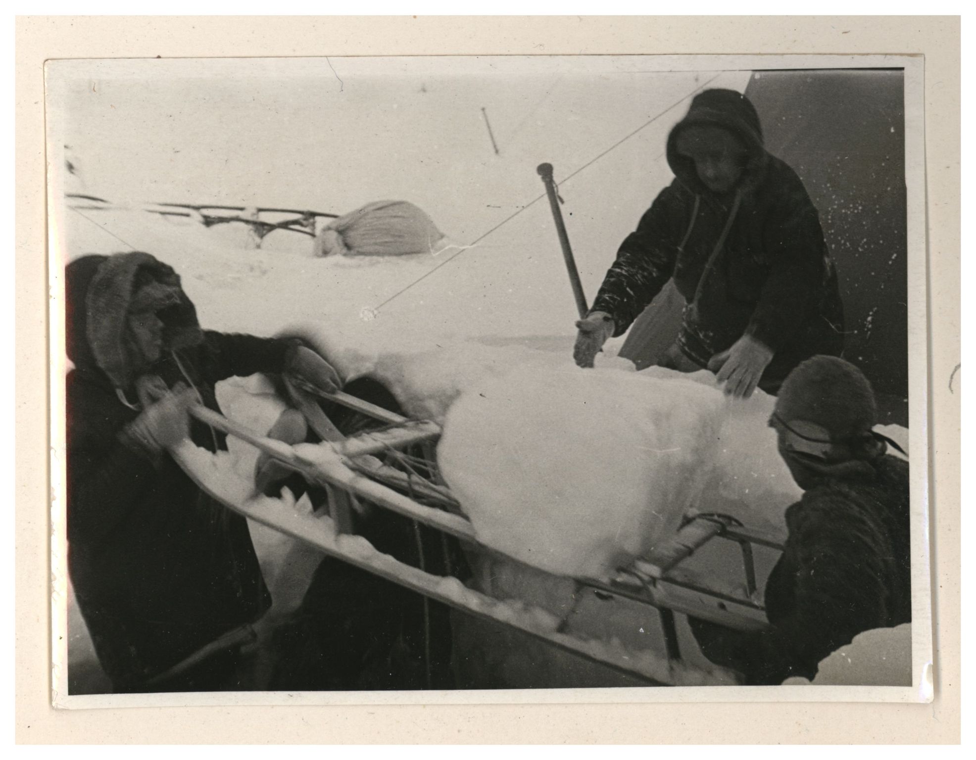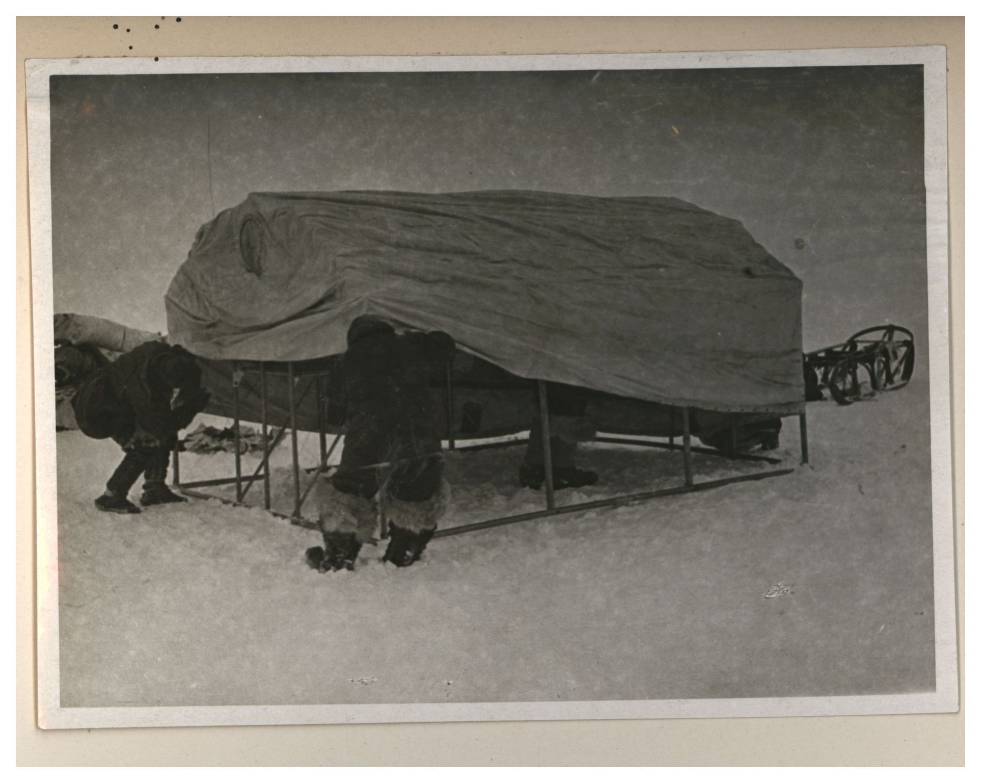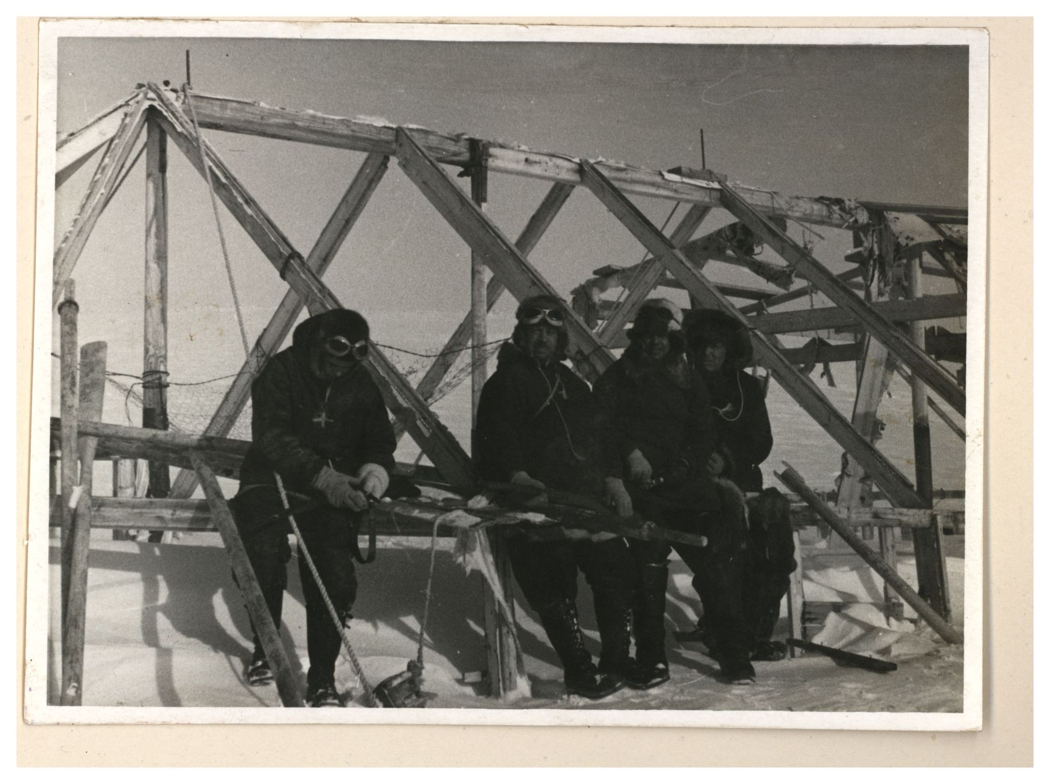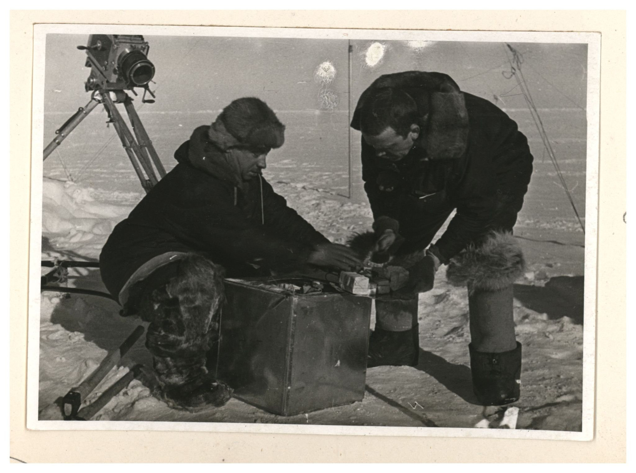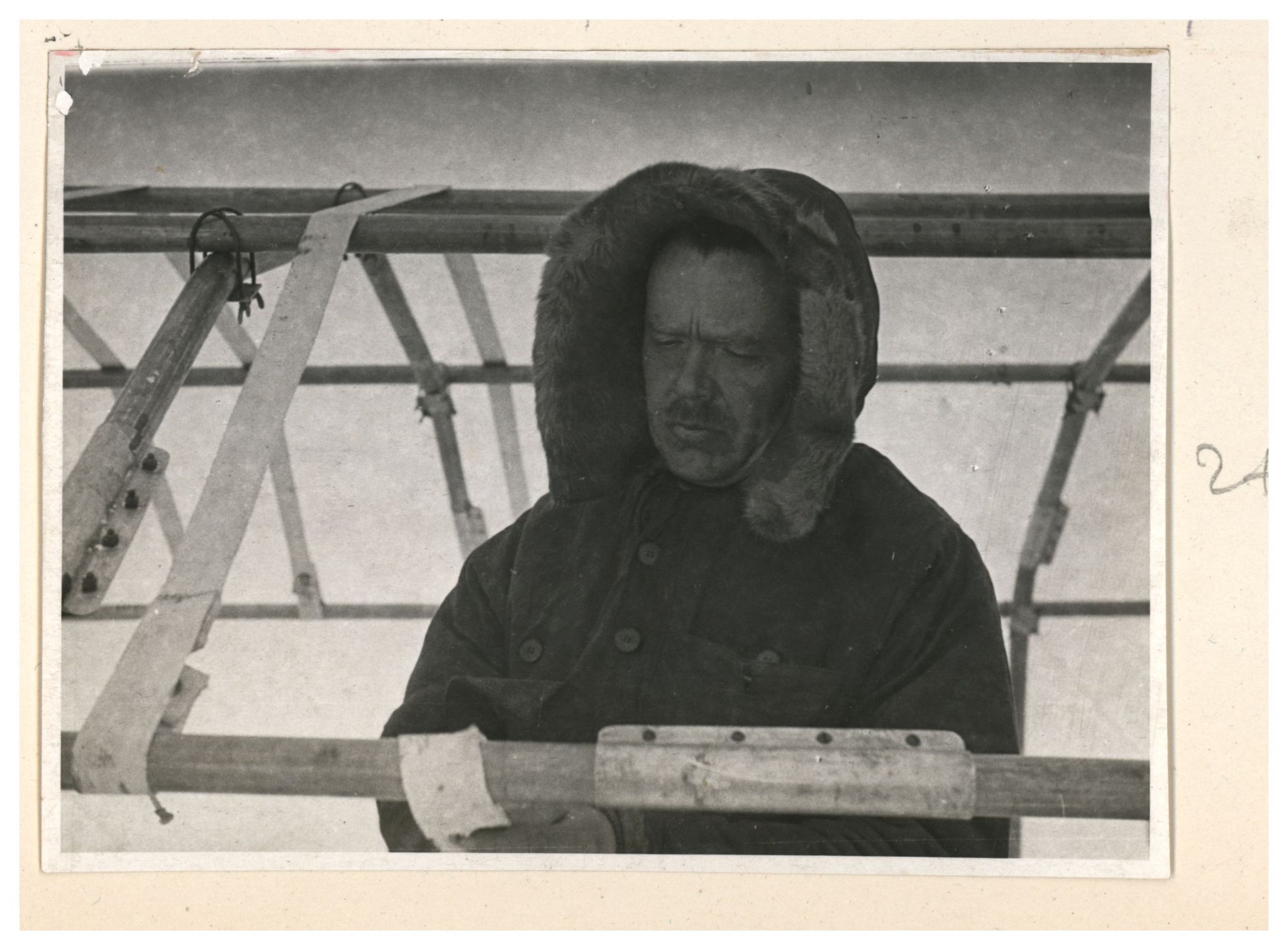 И.Д.Папанин. Сборка алюминиевого каркаса жилой палатки
