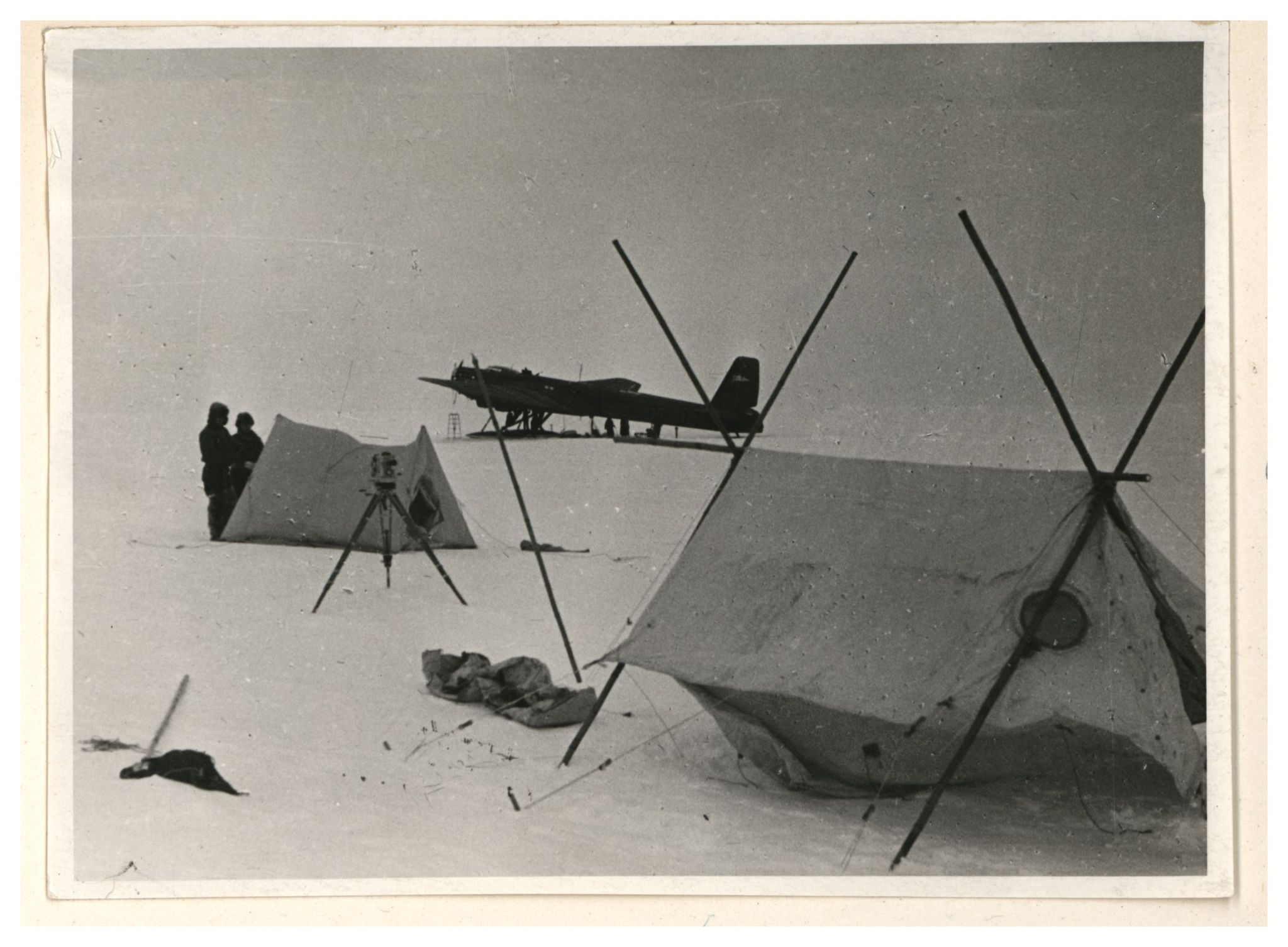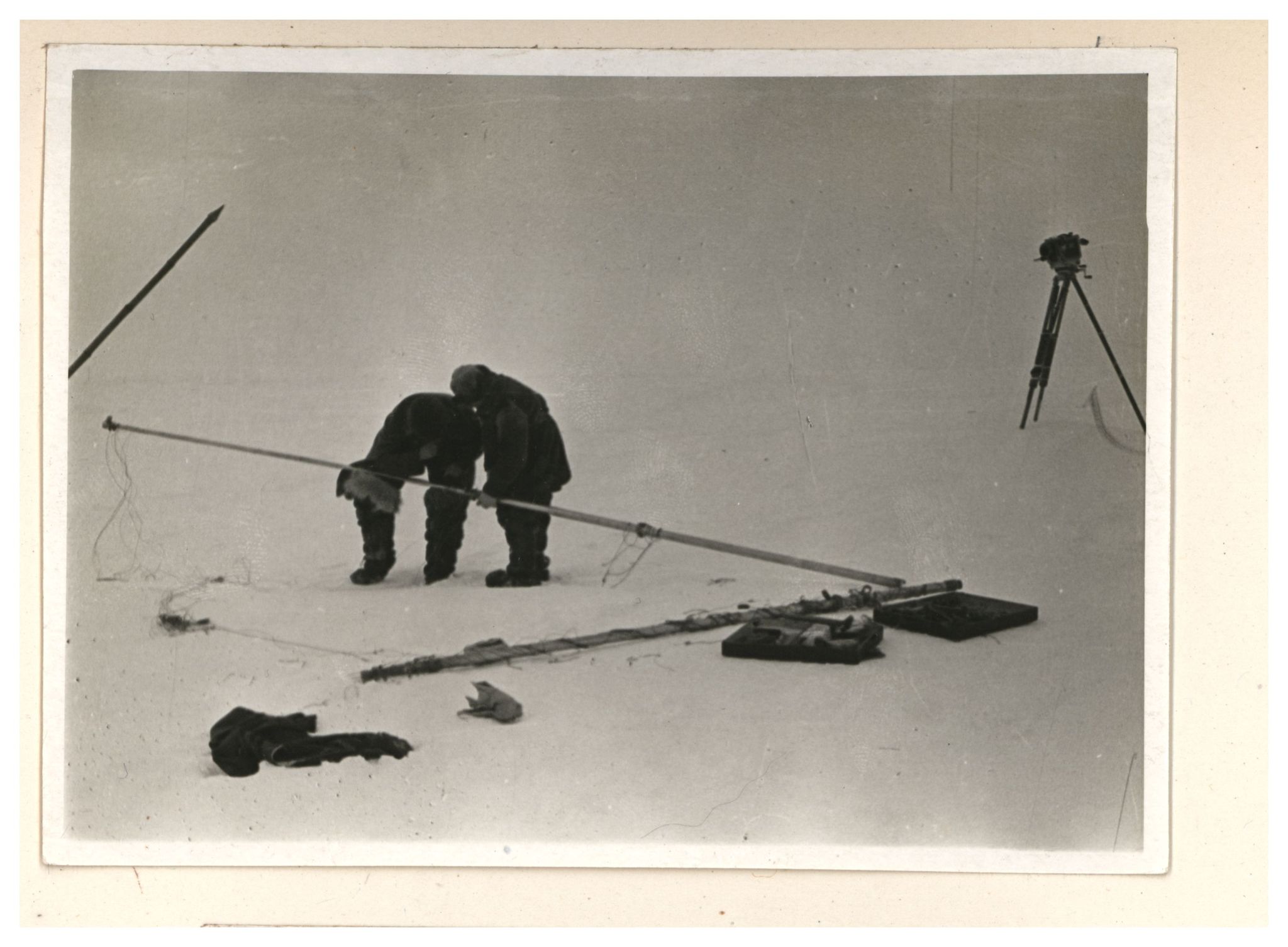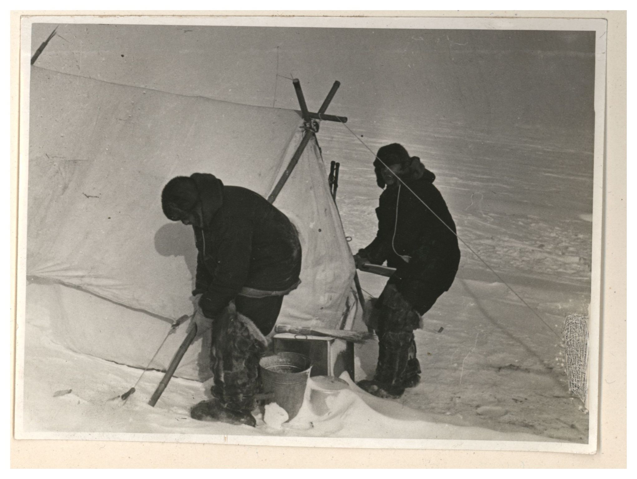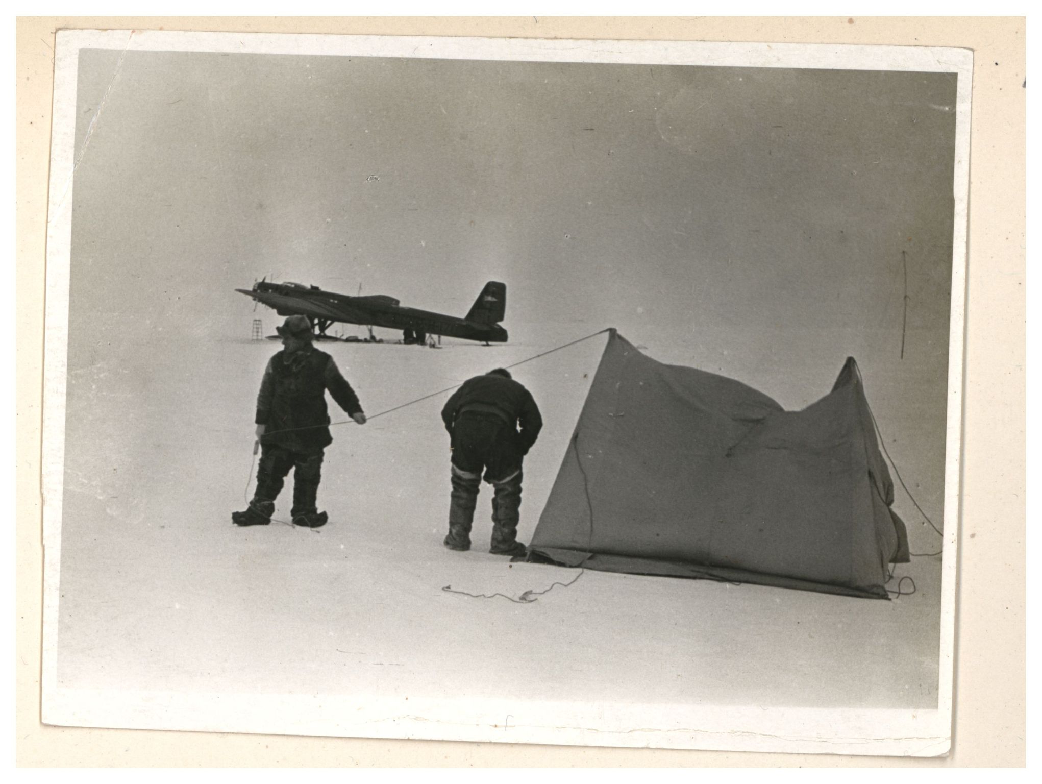 И.Д.Папанин. Сборка алюминиевого каркаса жилой палатки