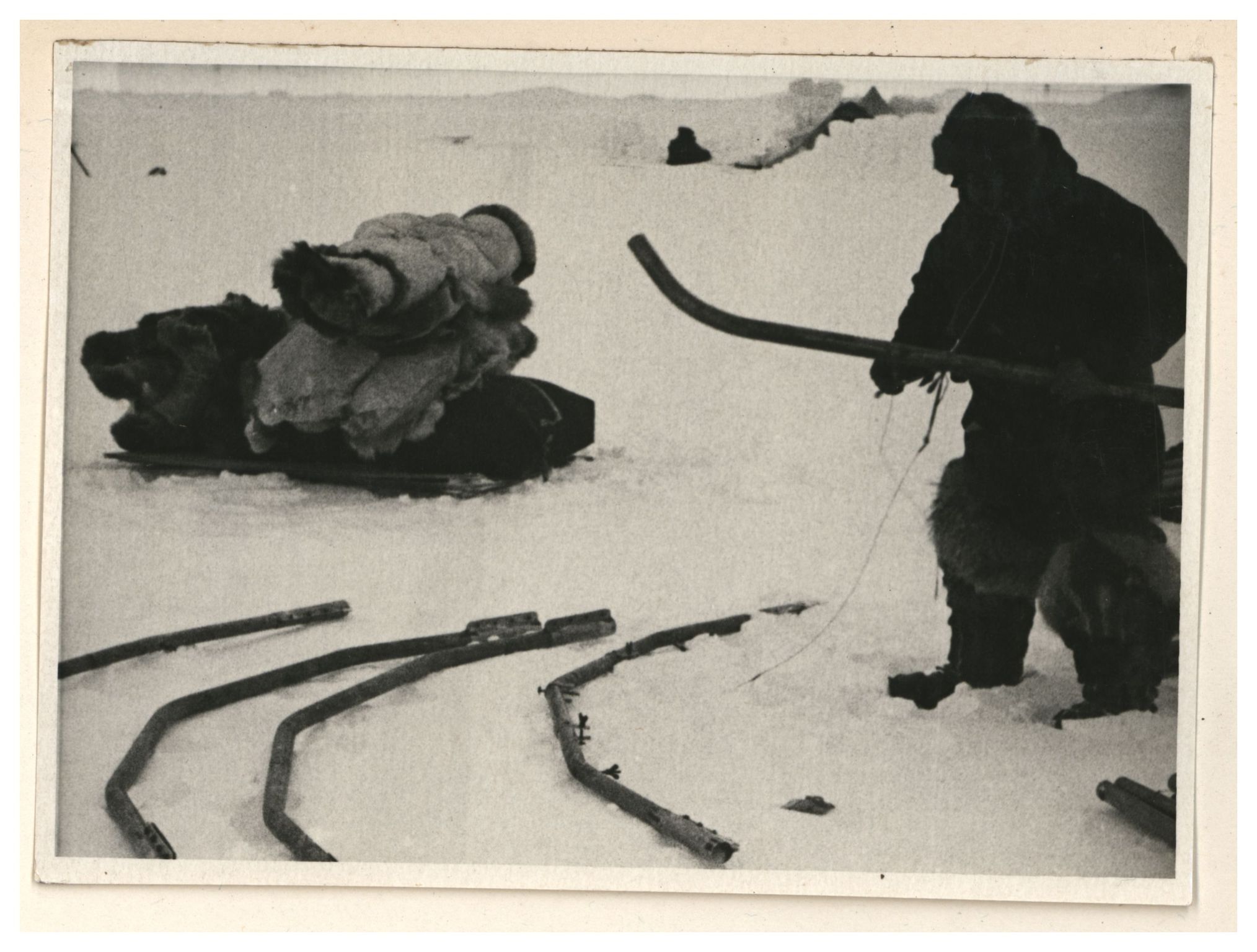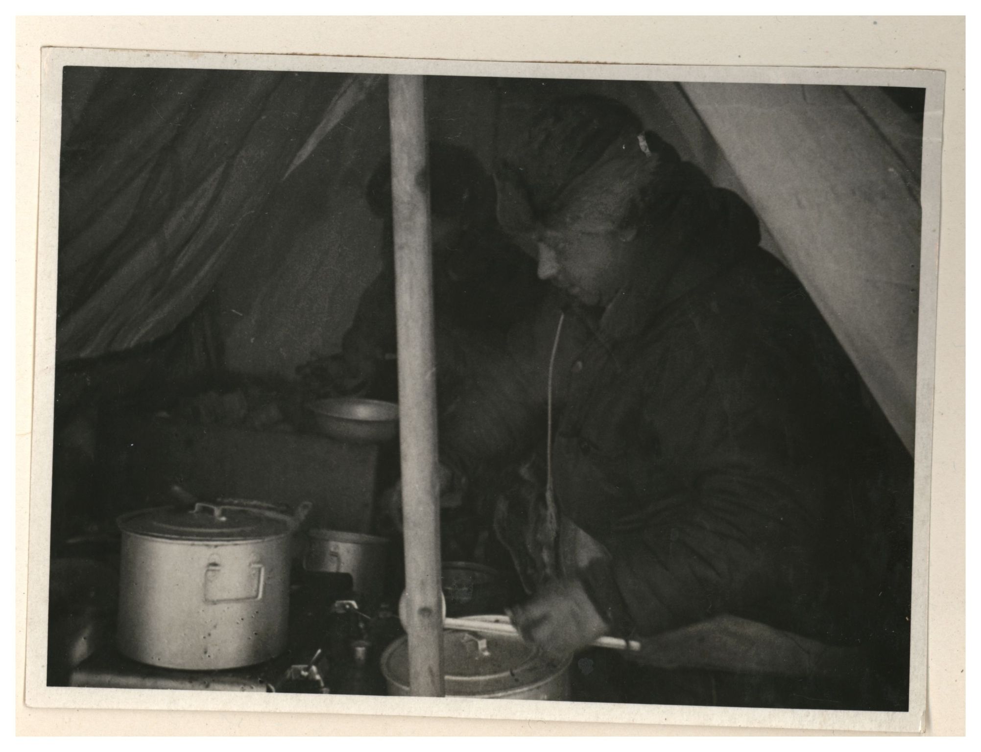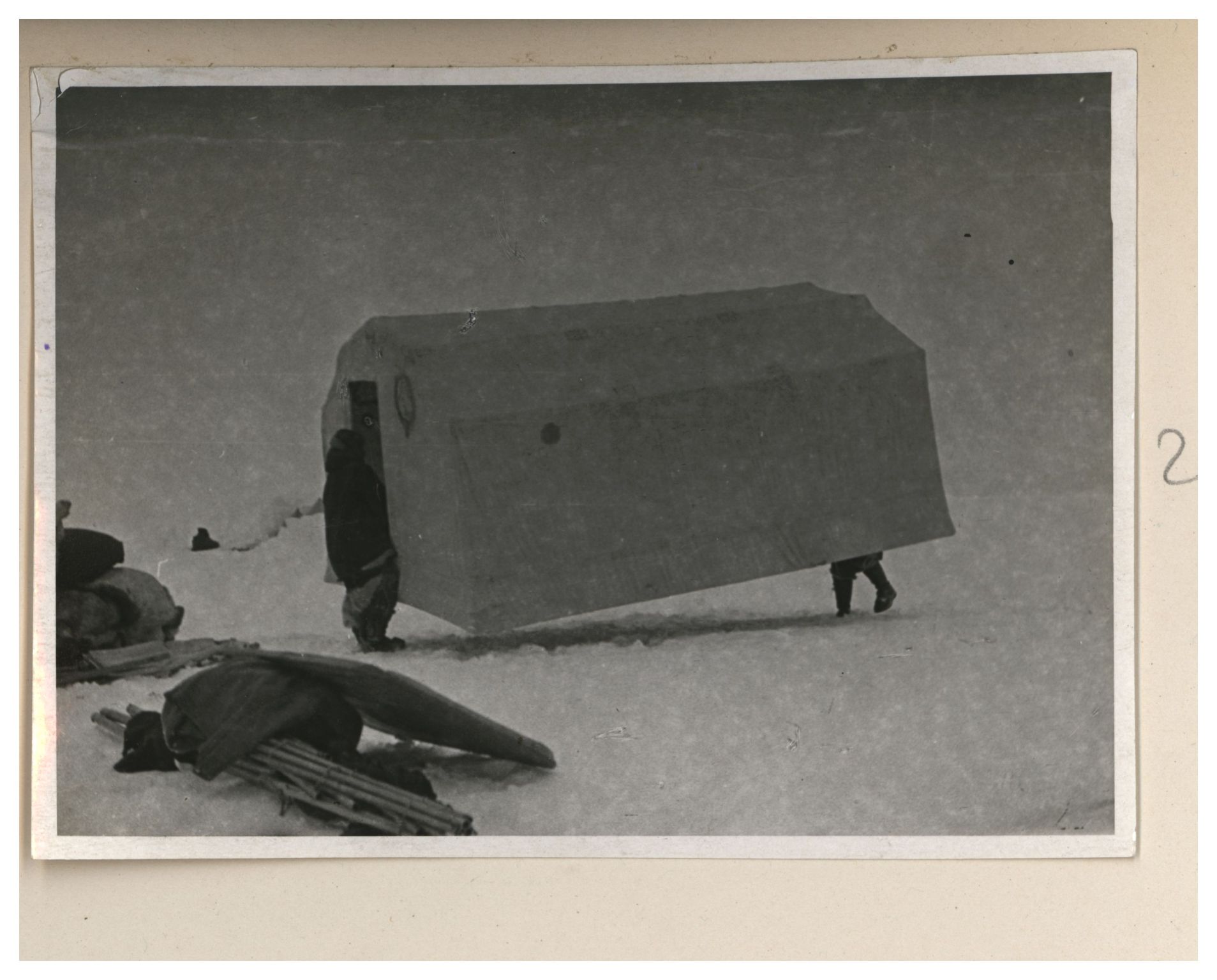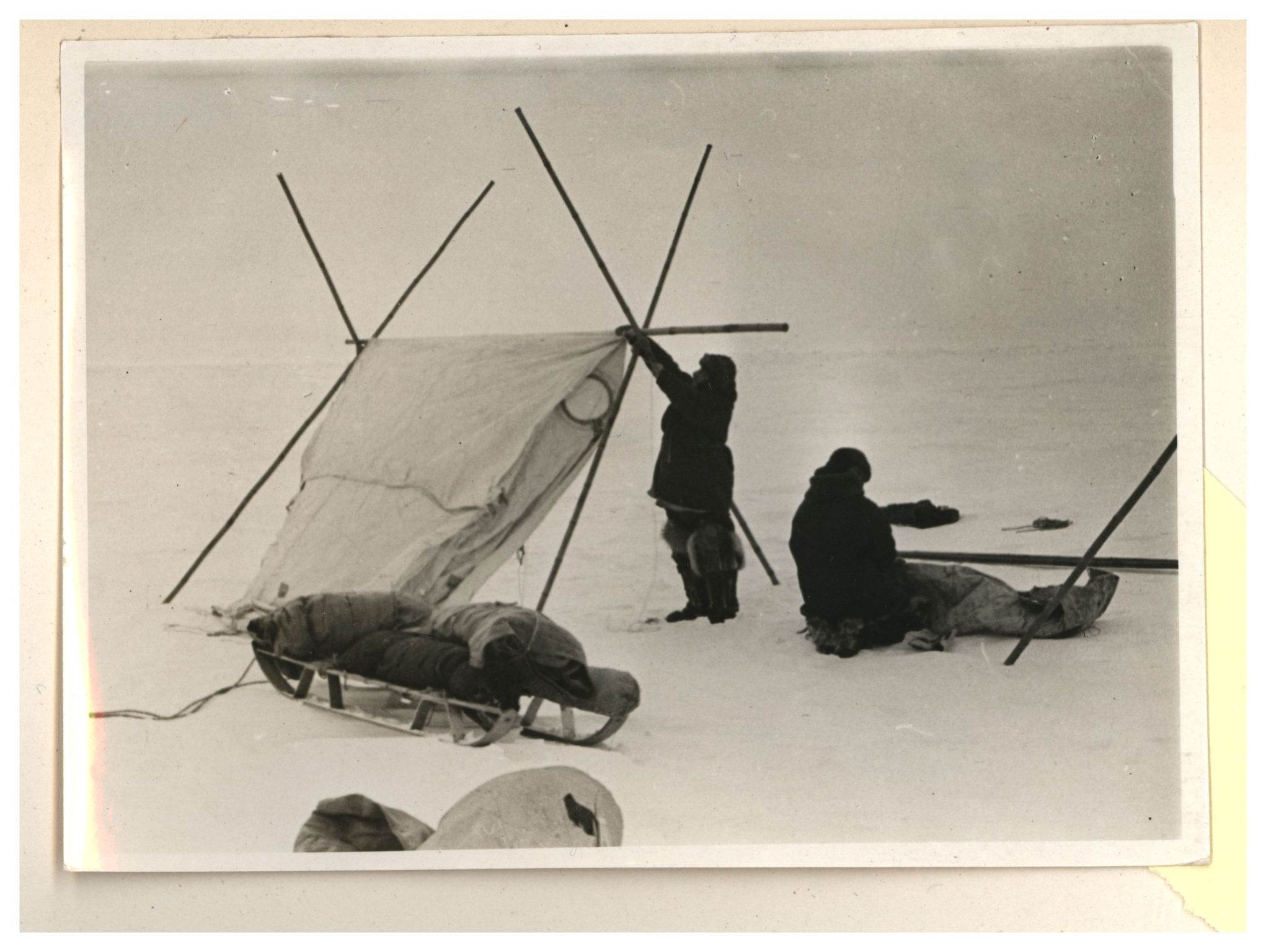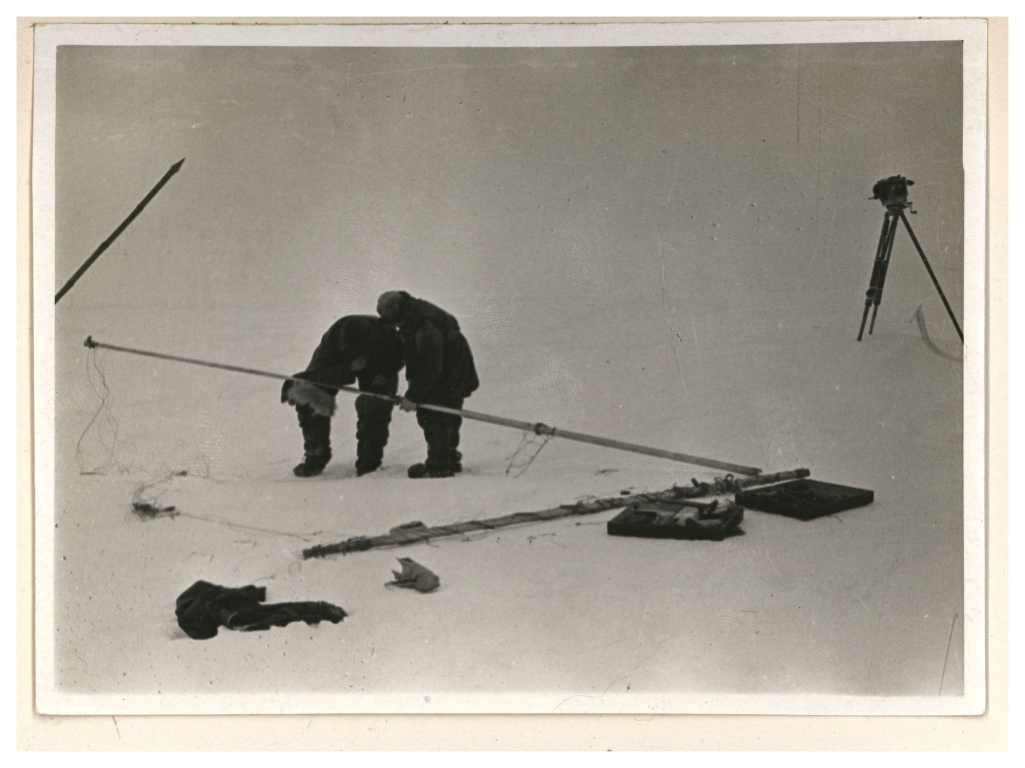 И.Д.Папанин. Сборка алюминиевого каркаса жилой палатки