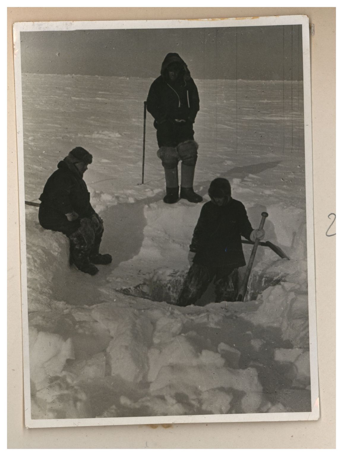 Вырубка во льду «холодильника», для хранения продуктов