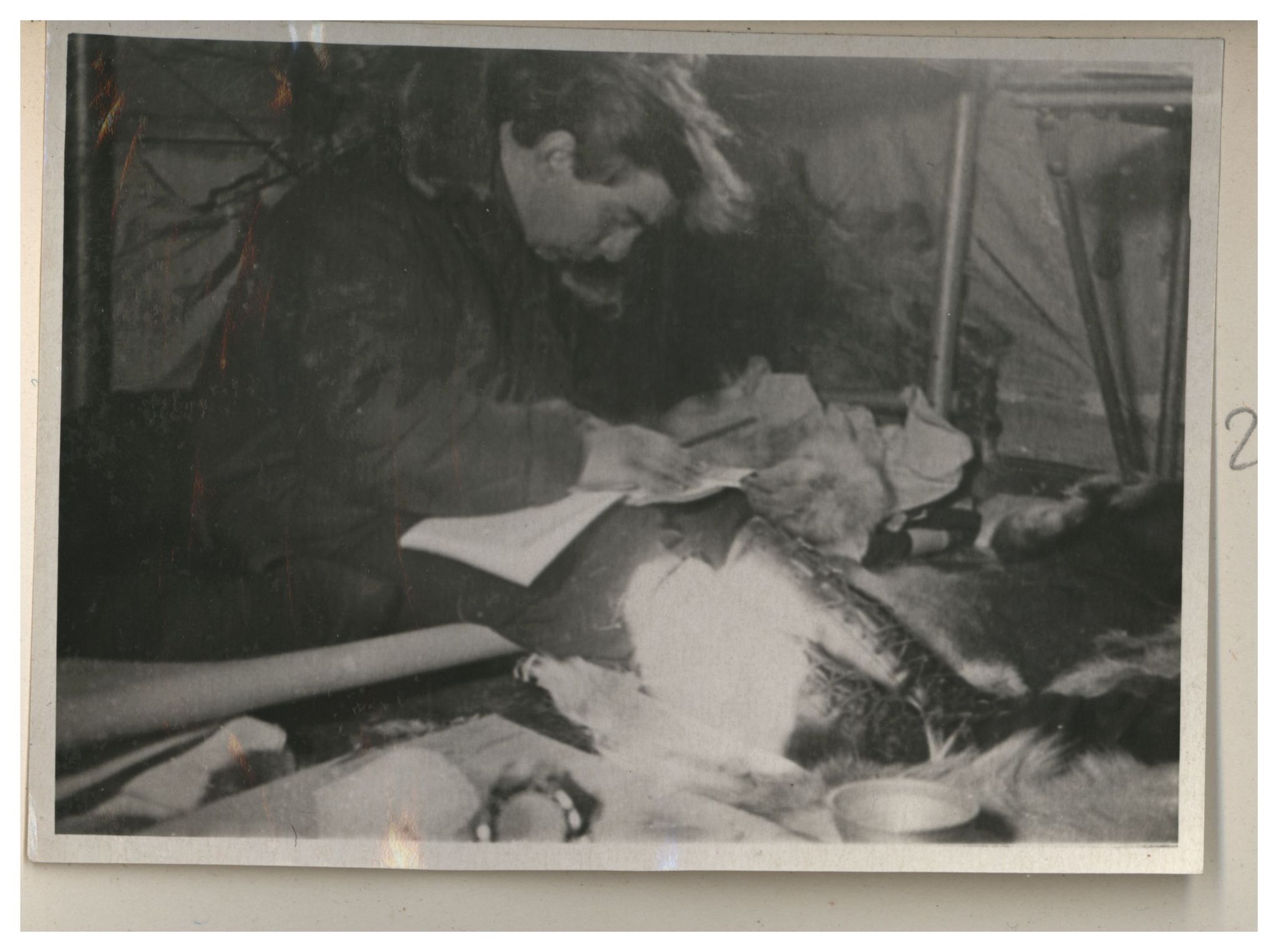О.Ю.Шмидт делает запись в своем дневнике