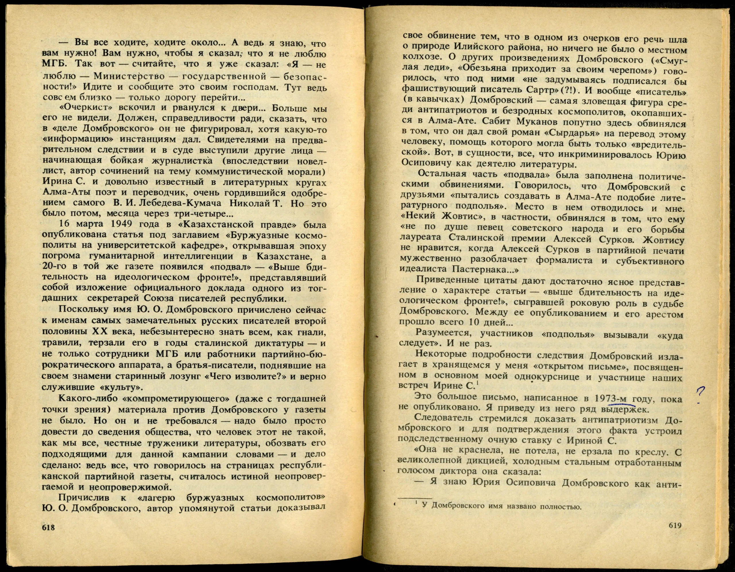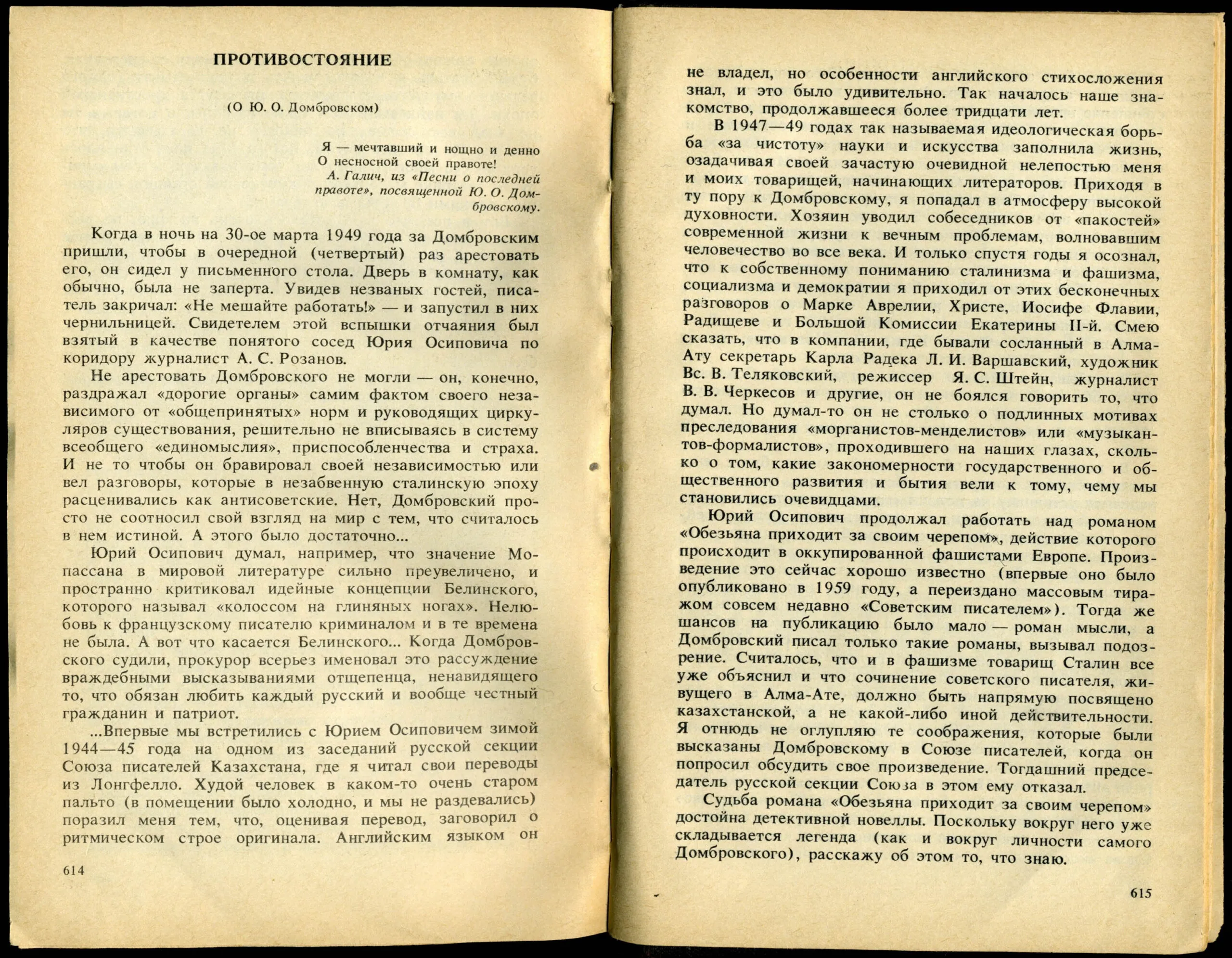 А. Л. Жовтис. Противостояние (о Ю. О. Домбровском)