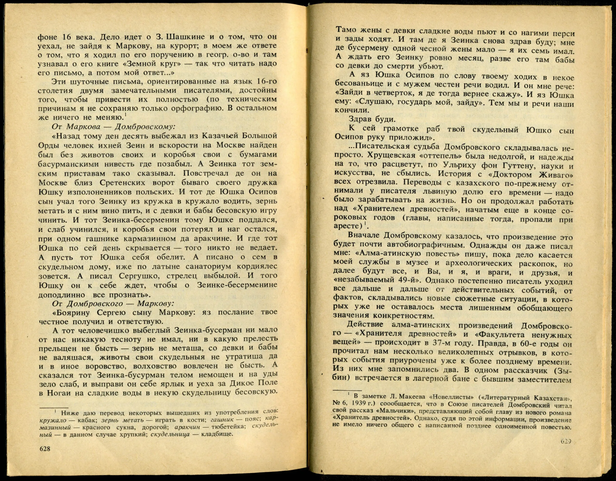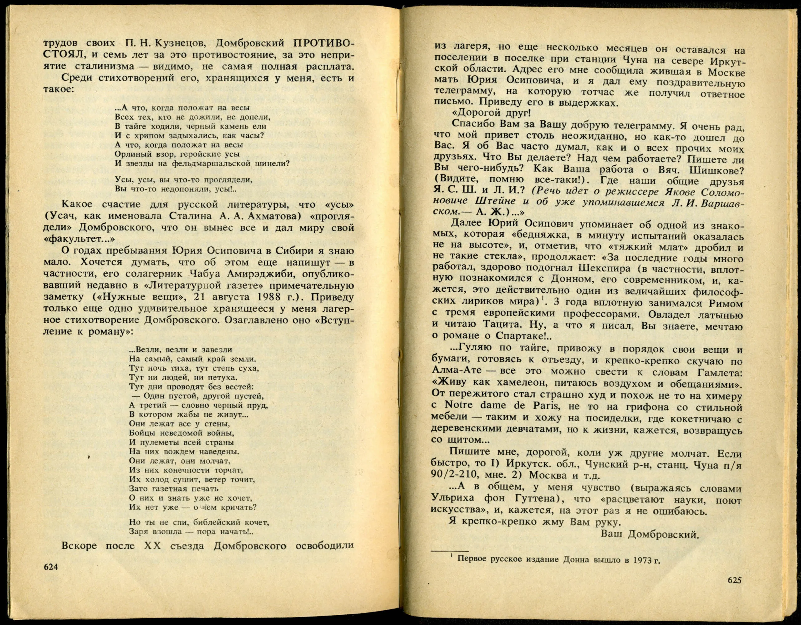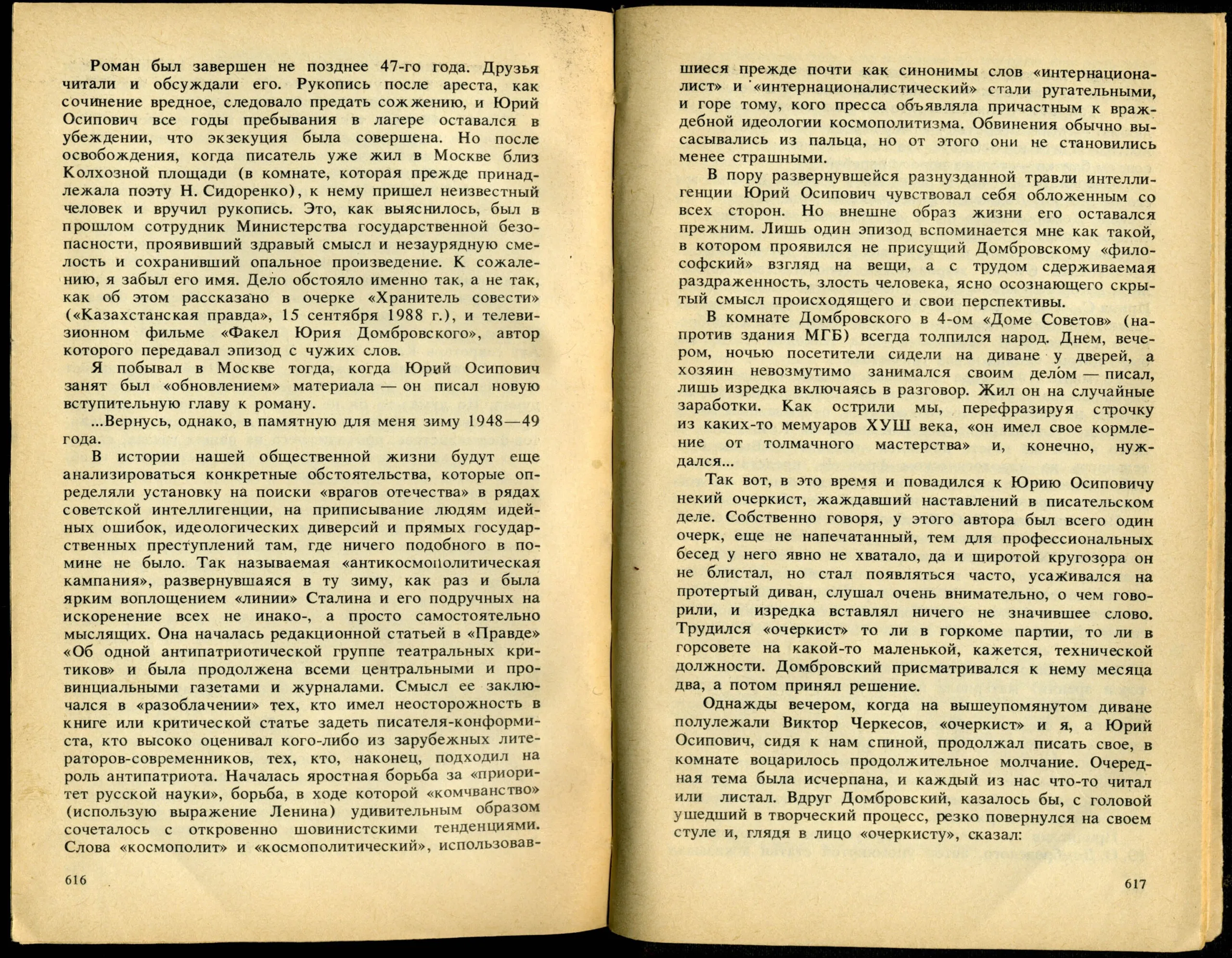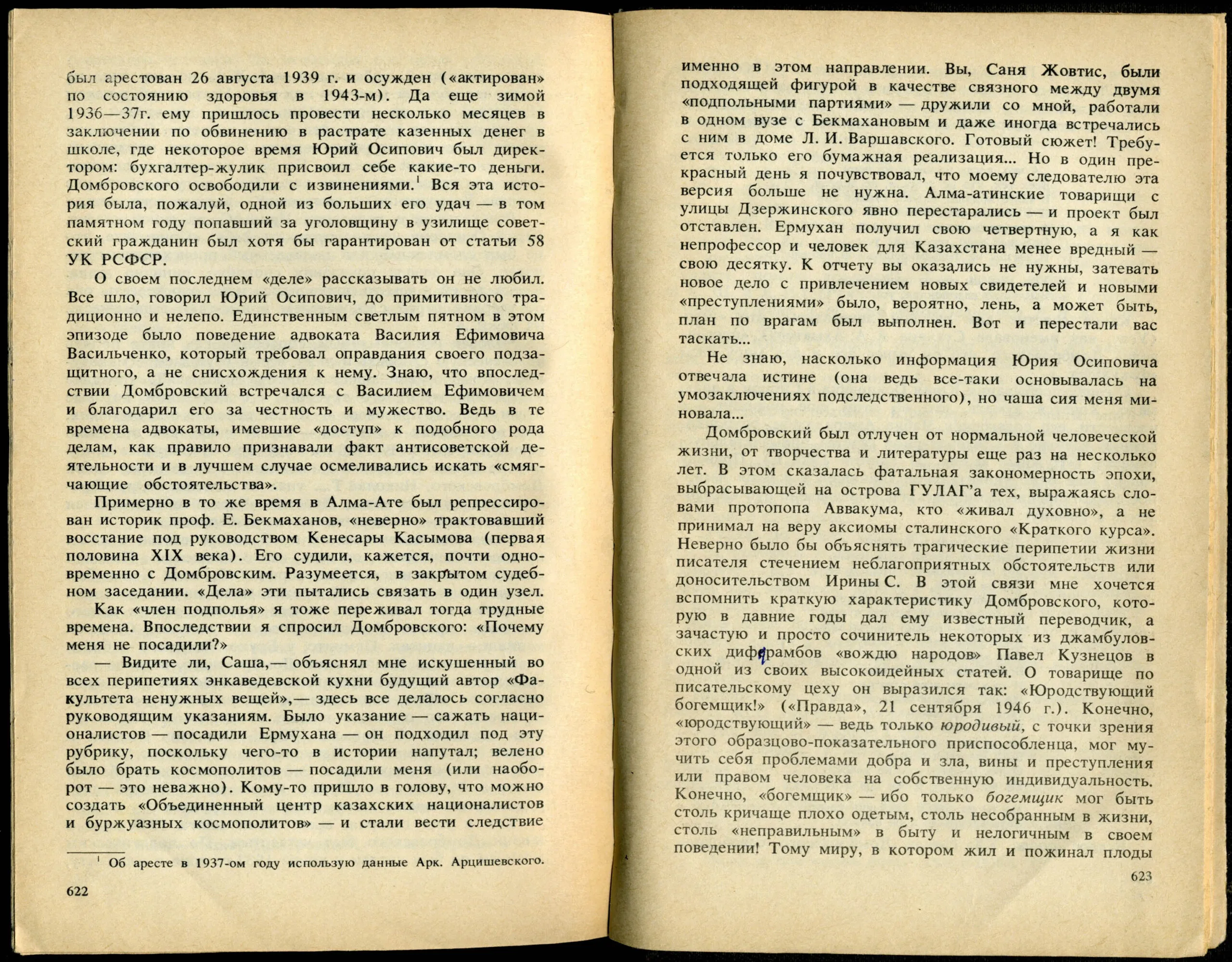 Из сборника: Домбровский Ю.О. Факультет ненужных вещей: Роман. Очерки и стати/Сост. А.Л. Жовтис: - Алма-Ата: Жазушы, 1989. С.614-638.