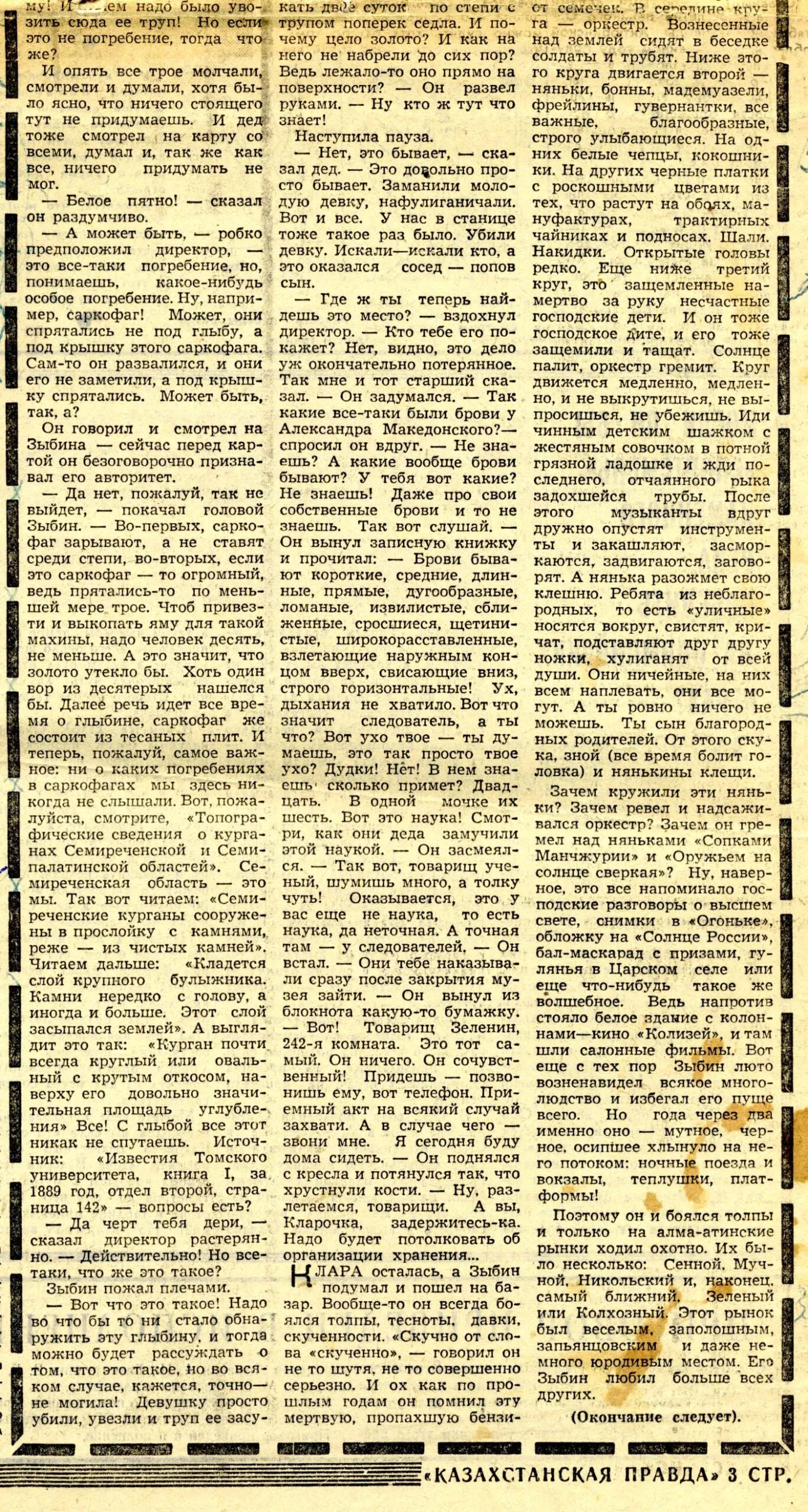 1967 Юрий Домбровский. Загадка Каргалинского клада. Казахстанская правда №218, 1967 г. С.3