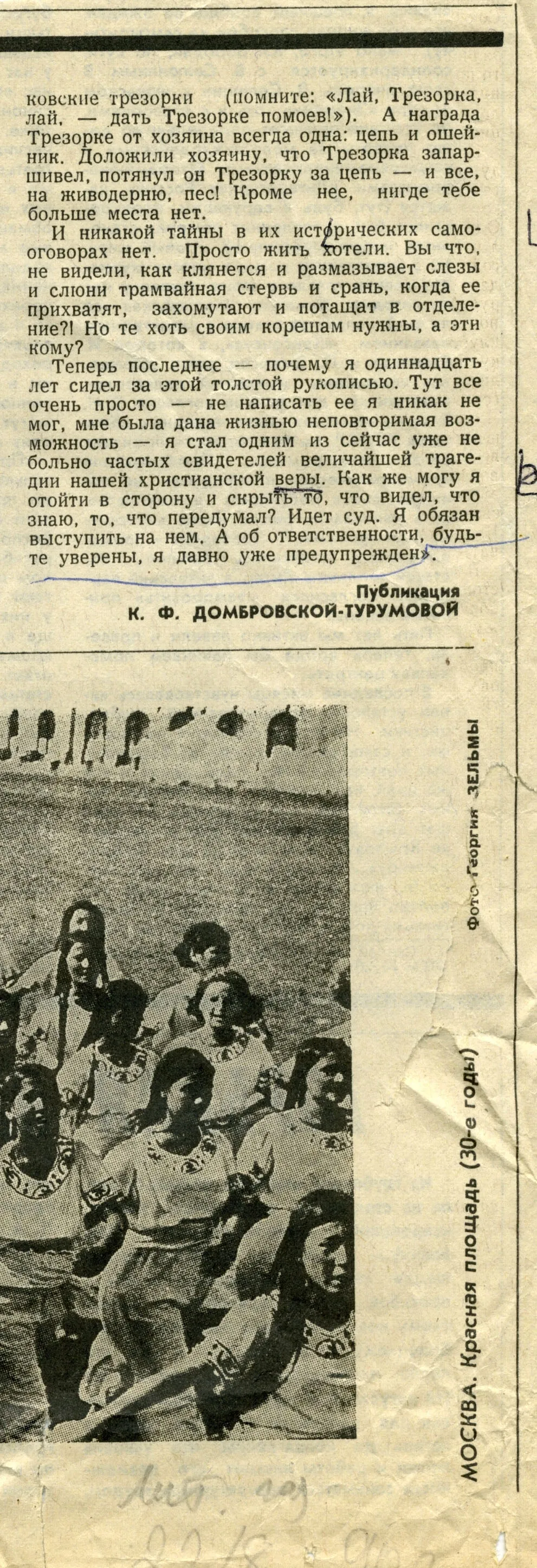 1991 г. Юрий Домбровский. «Идет суд. Я обязан выступить…». Литературная газета, 1991. Публикация послесловия романа «Факультет ненужных вещей» «К историку» (1975), которое было обнаружено в черновых тетрадях Ю. О. Домбровского.