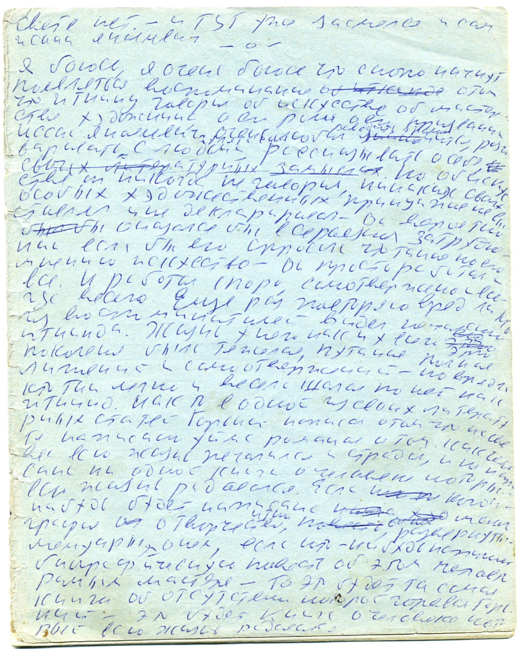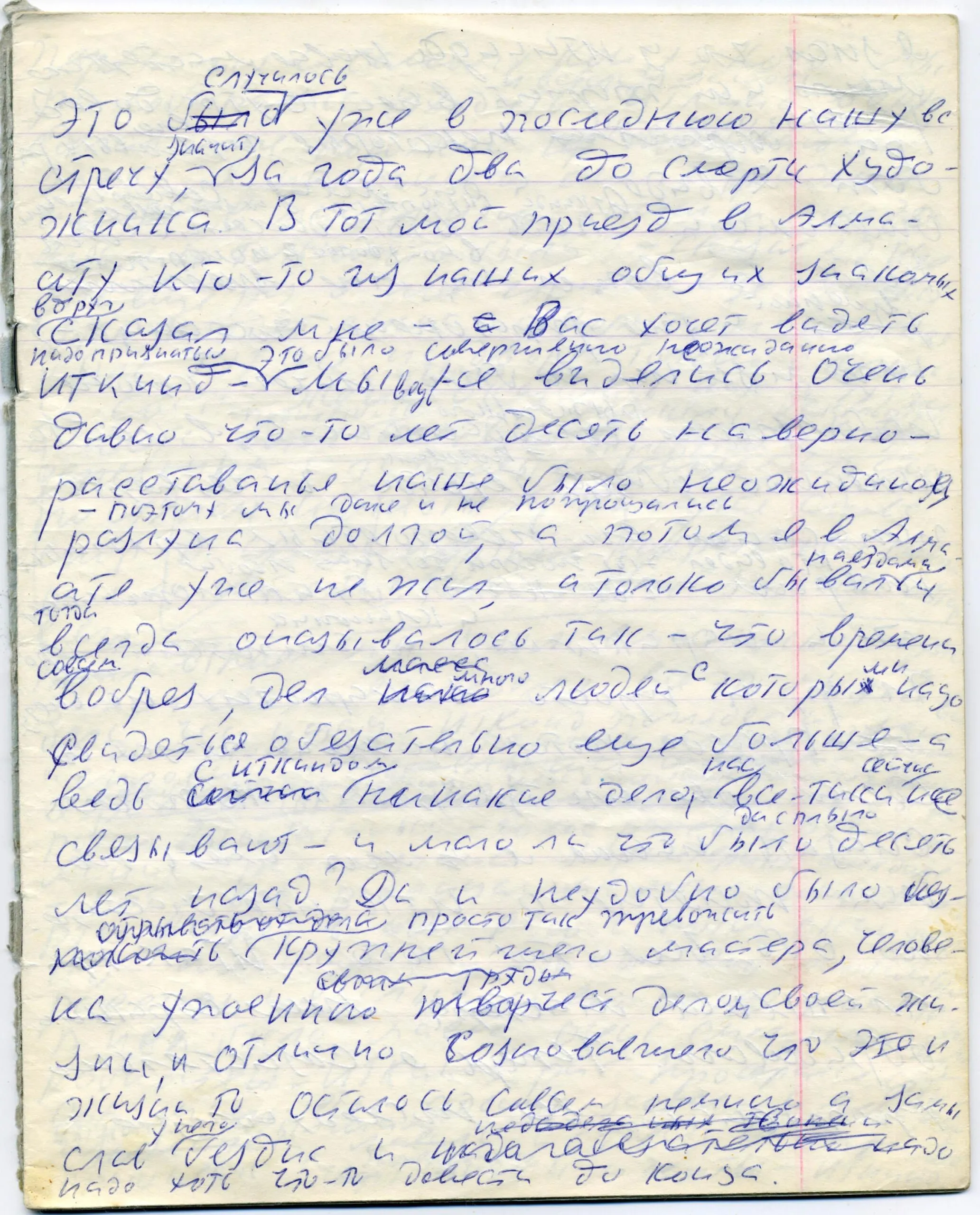 1970 (?) г., нач. 1970-х гг. Юрий Домбровский «Художник Иткинд». Авторская рукопись.