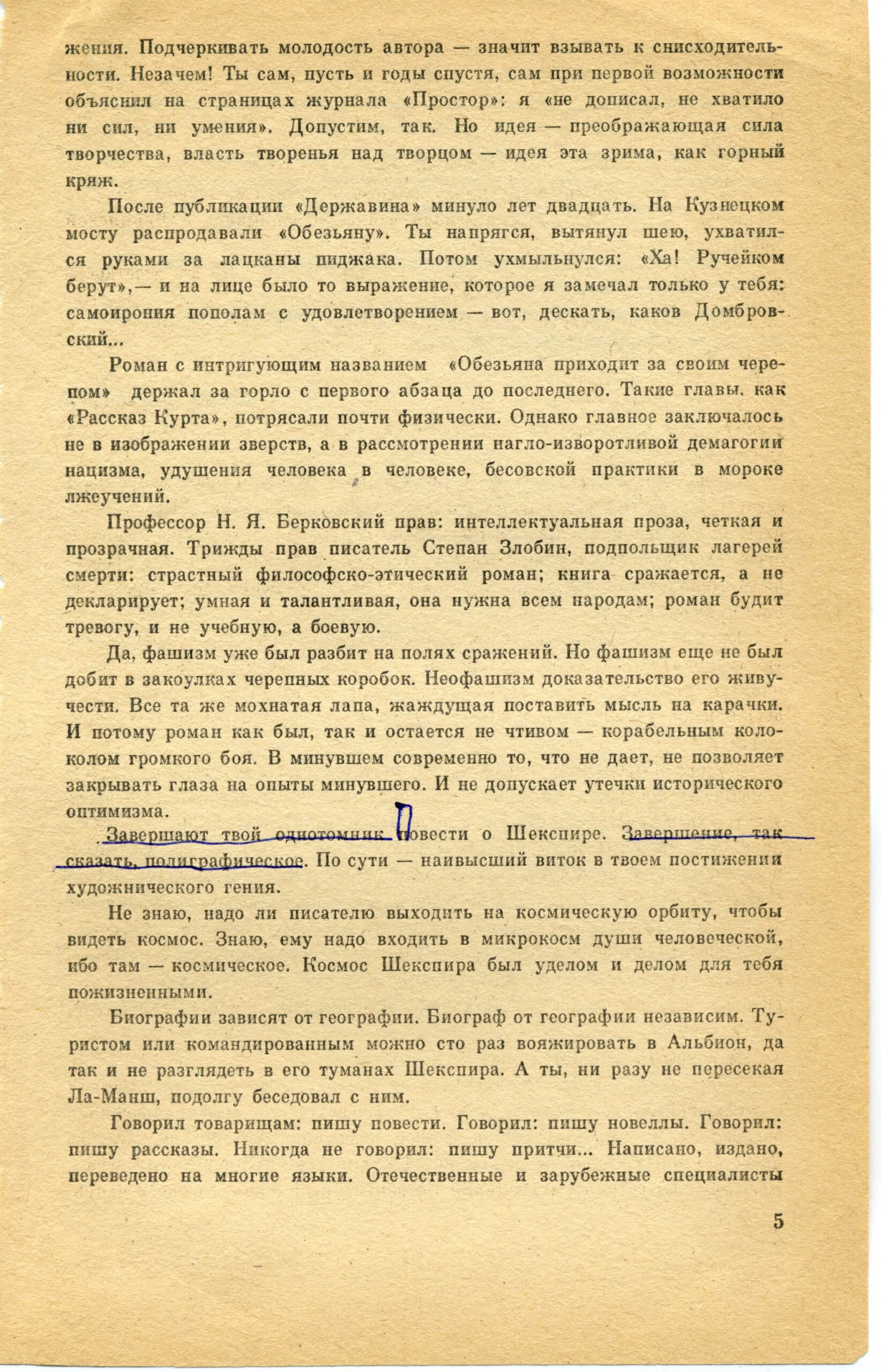 Из сборника: Домбровский Ю.О. Смуглая леди М.: Советский писатель, 1985 г.