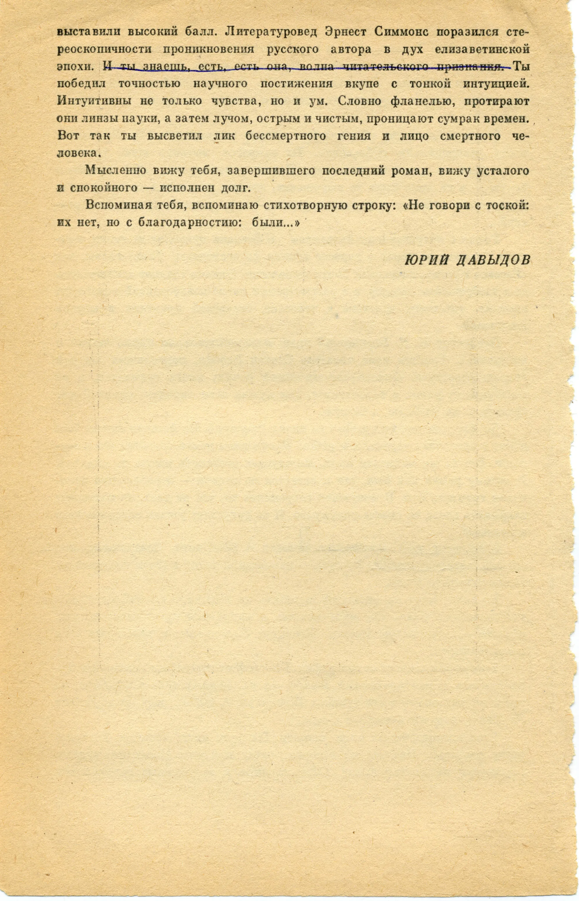 1969 г. Статья Ю. Давыдова «Поговорим о бурных днях Кавказа…». Вместо предисловия к книге Ю. Домбровского «Смуглая леди».