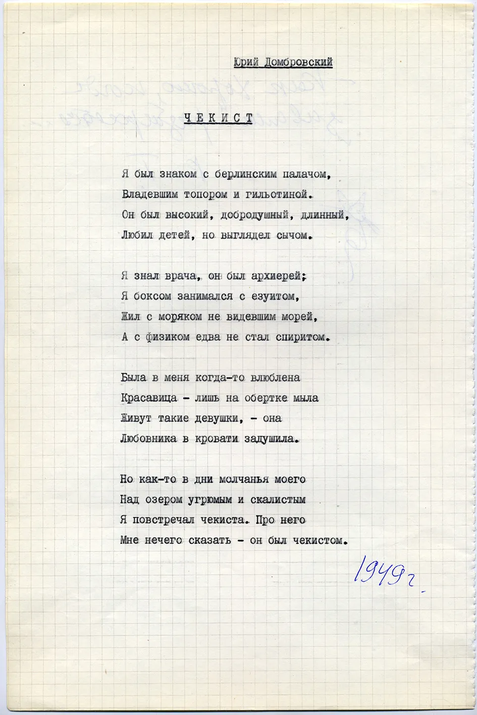 В 1944 году Домбровского восстанавливают в Союзе писателей. Спустя еще год, завершив книгу, он предпринимает безуспешные попытки ее опубликовать, но роман остается лежать в рукописи. Вскоре началась холодная война. Пытаясь найти компромисс между актуальной темой и глубоким содержанием, Домбровский берется за антиамериканский роман «Дрогнувшая ночь».